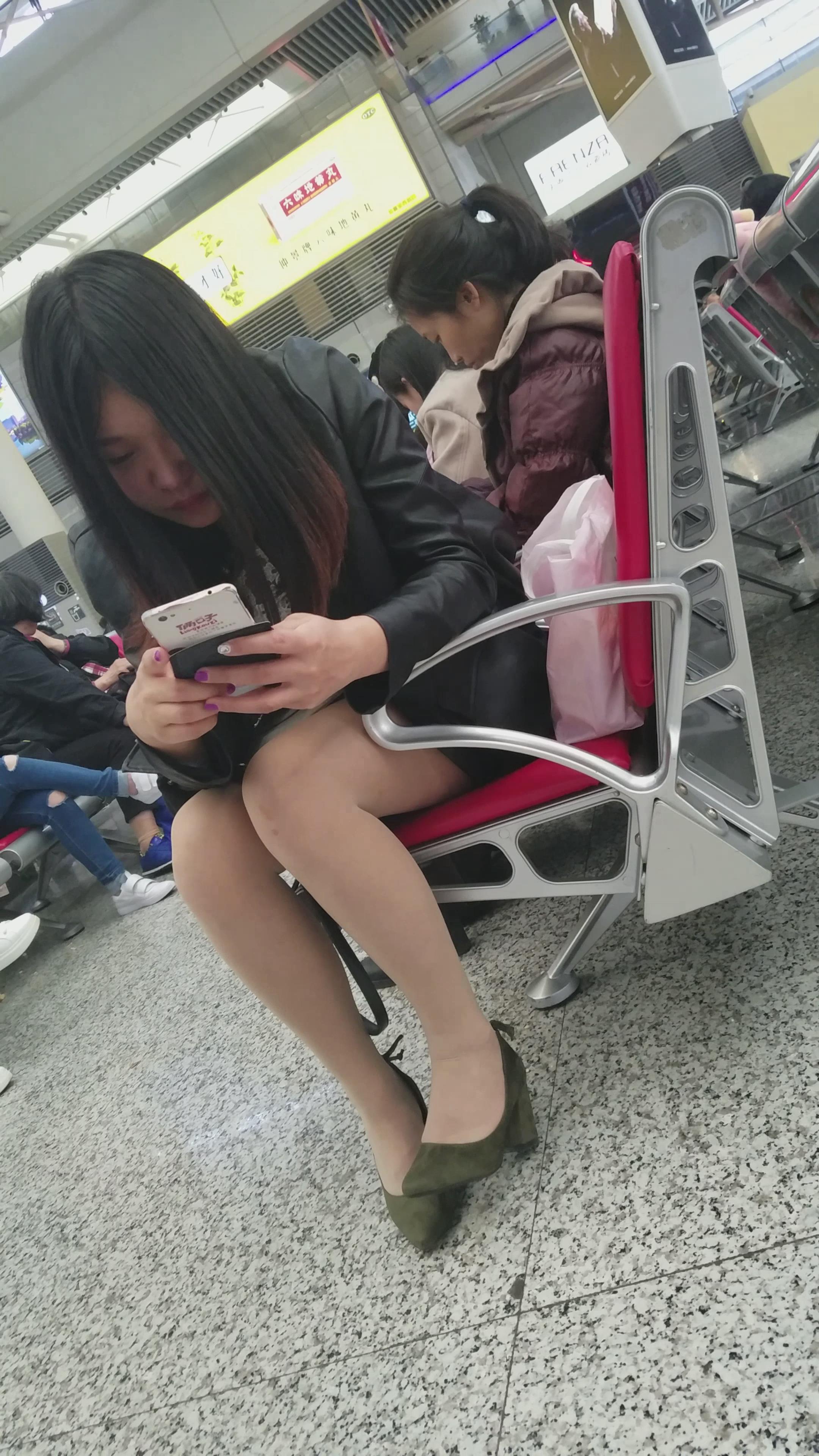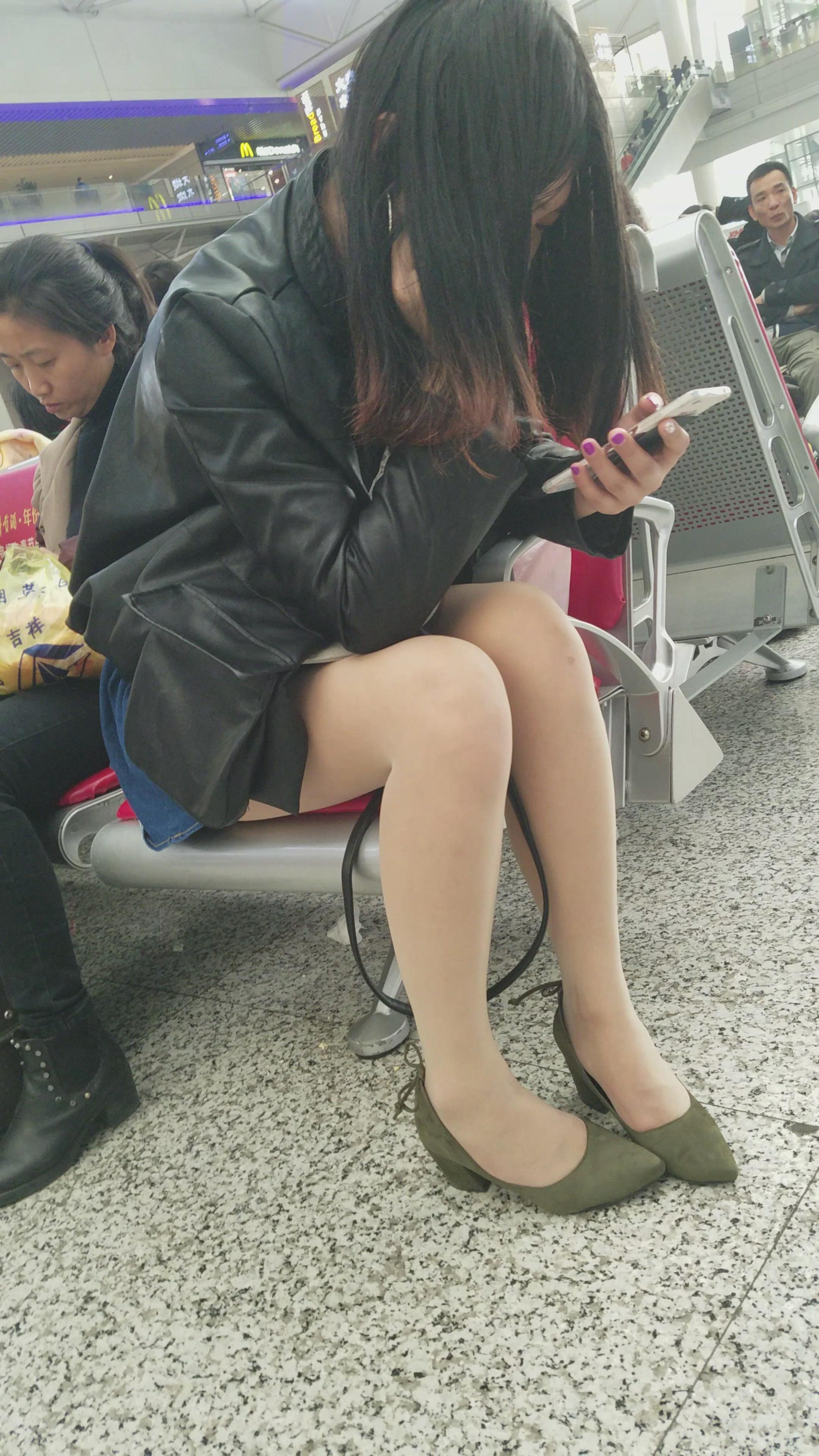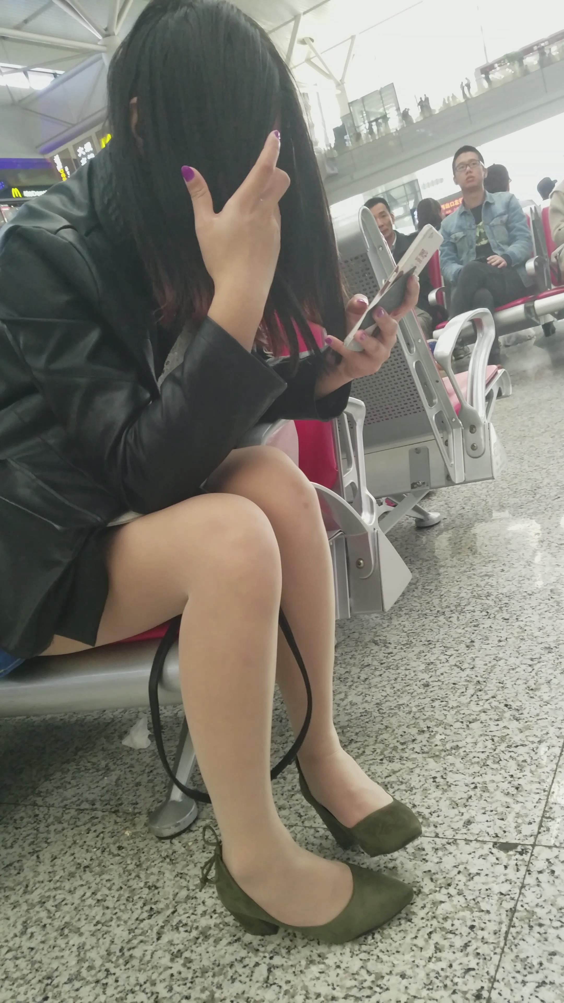 4k超清,高铁站拍摄低头玩手机的丝袜靓妹 编号2907