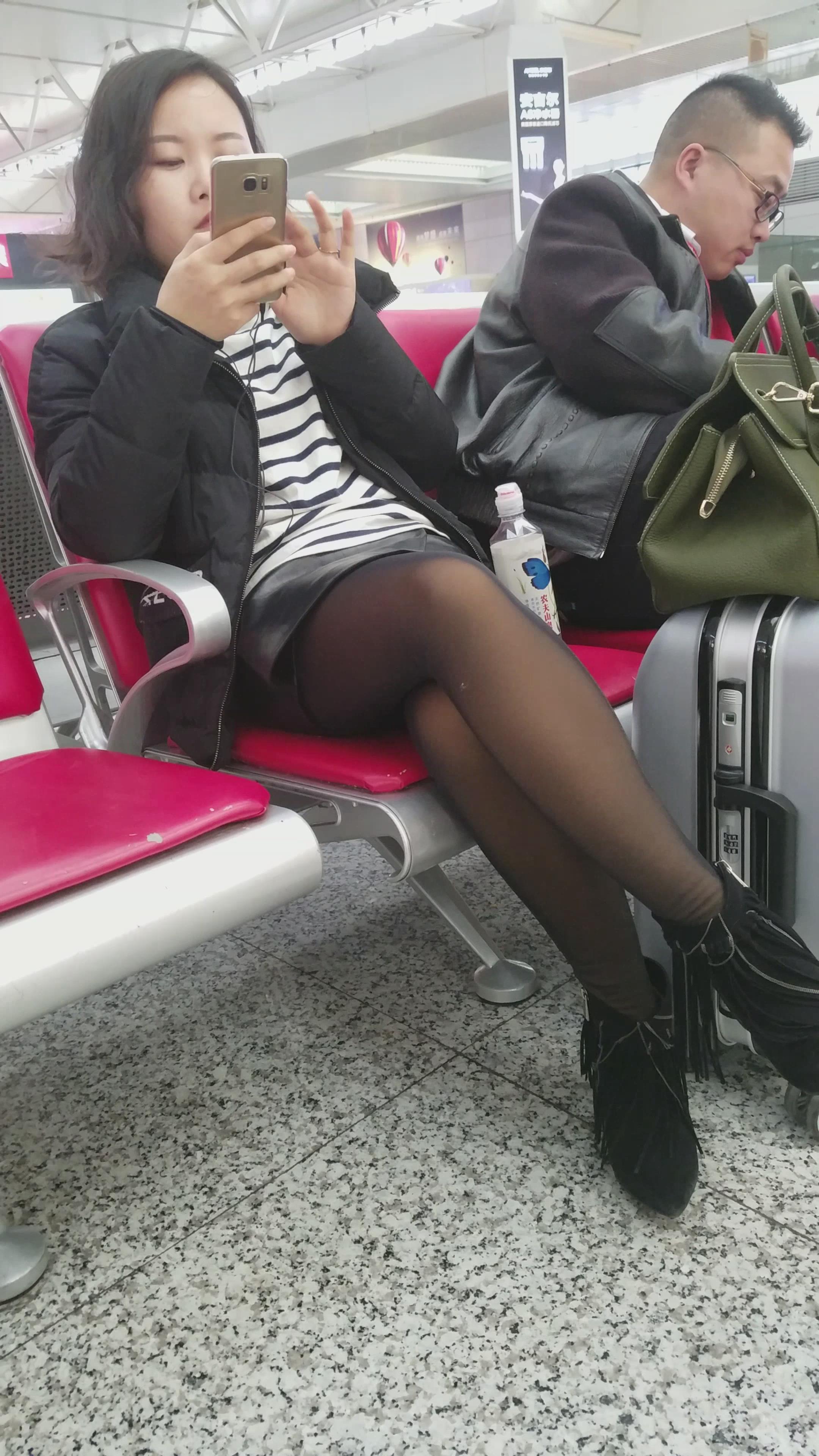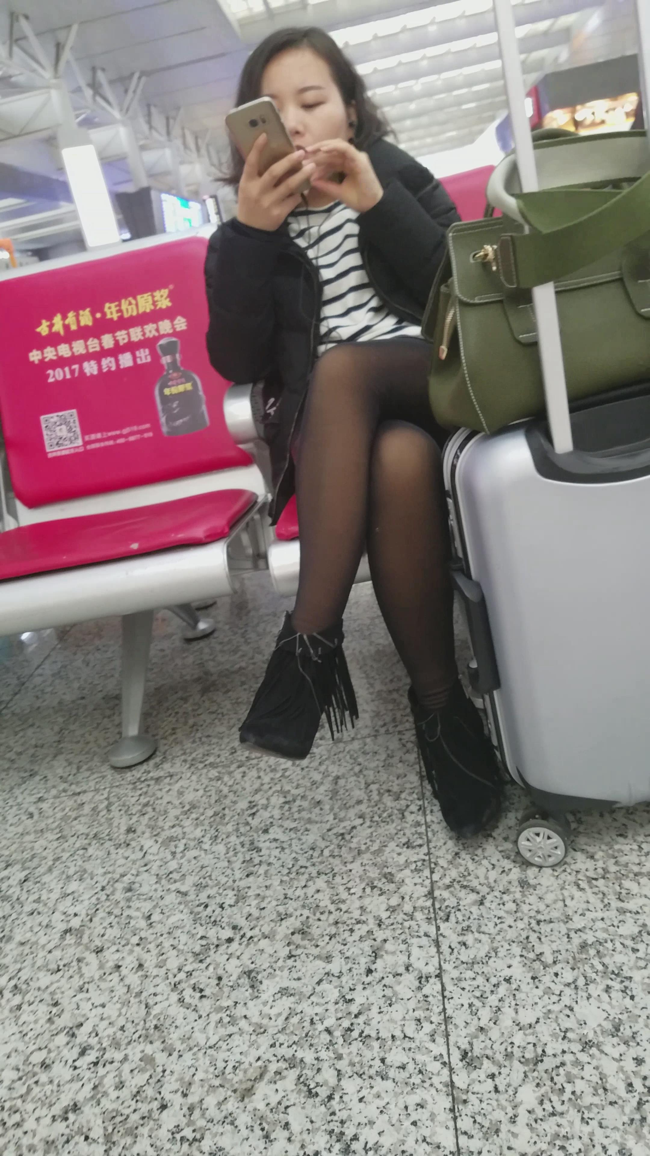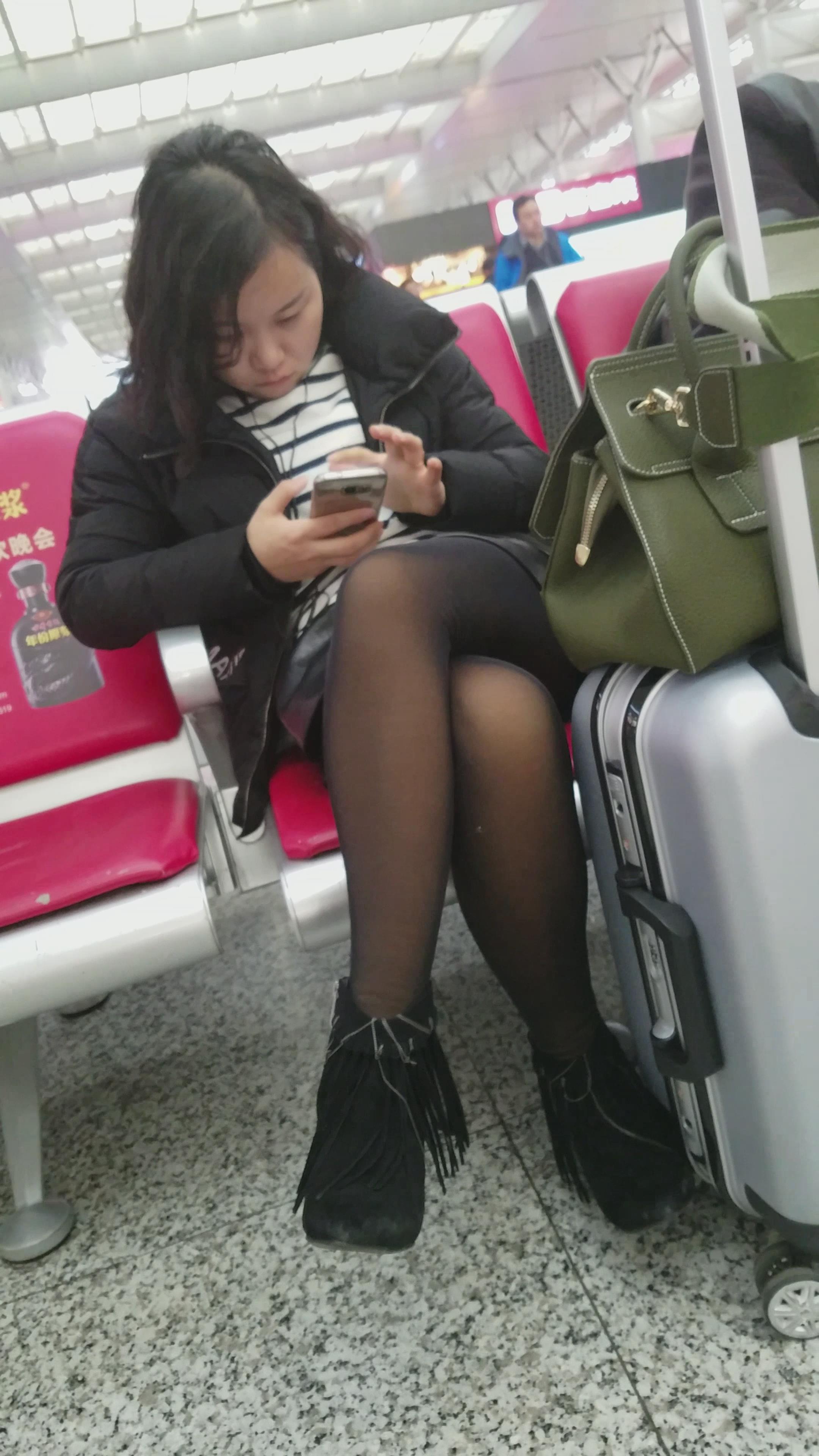 4k-高铁站低头玩手机的黑丝美女 编号2936