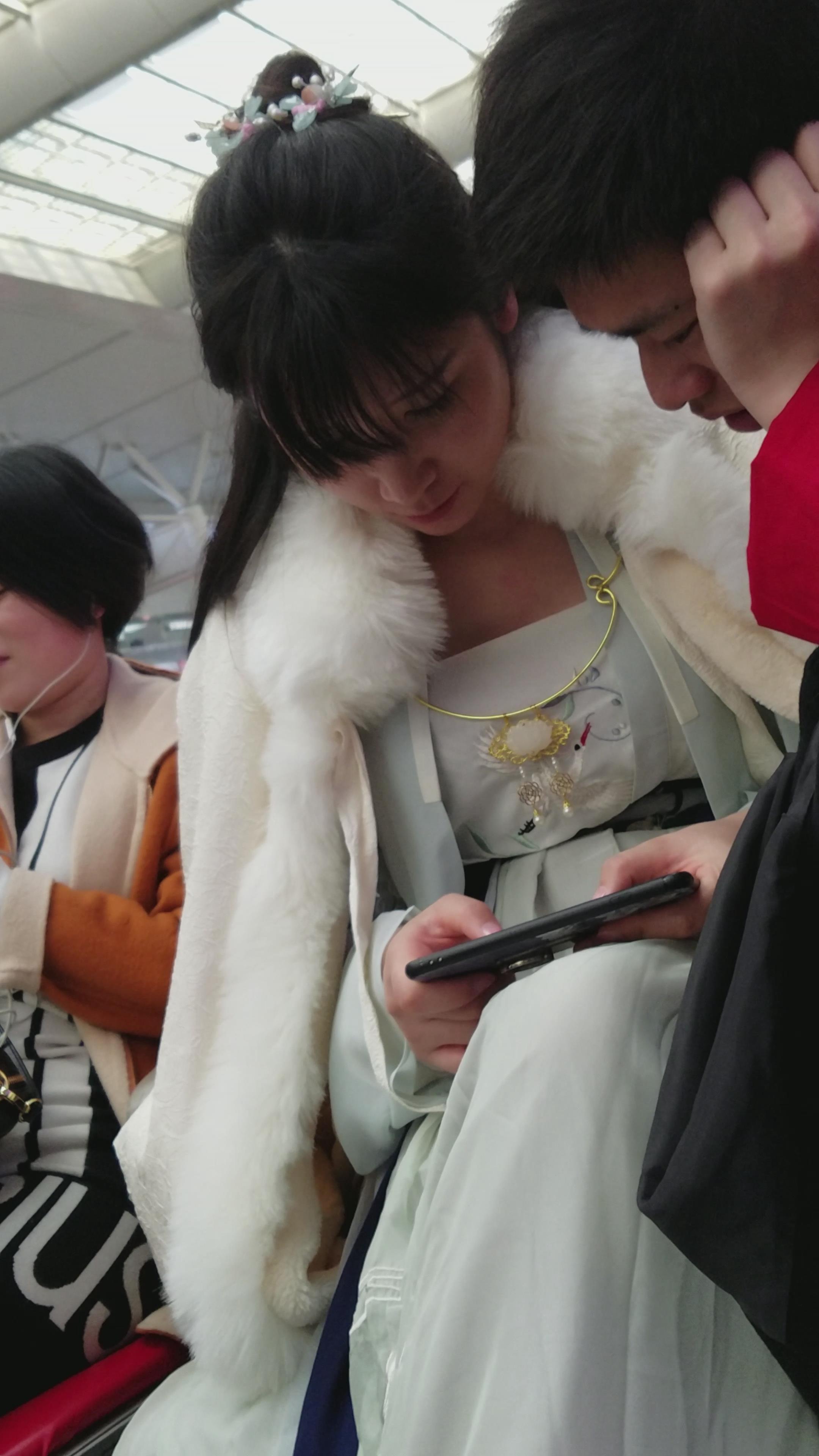 4k-候车室内低头玩pad的美裙仙女姐姐 编号2946