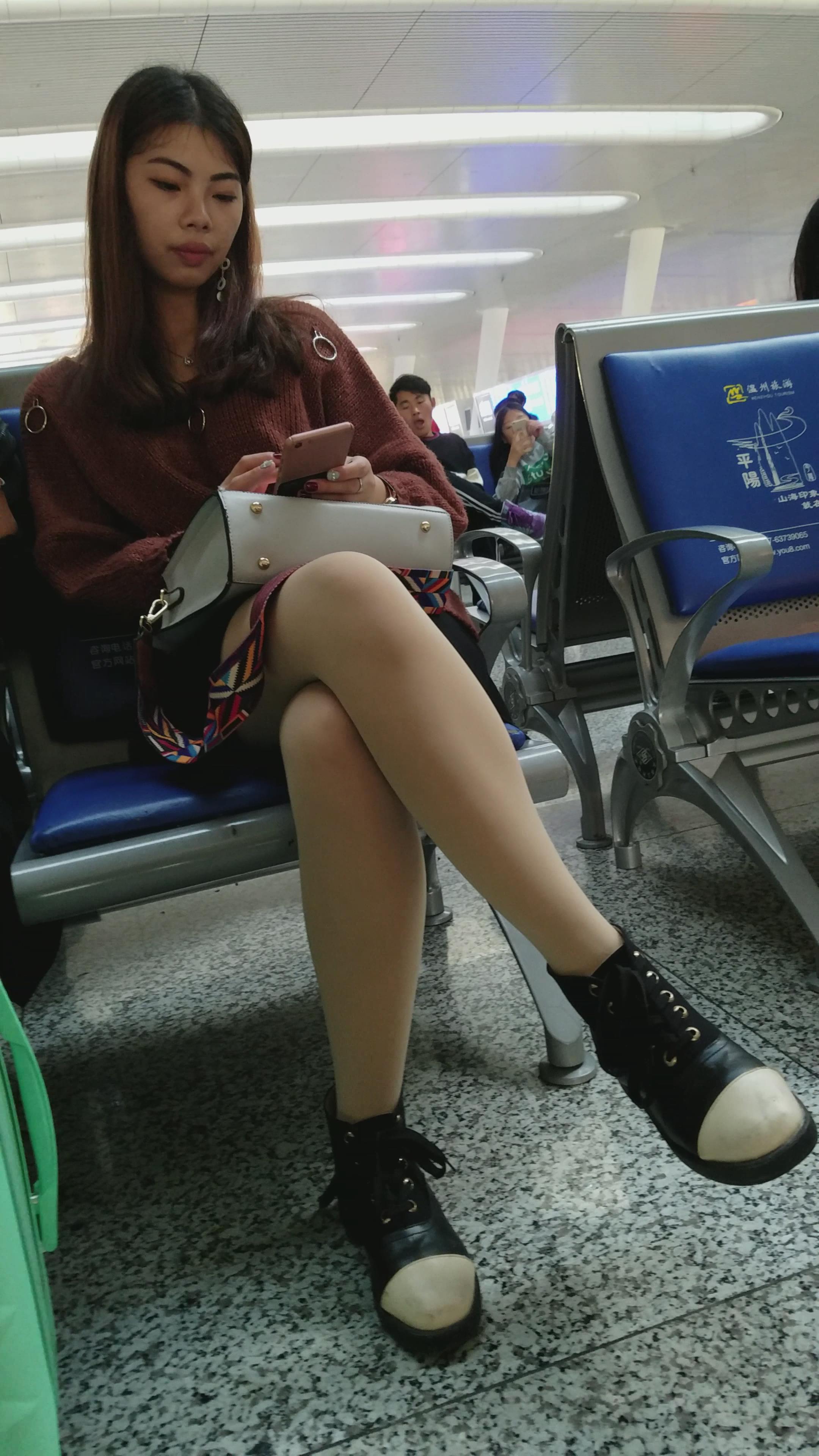 4k-高铁站候车室拍摄肉丝大长腿美女 编号2984