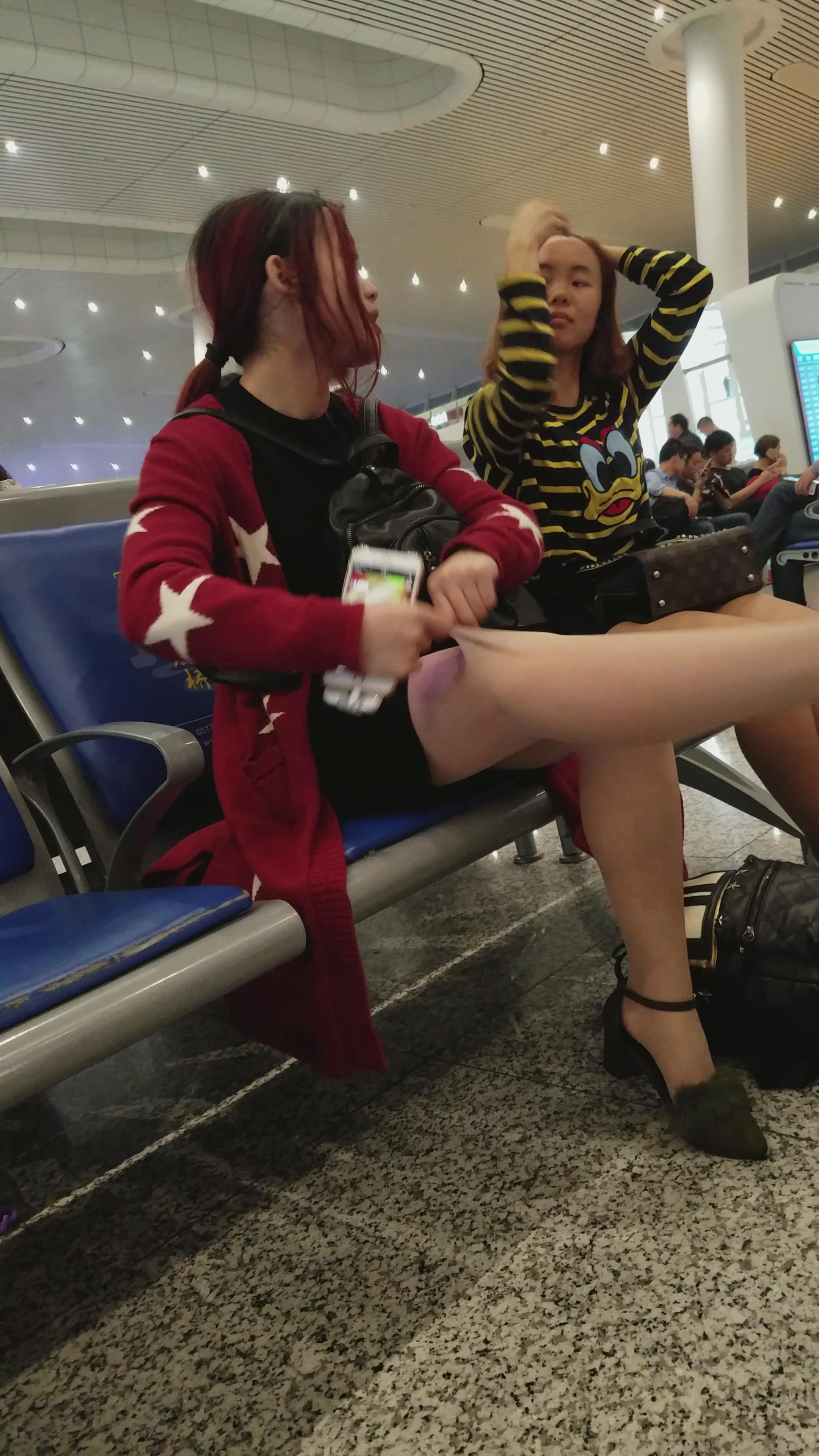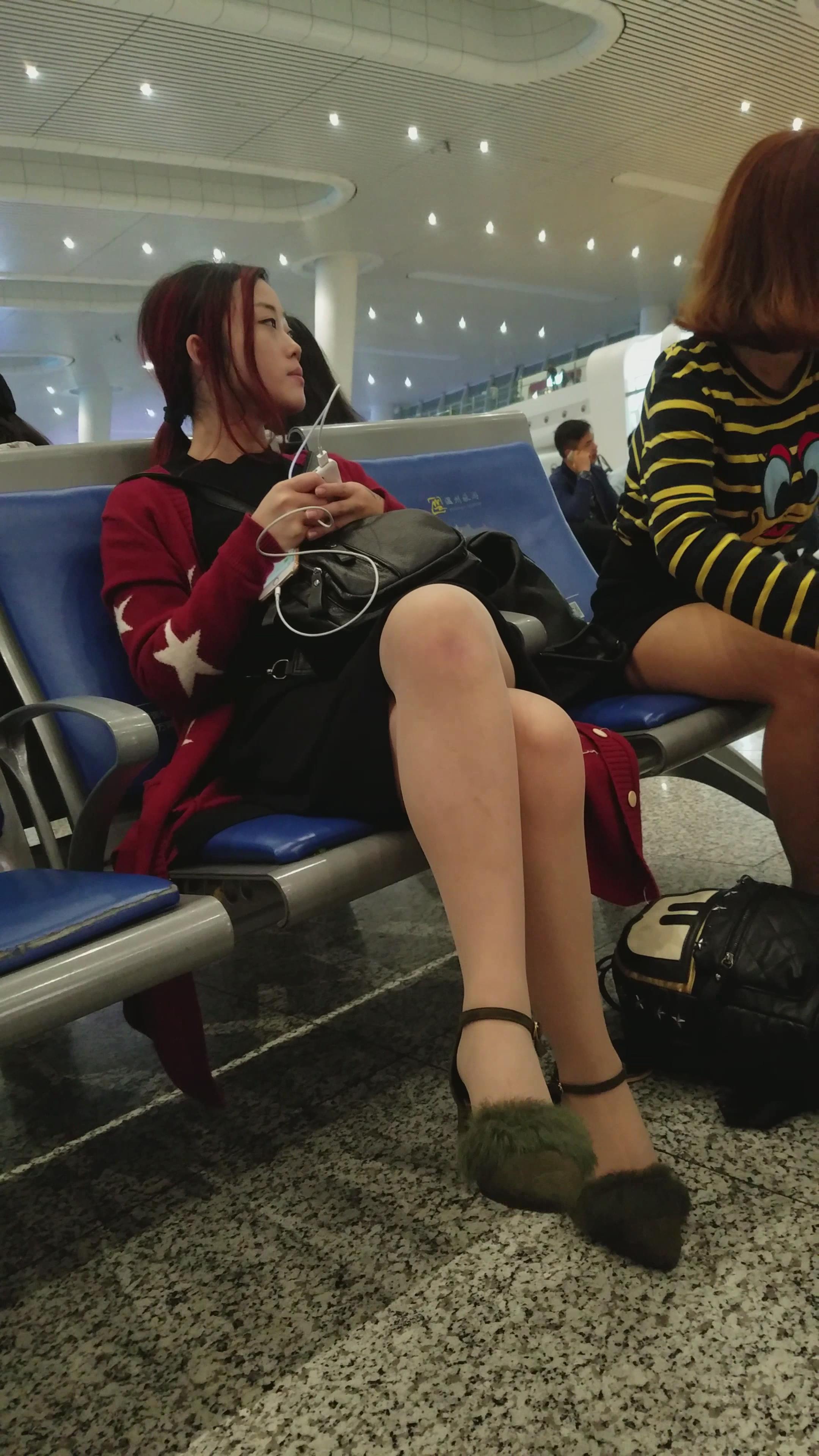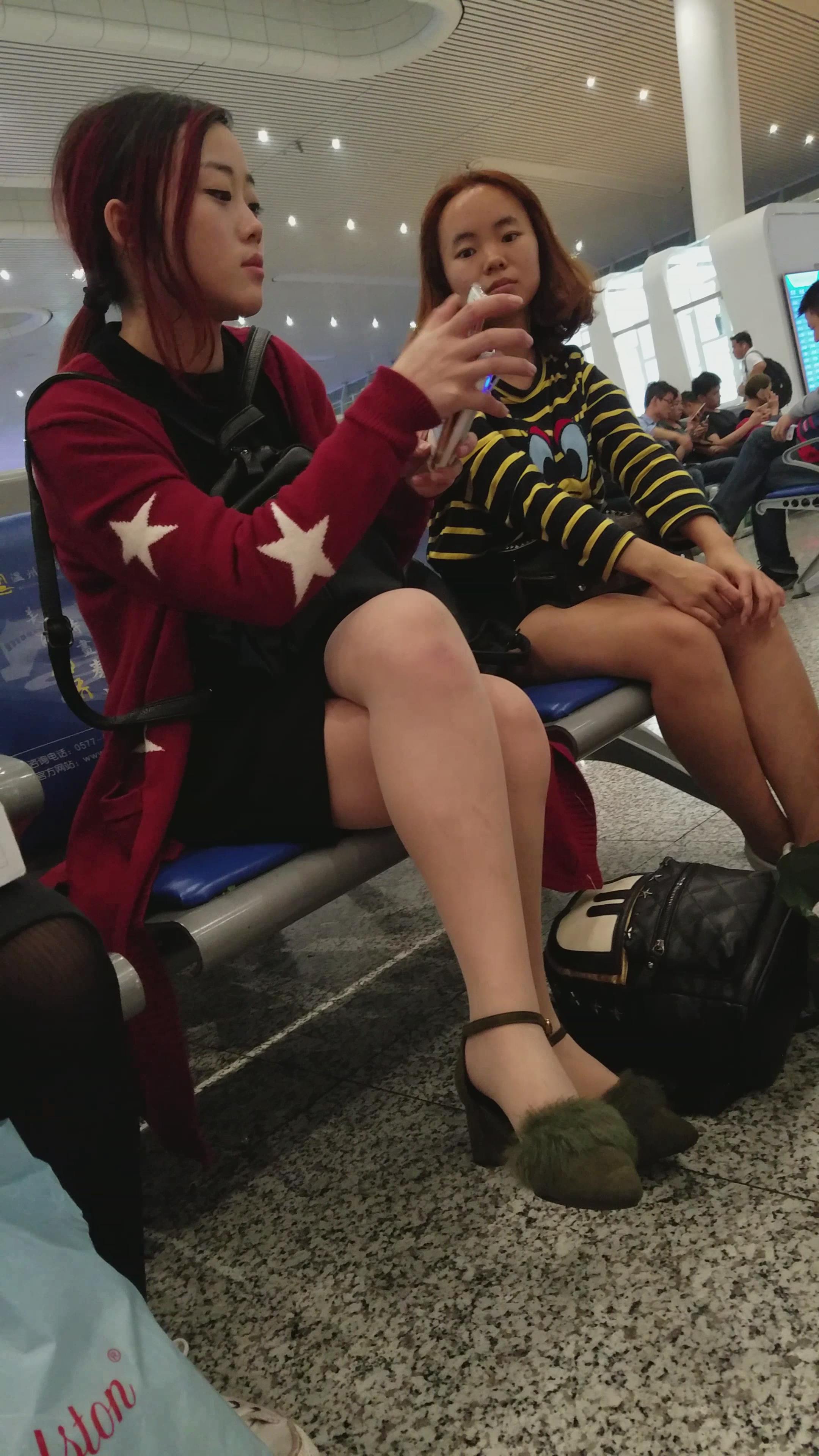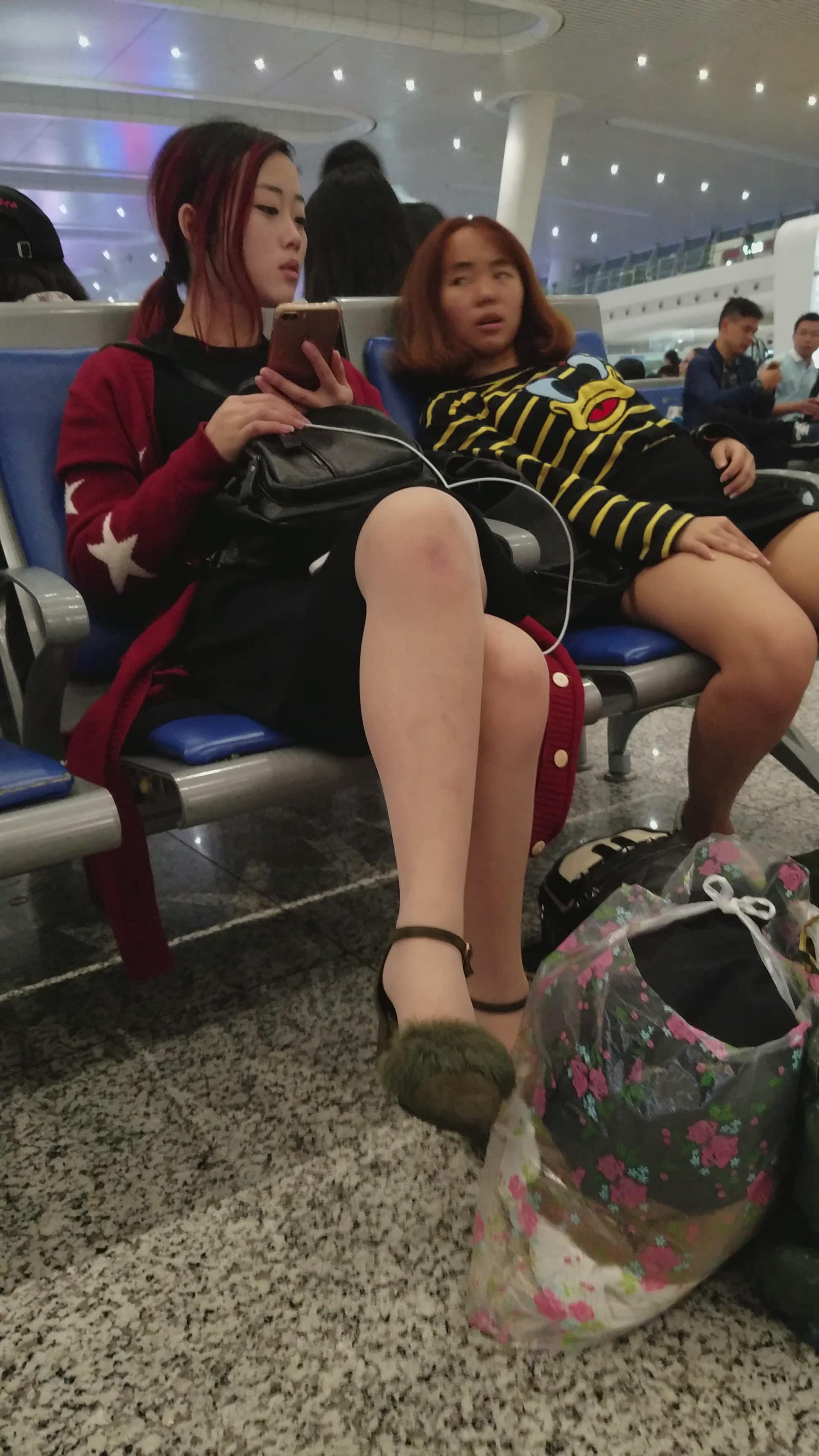 4k-候车室拍摄甜美小清新妹子跟闺蜜一起出行 编号2987