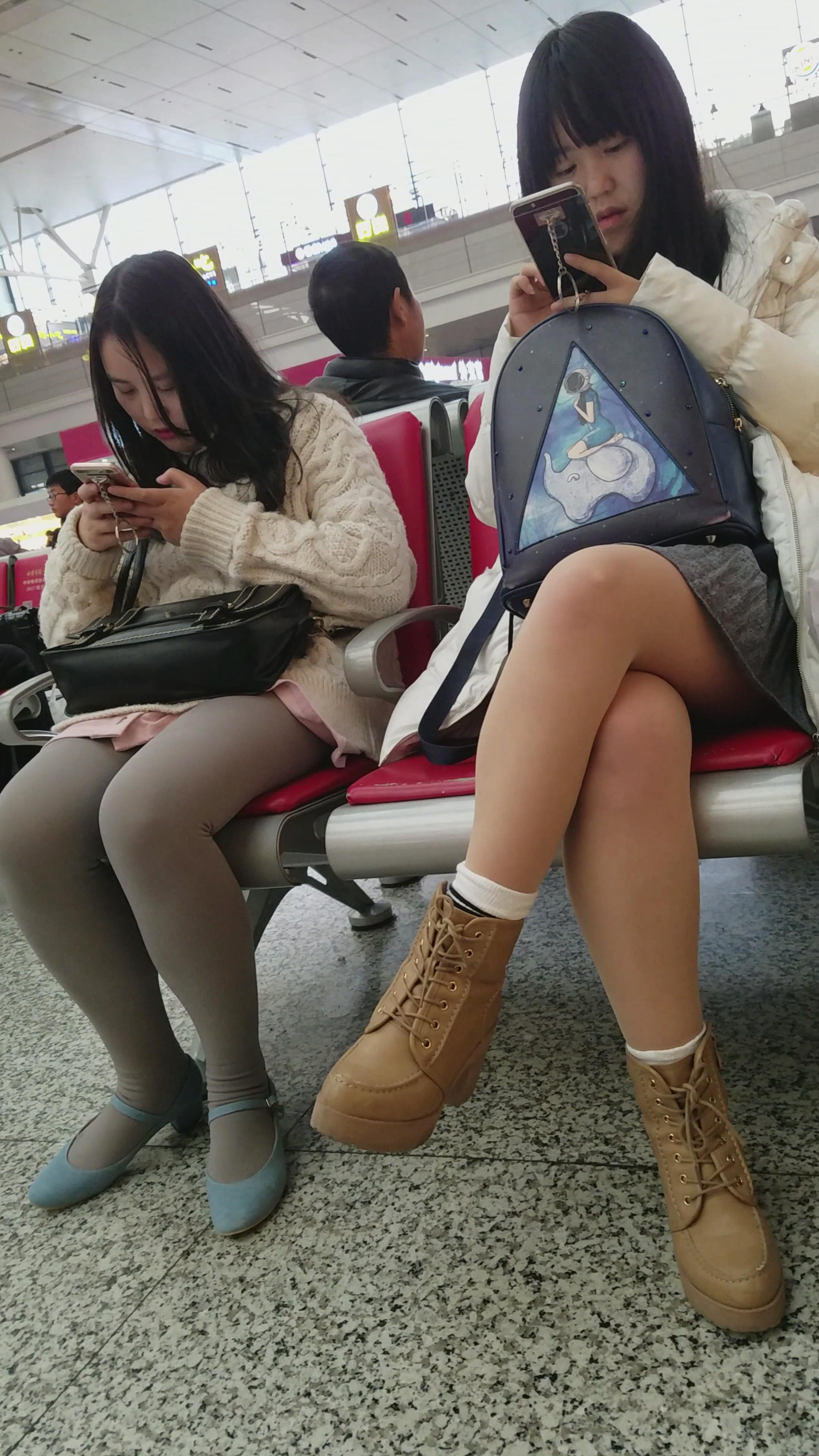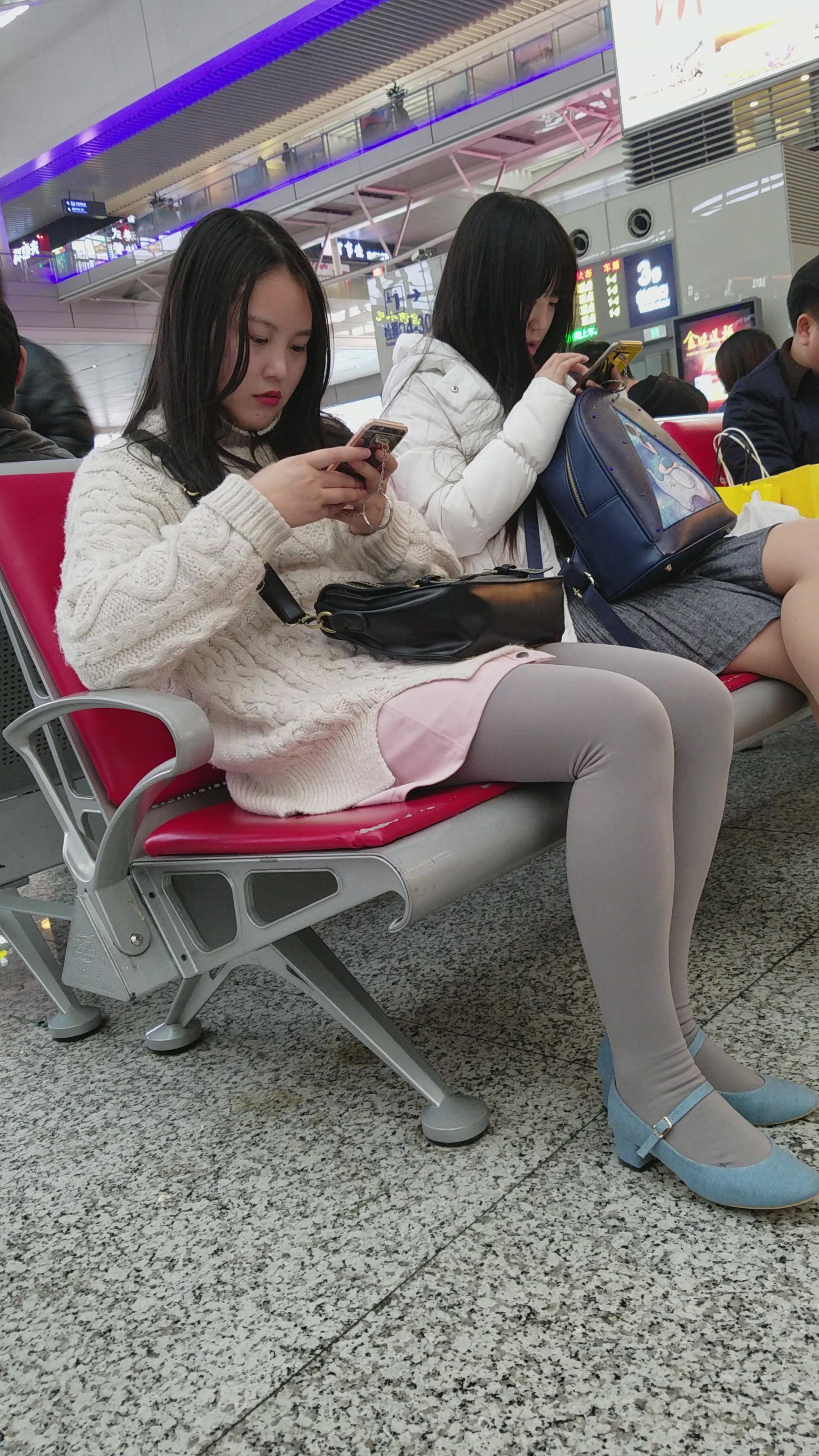 4k-高铁站候车室拍摄灰丝袜美腿姐妹 编号2990
