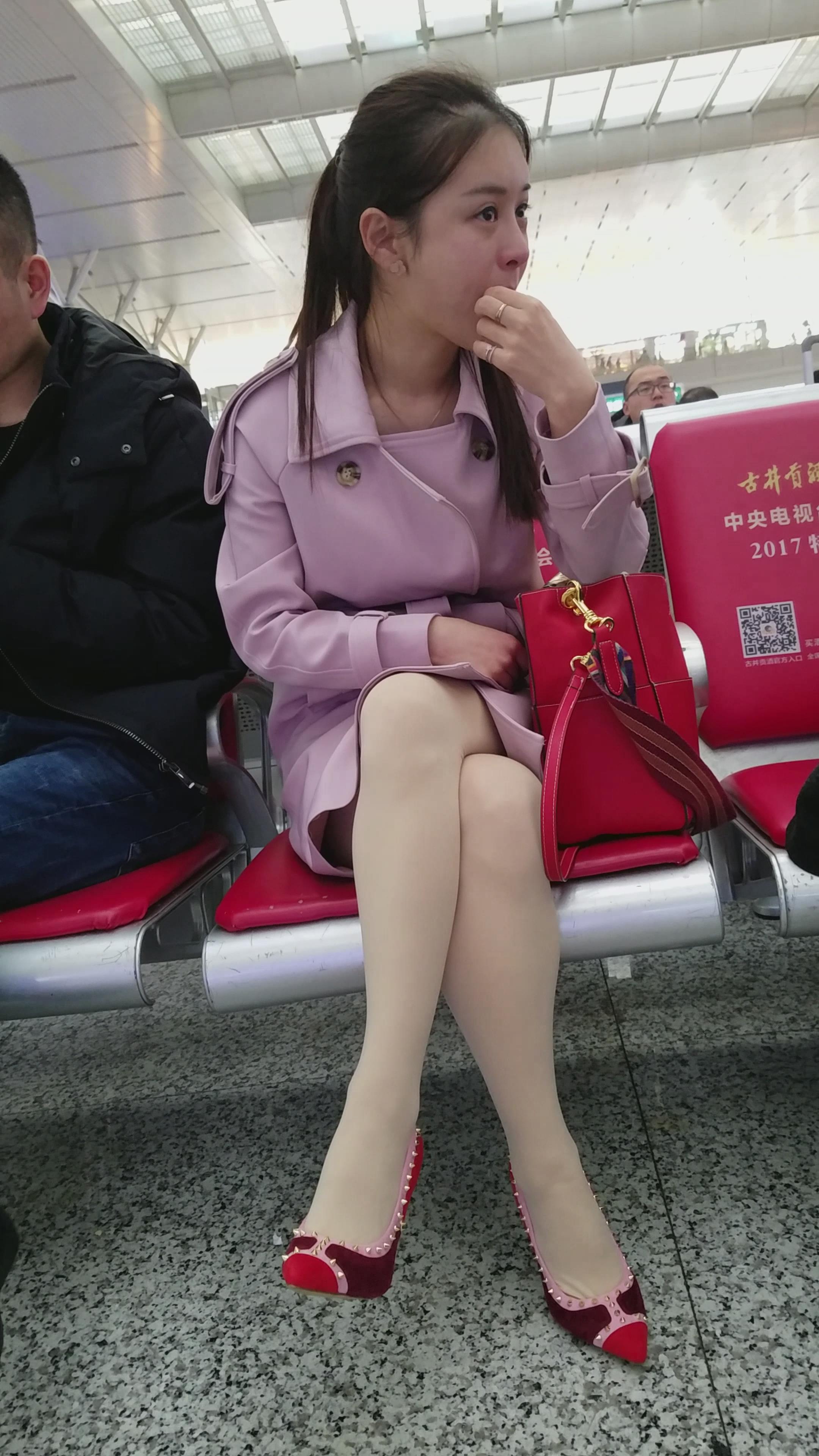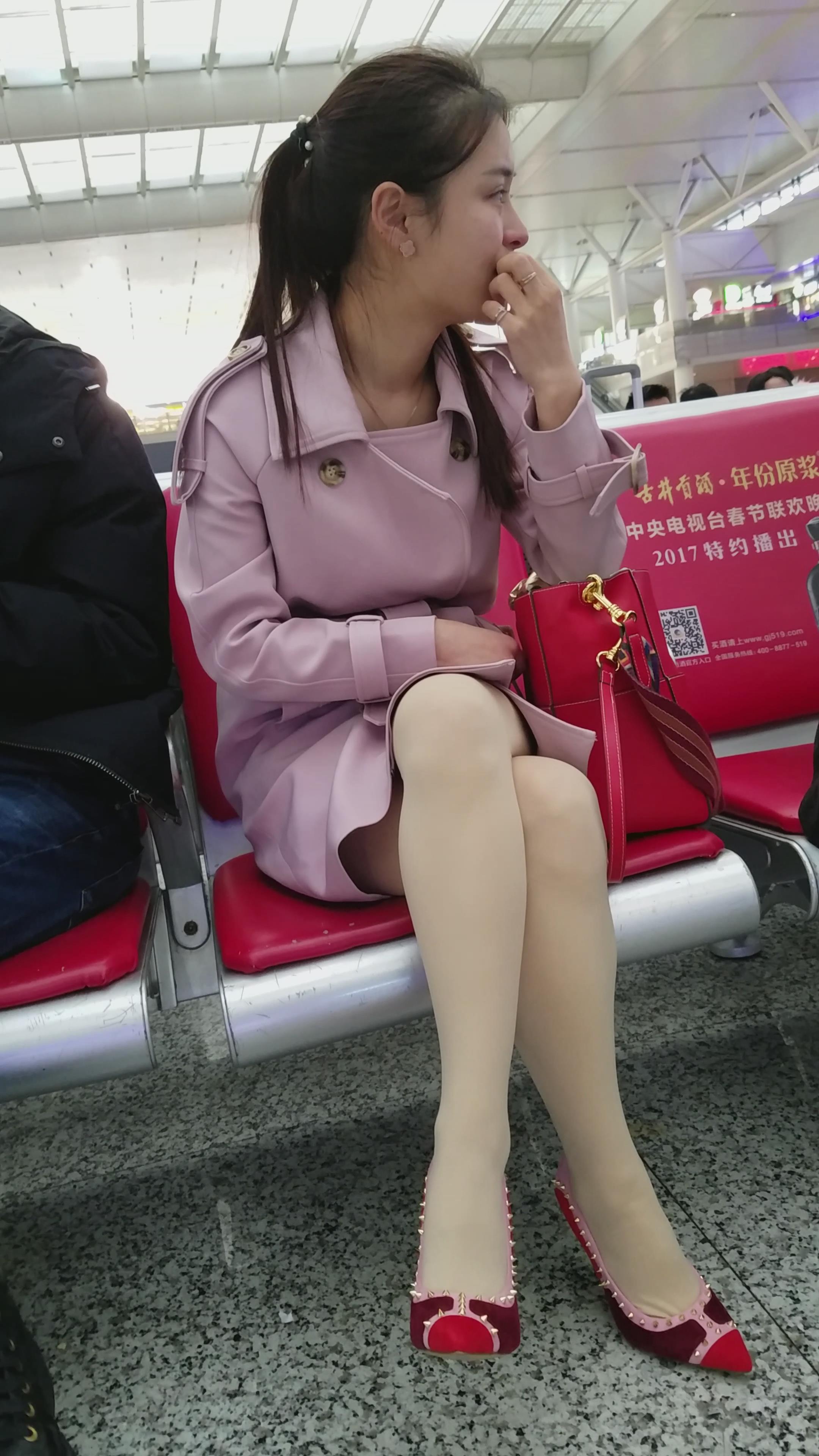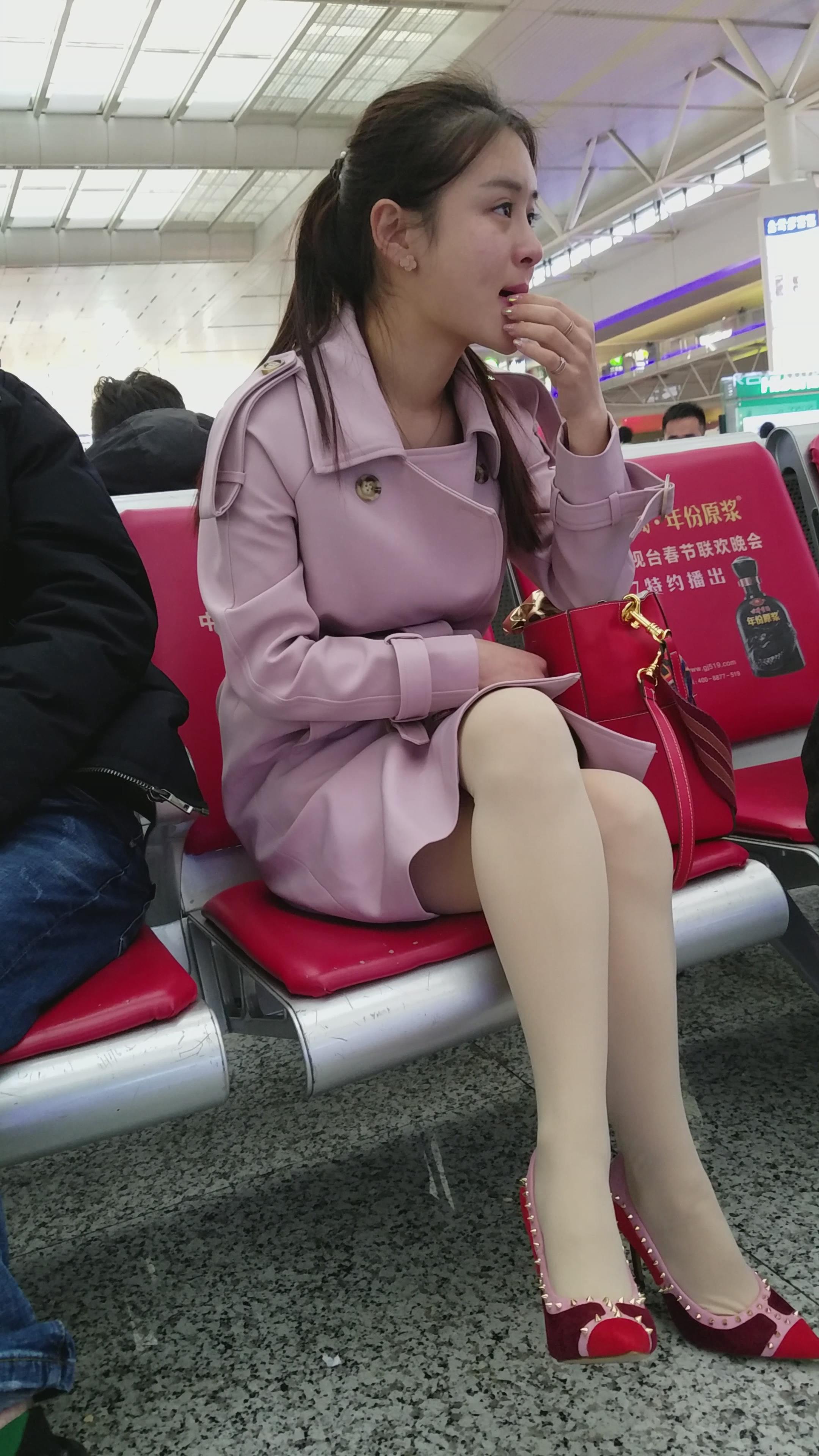 4k-高铁站候车室拍摄超级甜美性感肉丝袜高跟鞋美女姐姐 编号2992