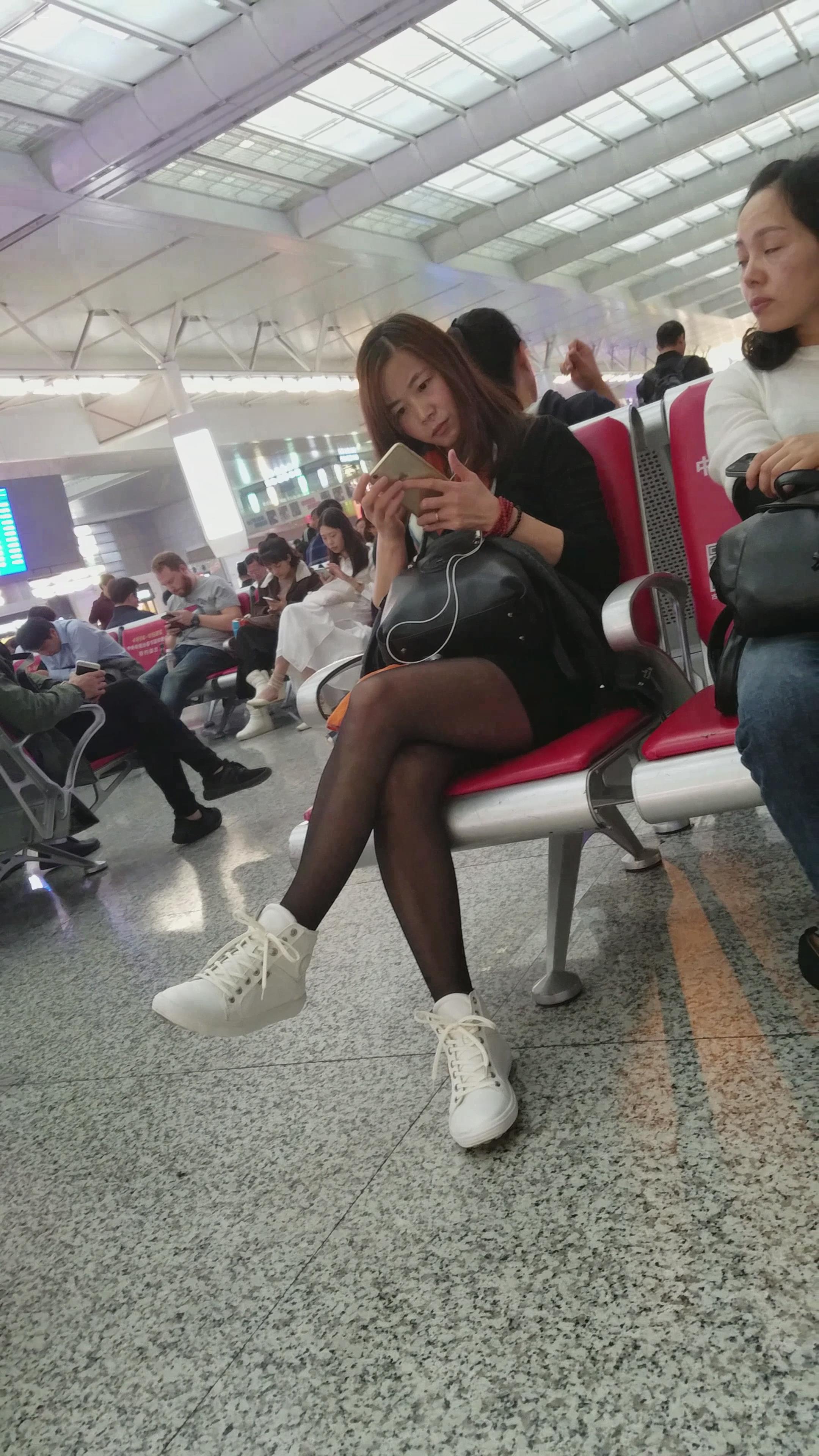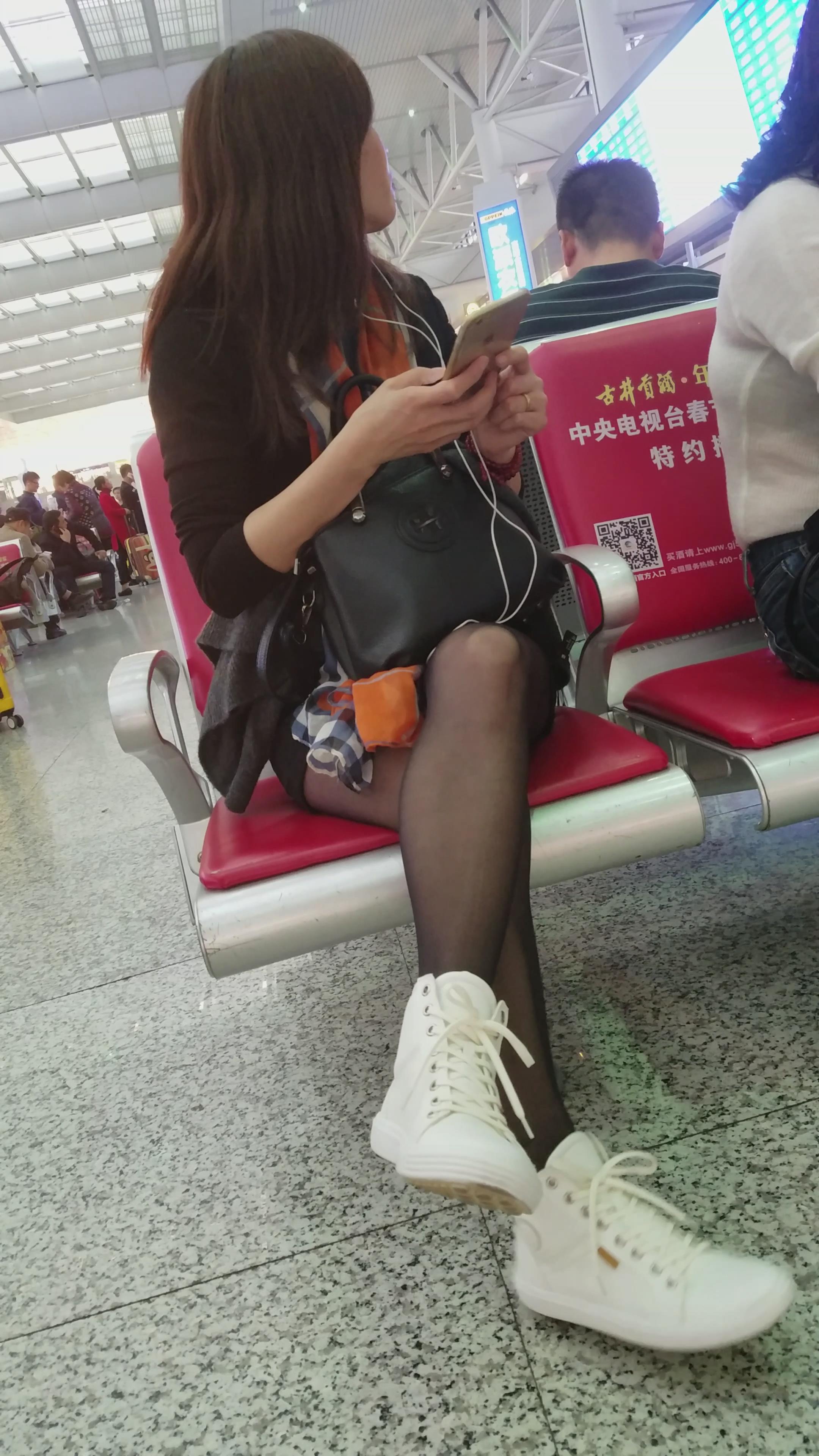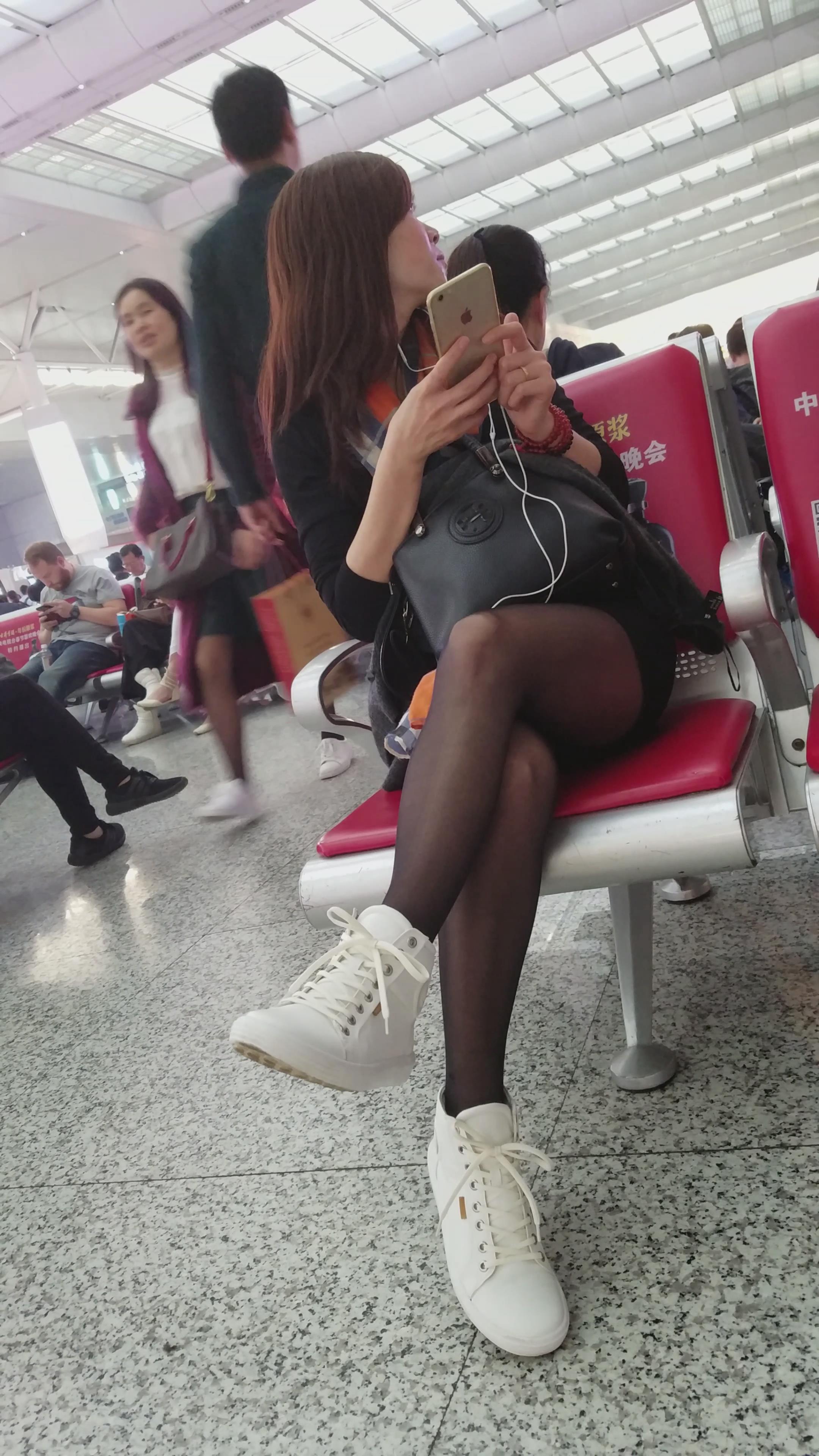 4k-高铁站候车室拍摄黑丝长腿美眉 编号3008