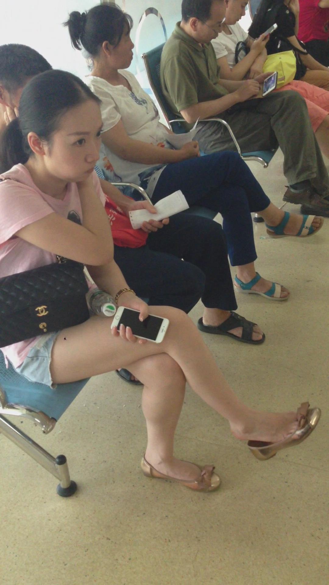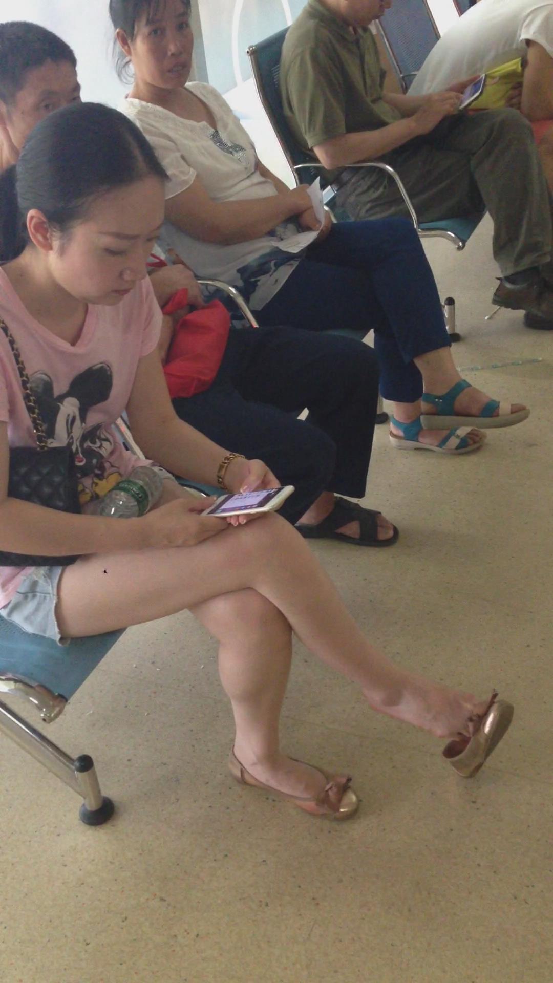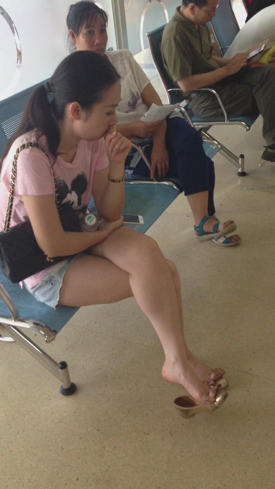 候车室内娇小玲珑小女人,挑鞋功夫一流 编号3025