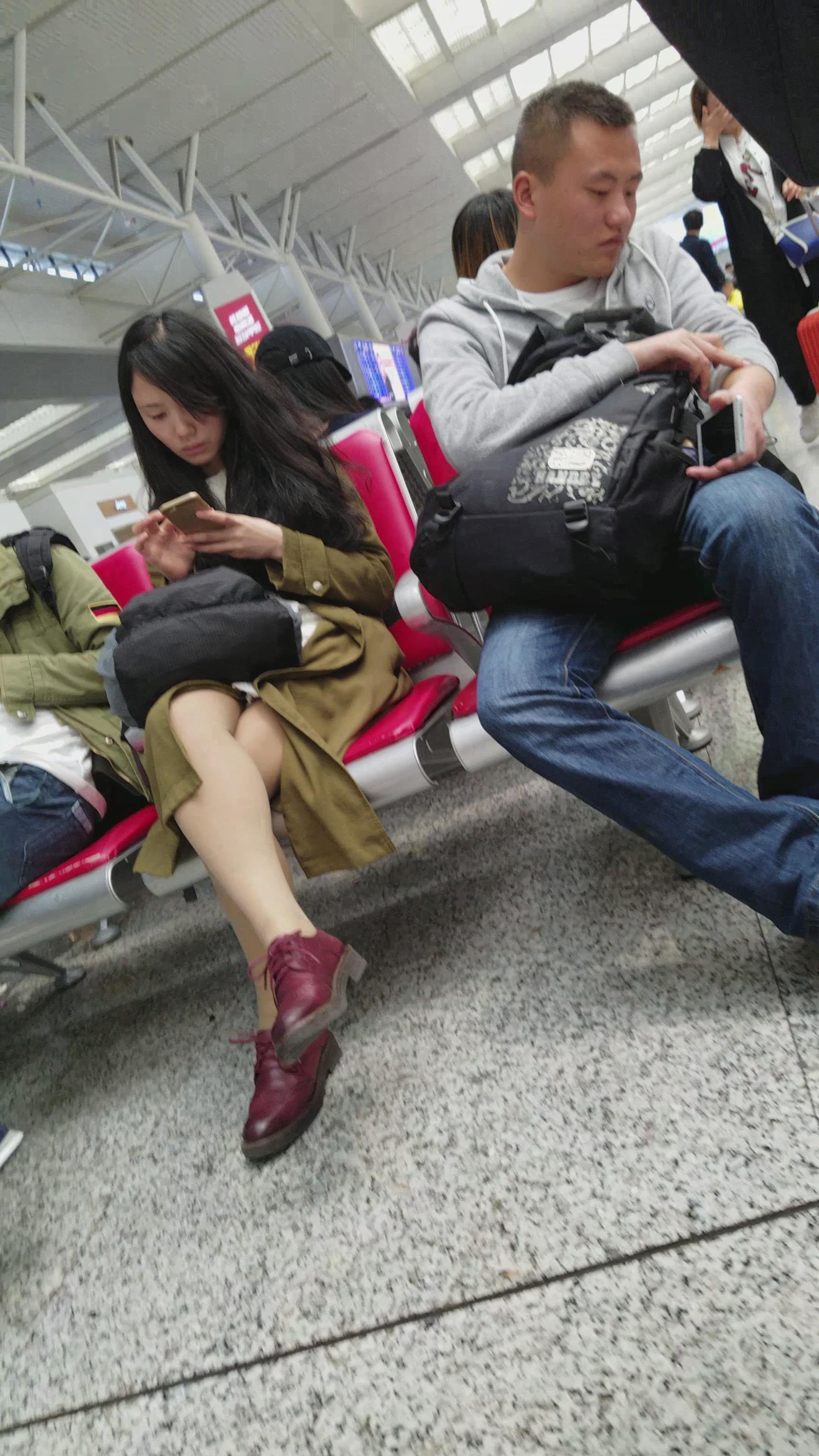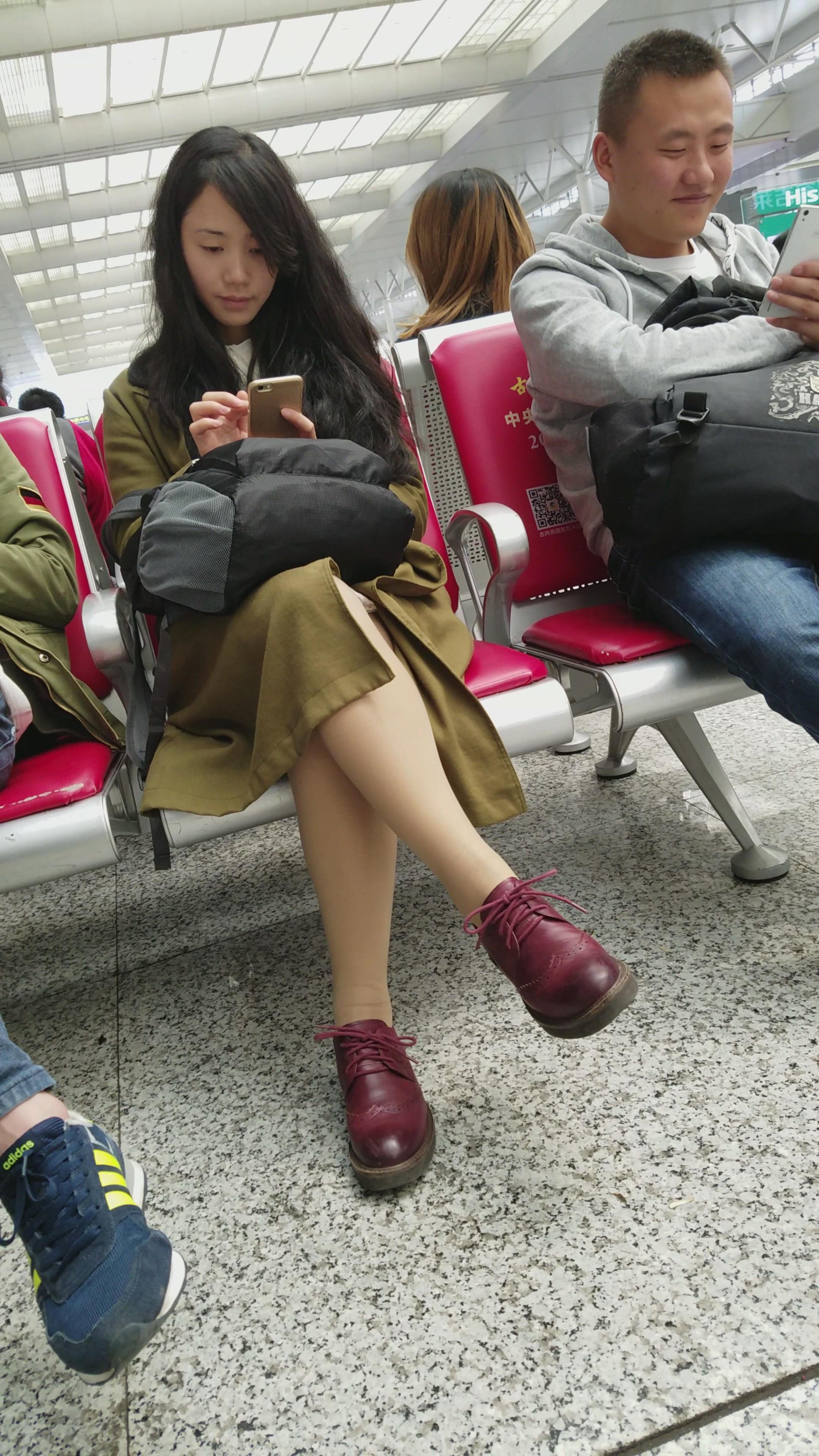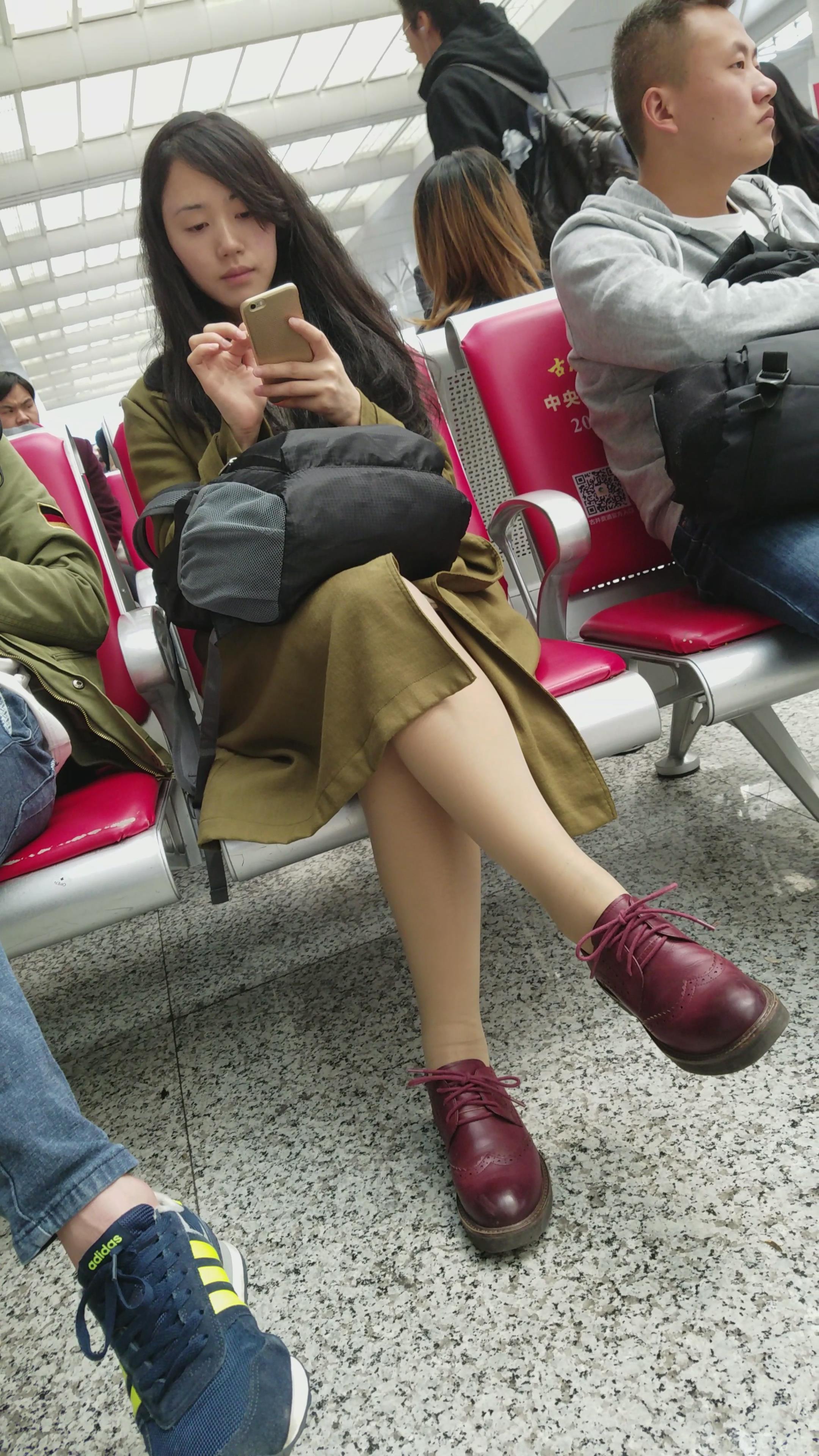 4k-候车室内专心玩手机的肉丝袜美腿美颜小姐姐 编号3058