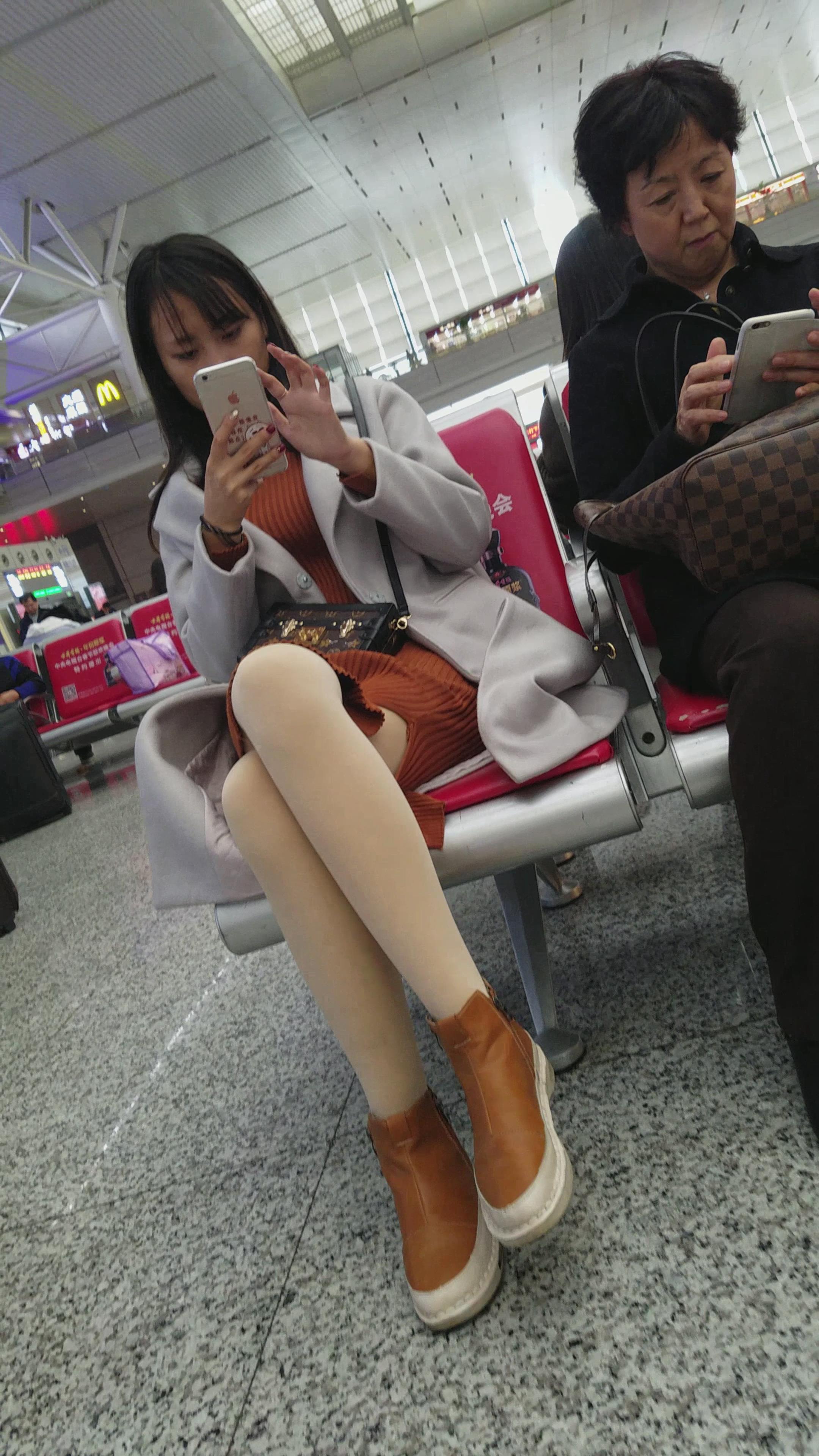 4k-高铁站候车室拍摄美腿性感肉丝长发美眉 编号3070