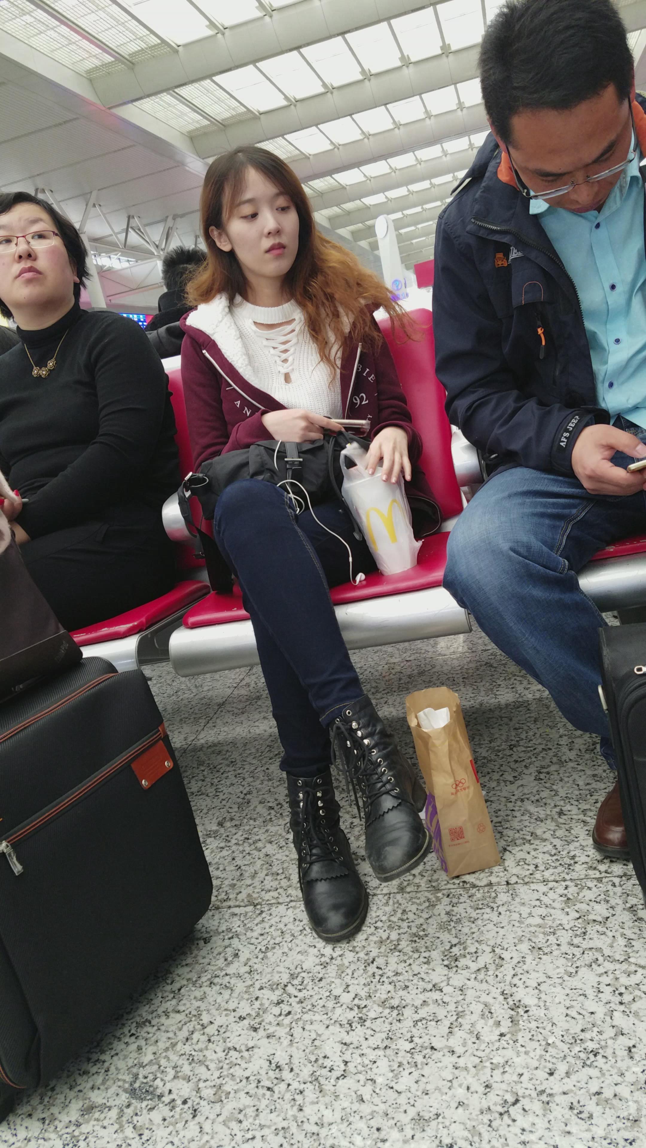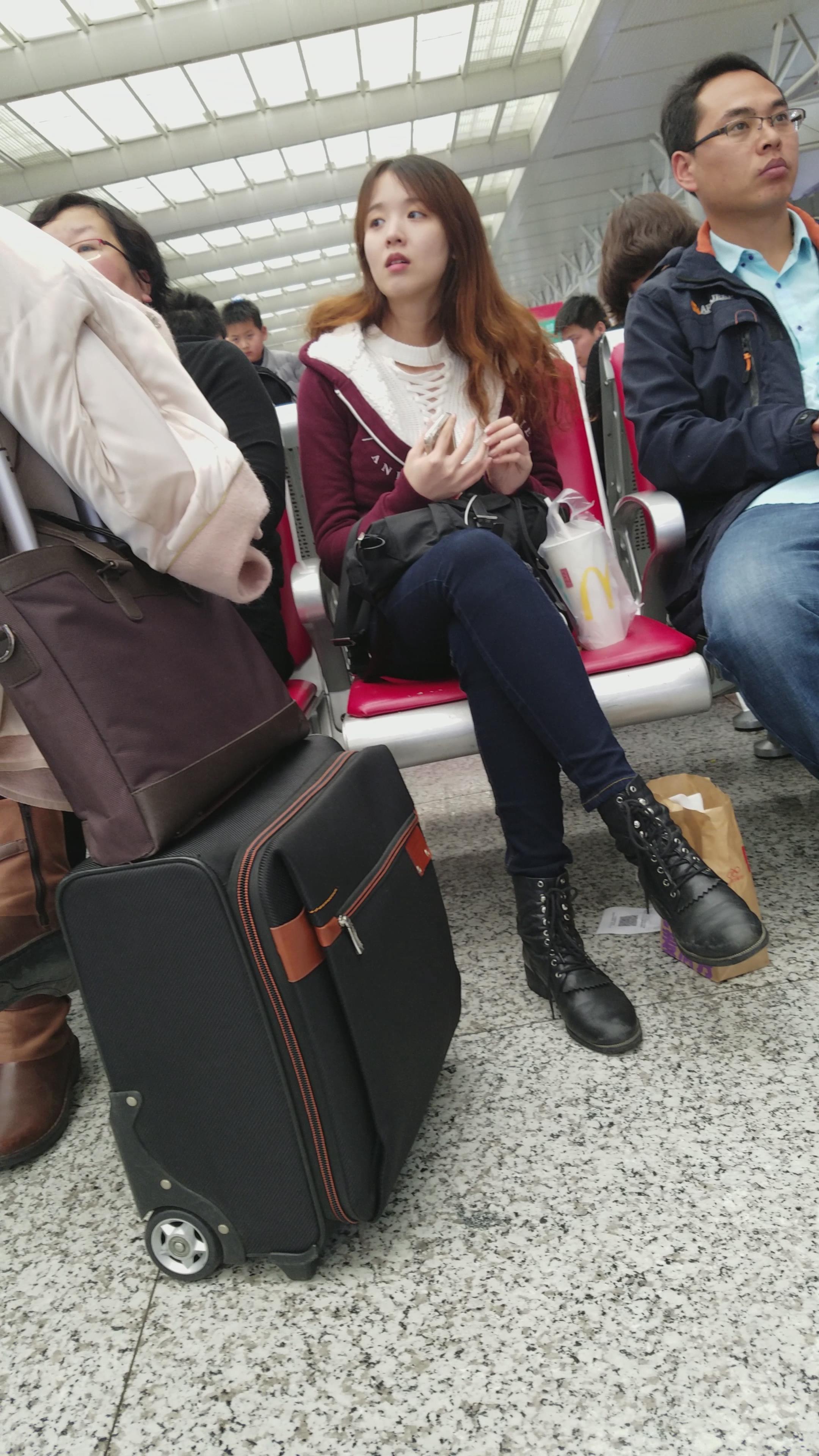 4k-高铁站候车室拍摄文静甜美漂亮美女 编号3081