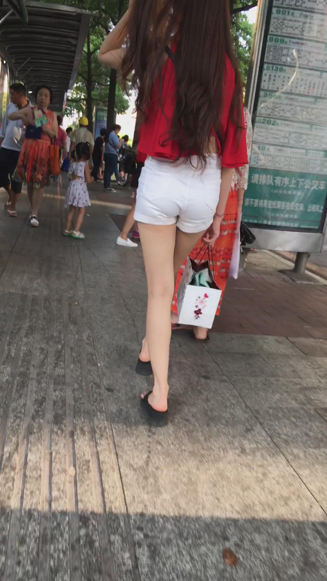 热裤青春靓丽少女,白皙大腿身材真是好 编号4540