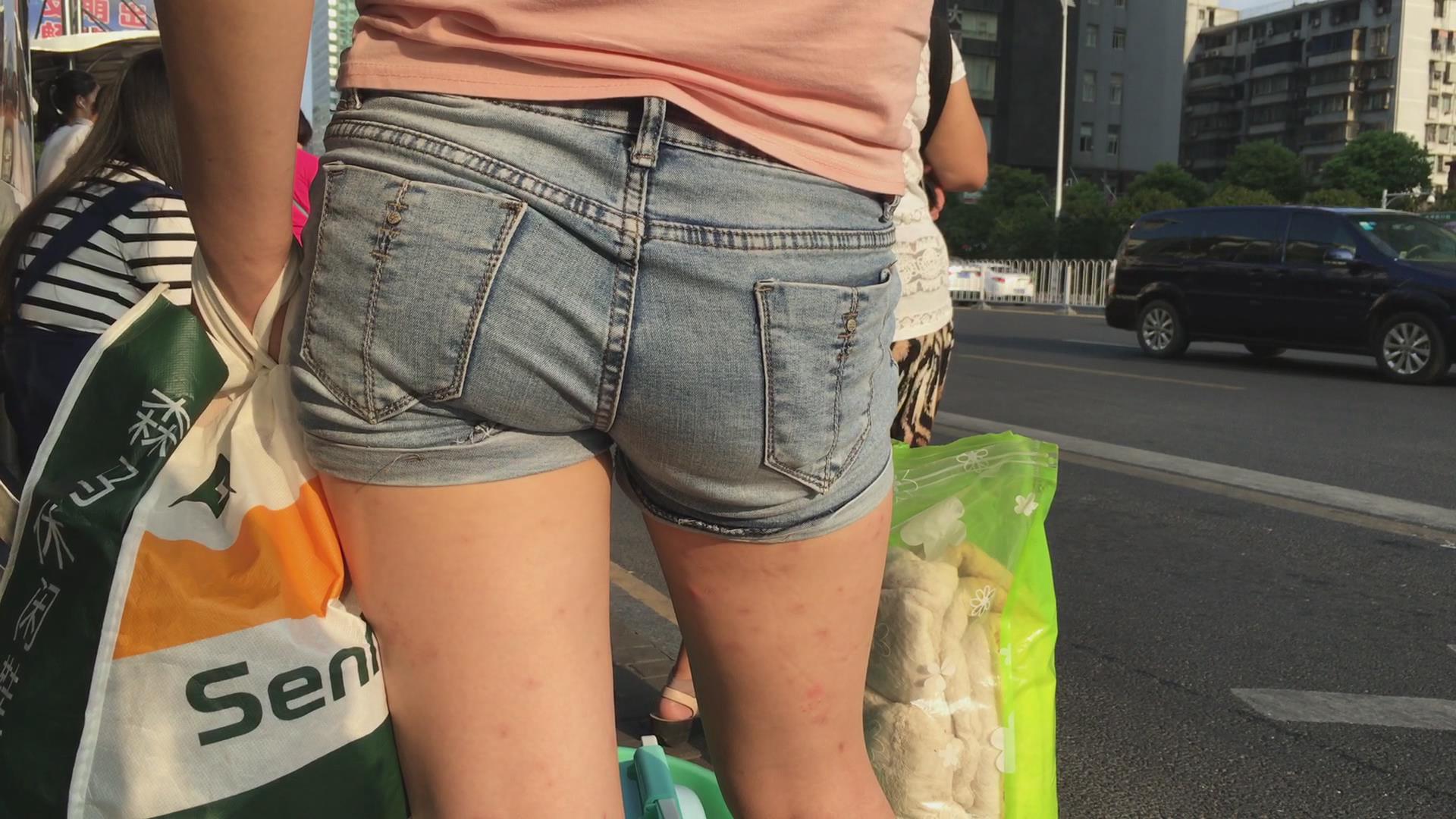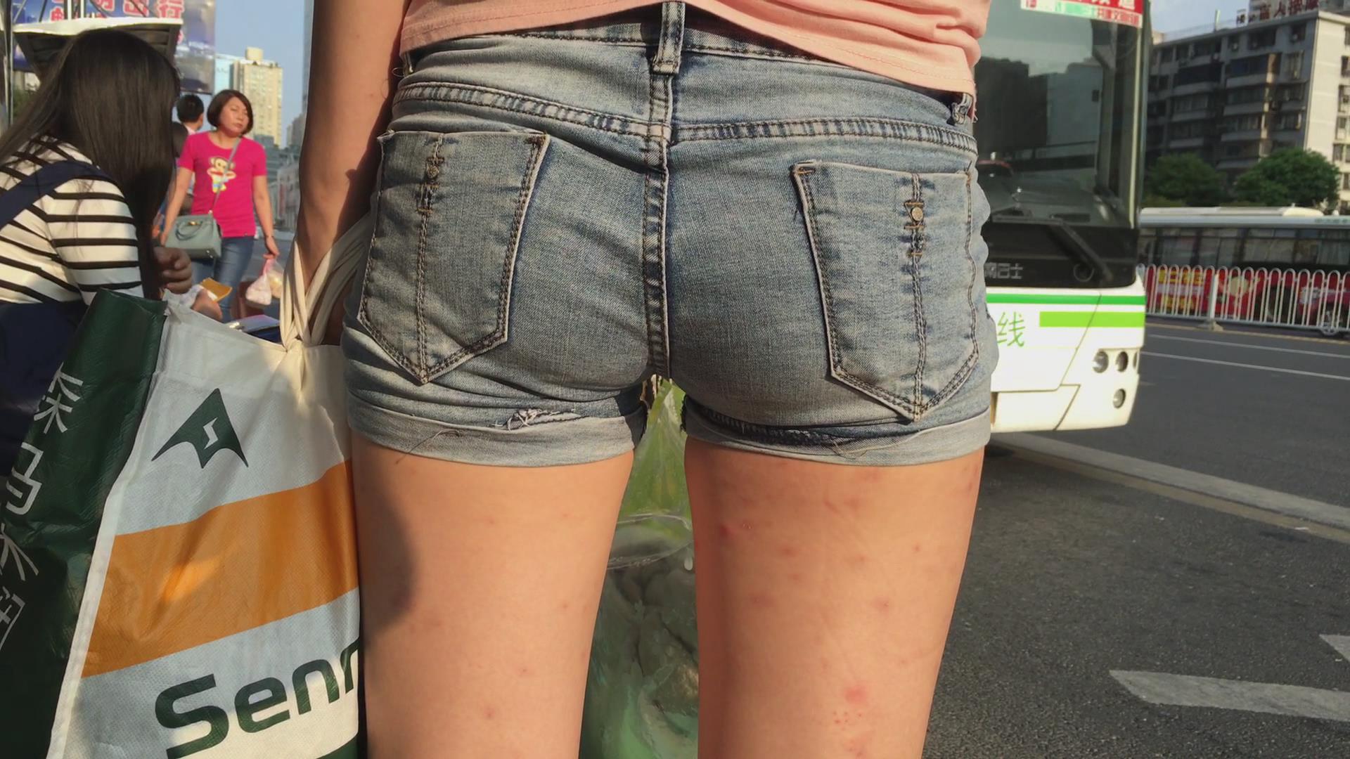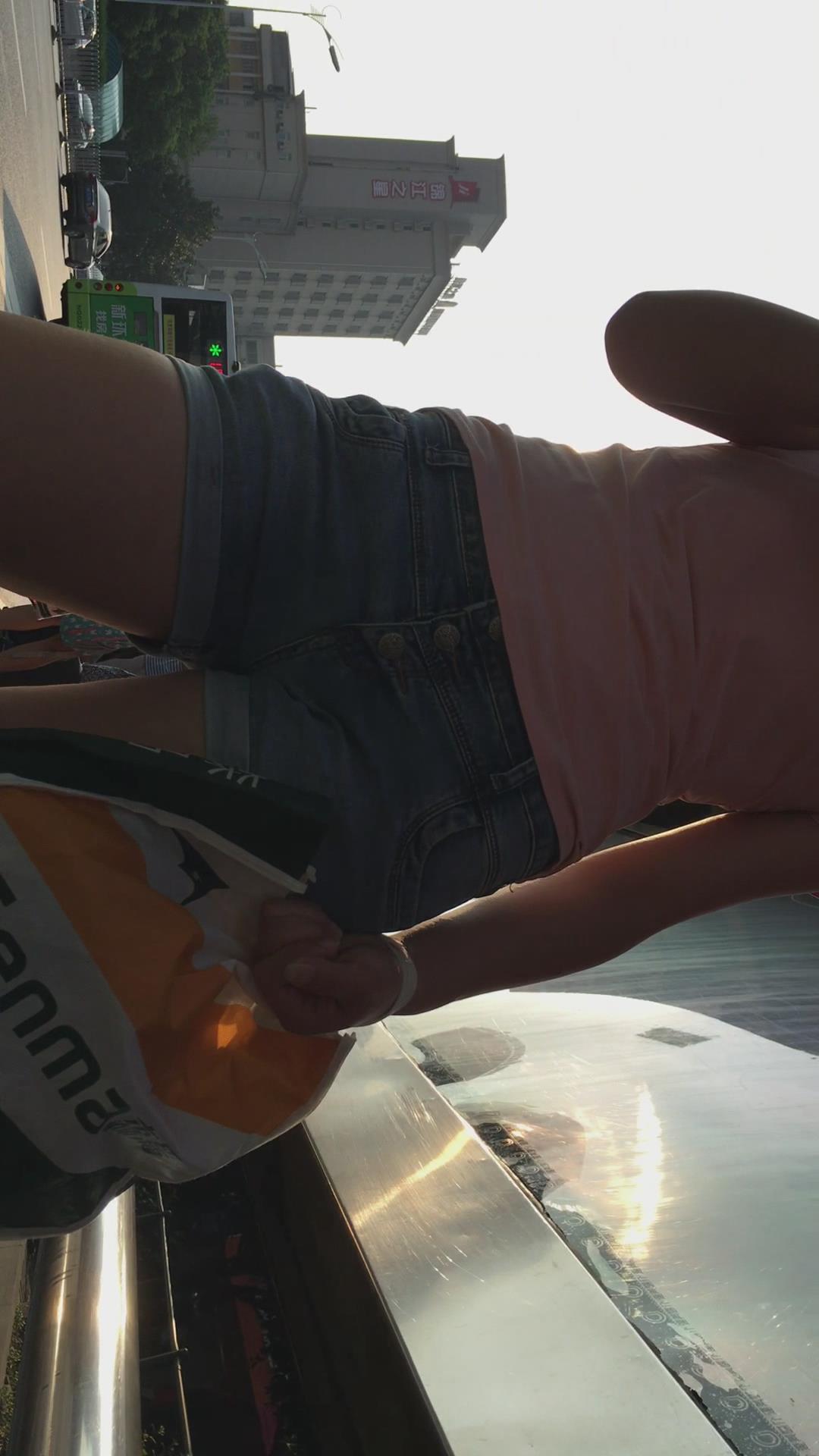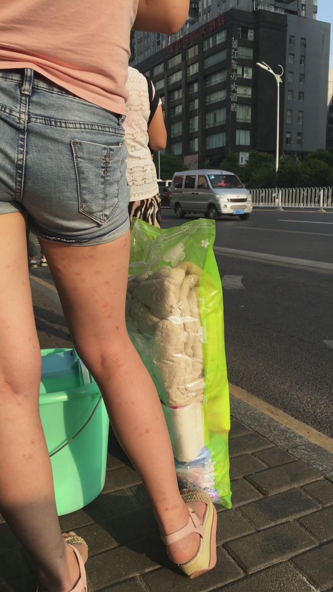 等公交车的热裤粉色T恤衫美女 编号4058