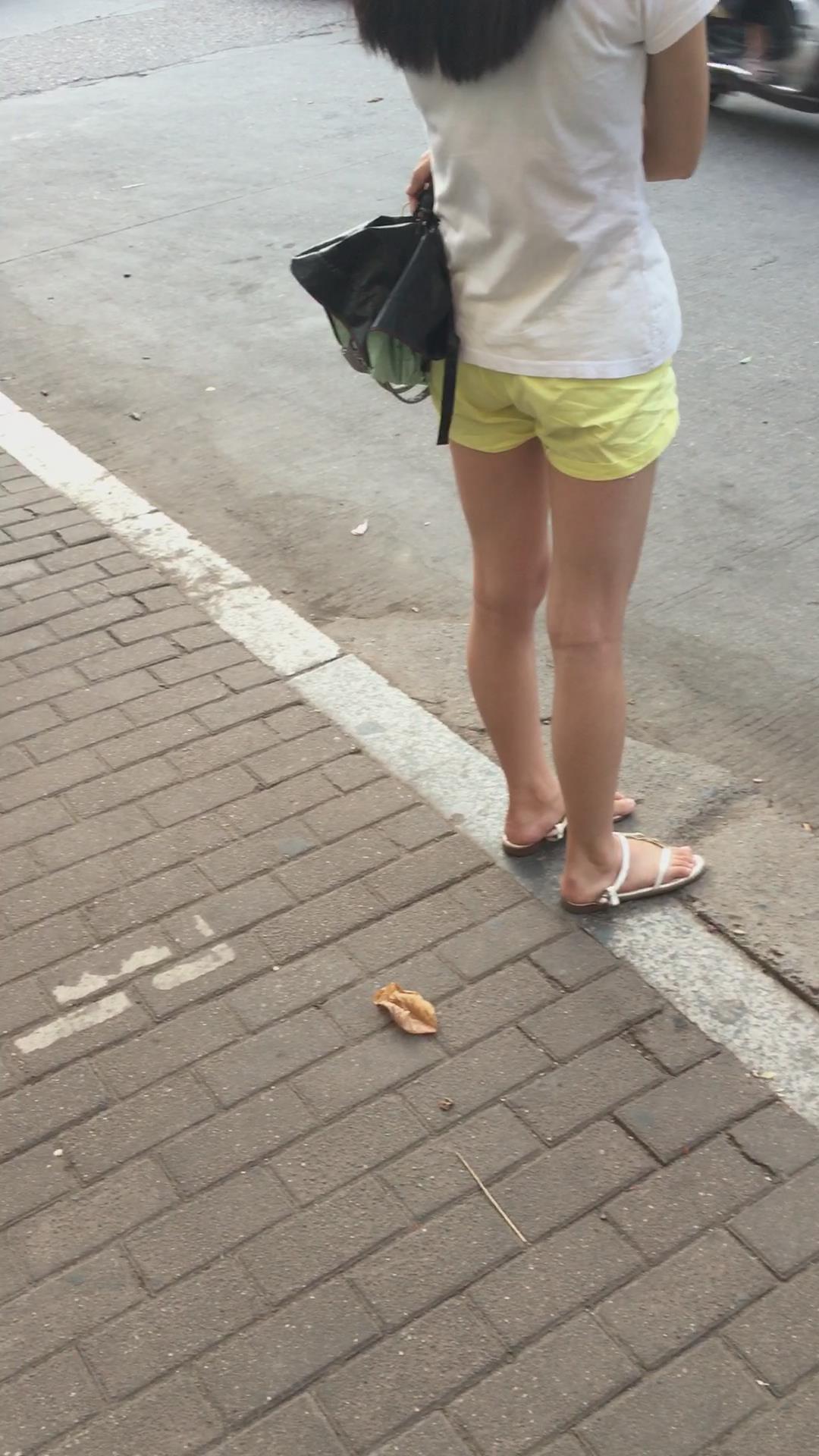 白色体恤黄色短裤娇小身材美眉 编号4071