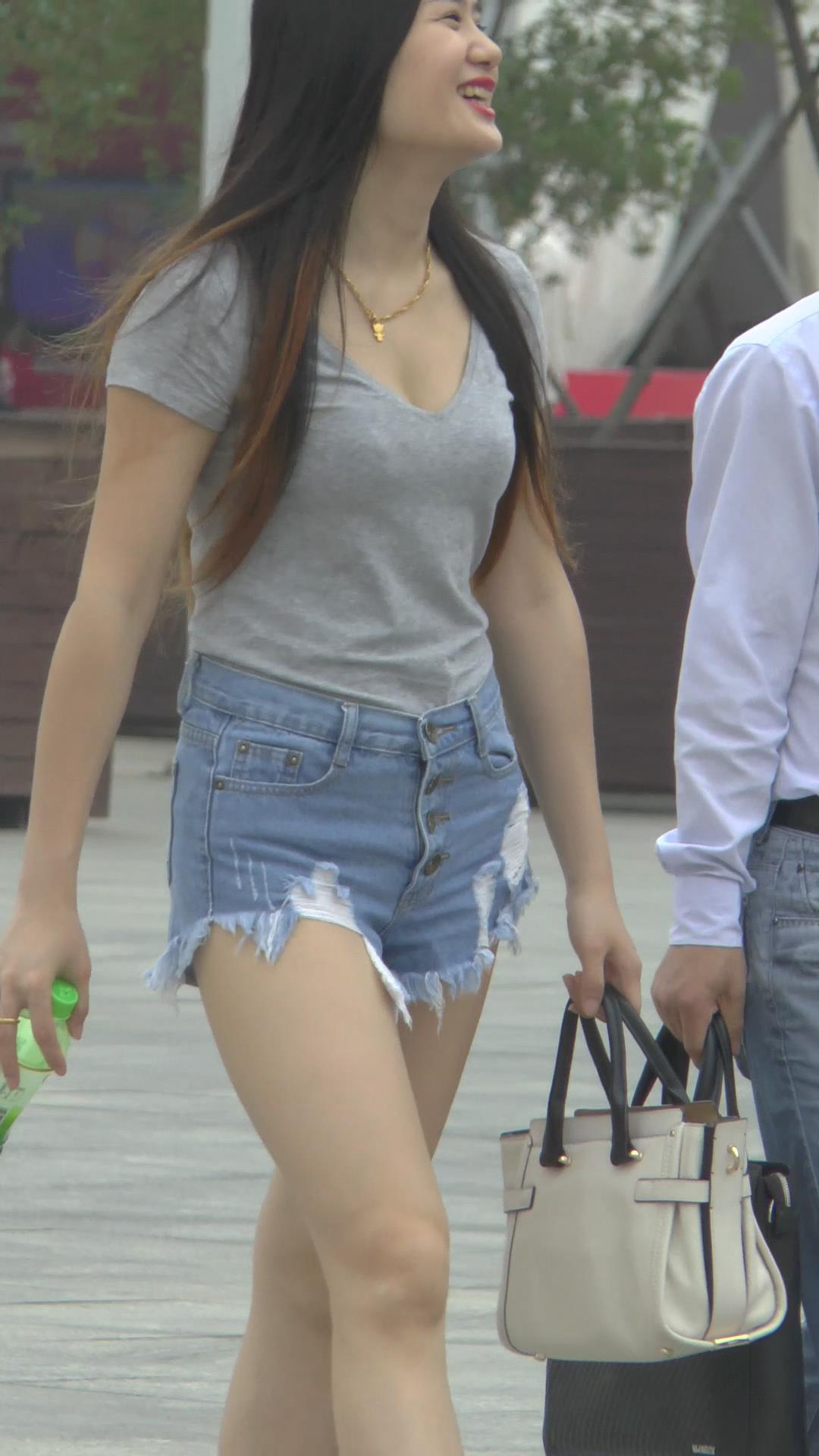 超性感大长腿热裤灰色T恤衫街拍美女视频 编号4087