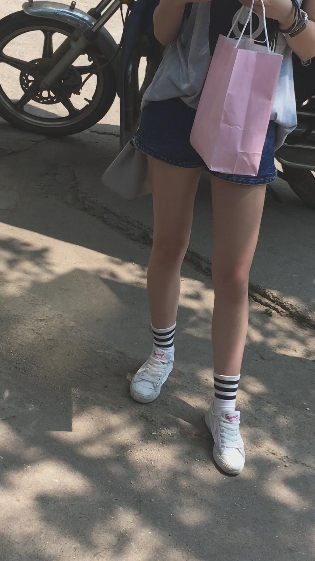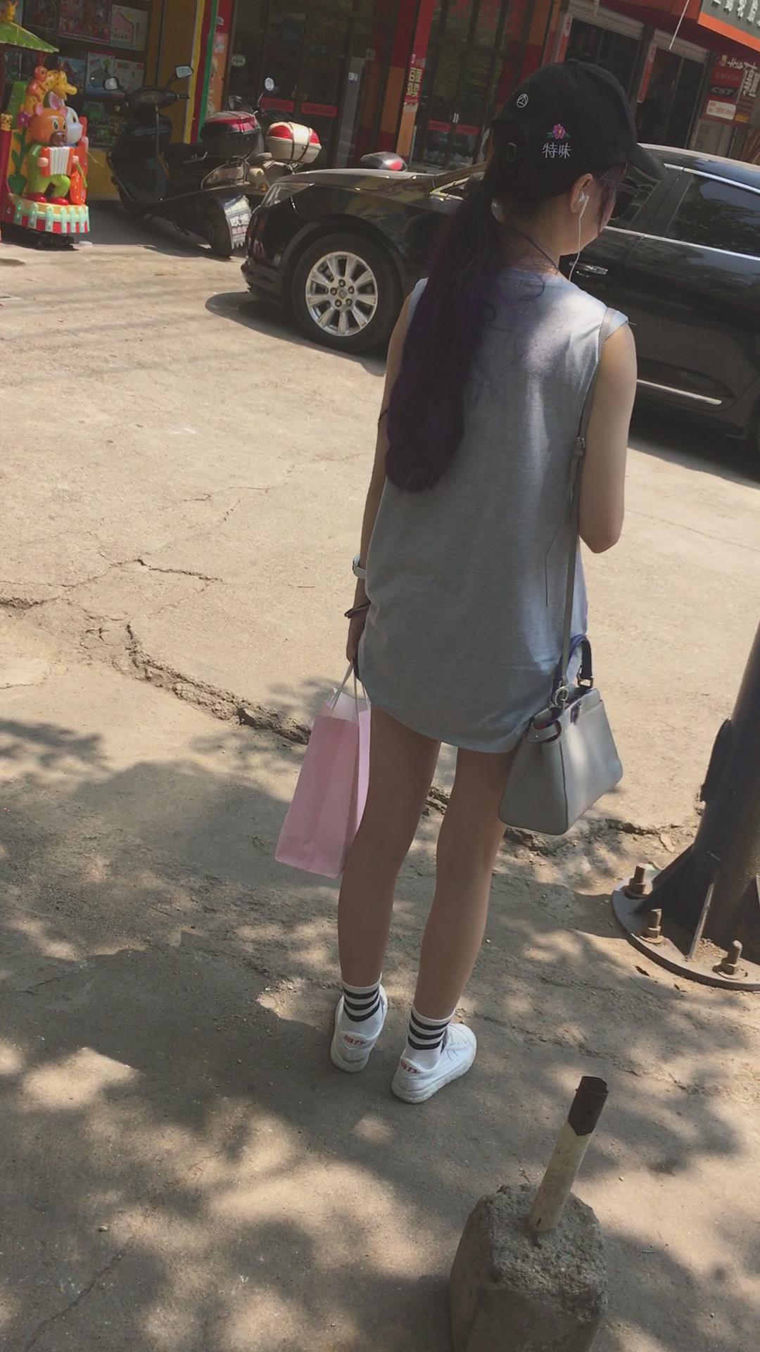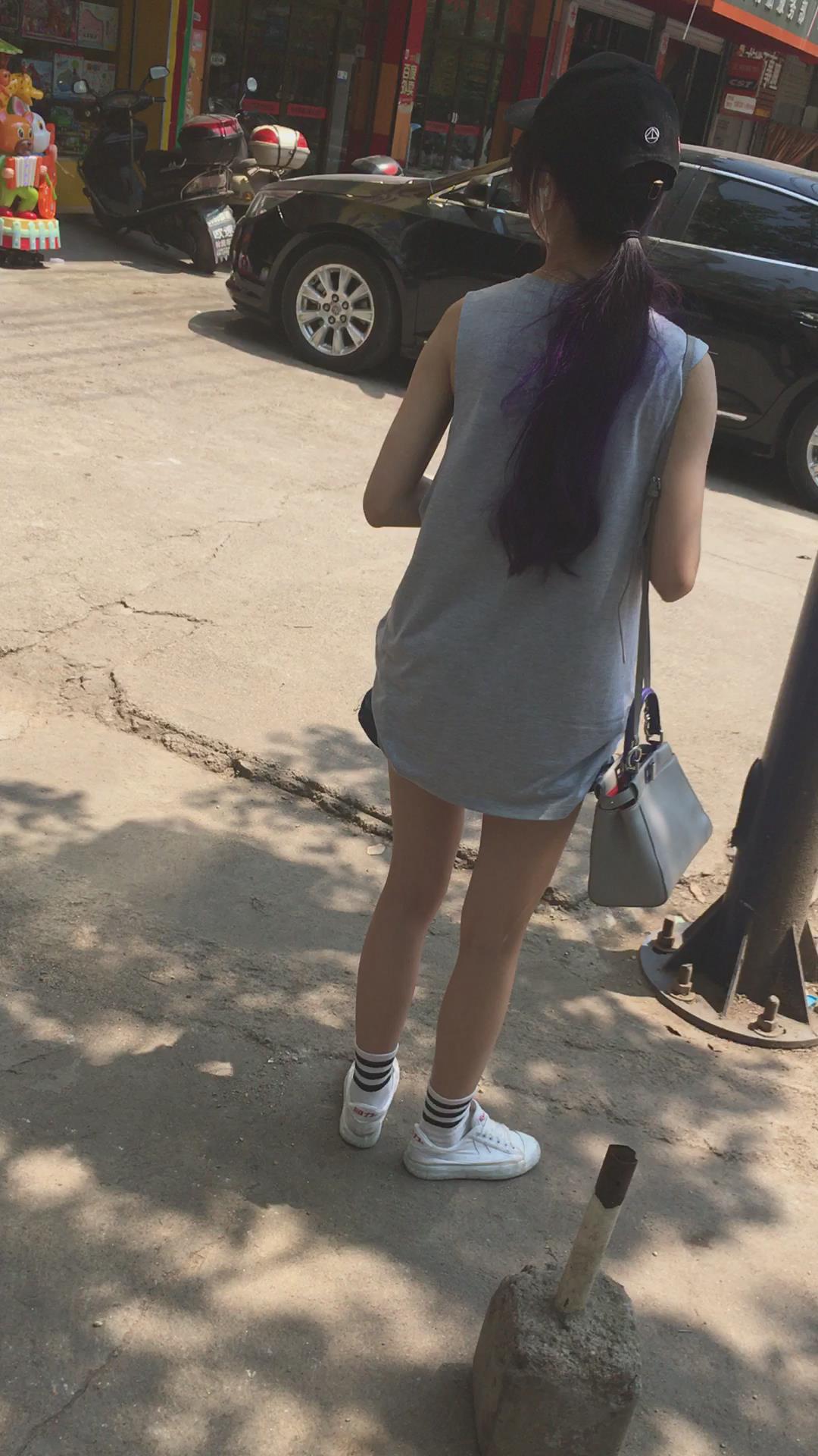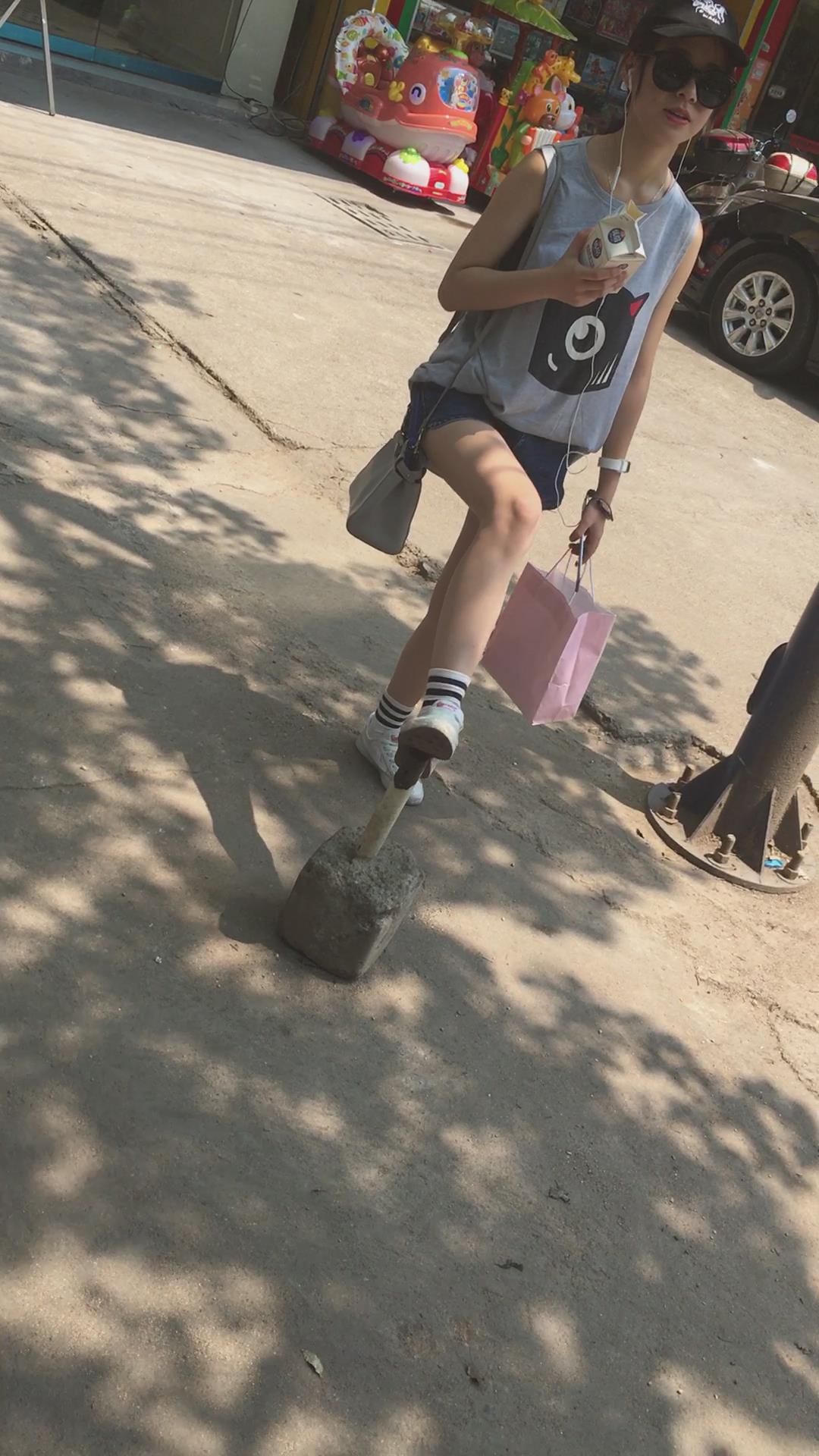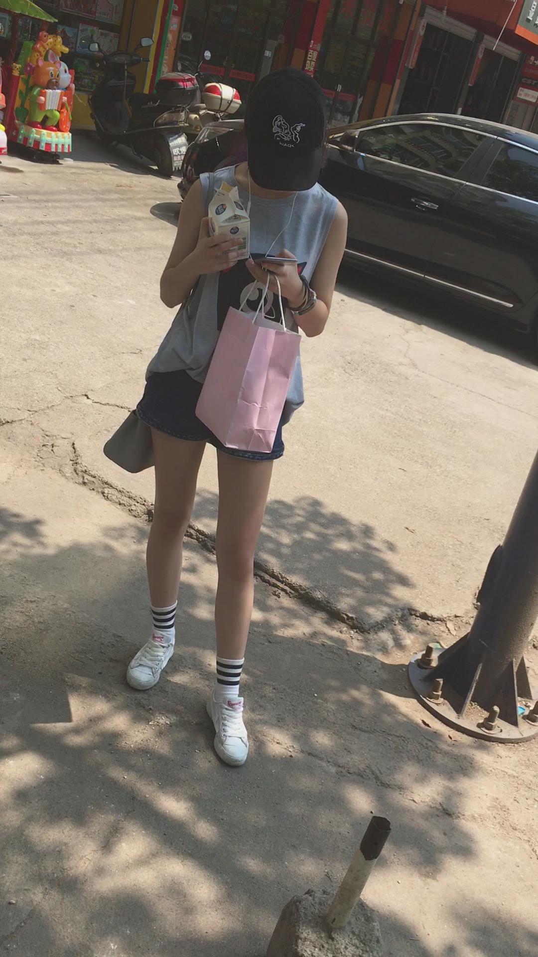 墨镜鸭舌帽牛仔热裤娇小身材街拍小美女 编号4095
