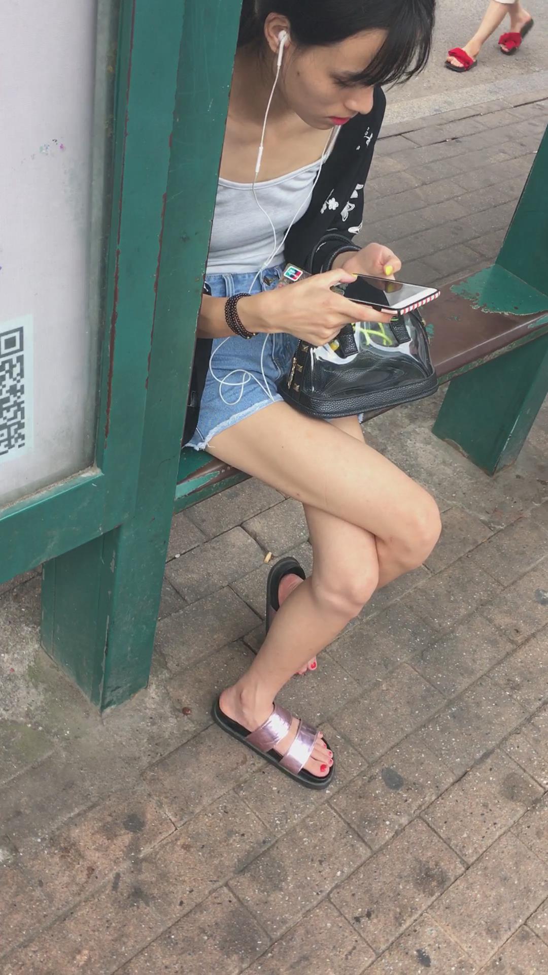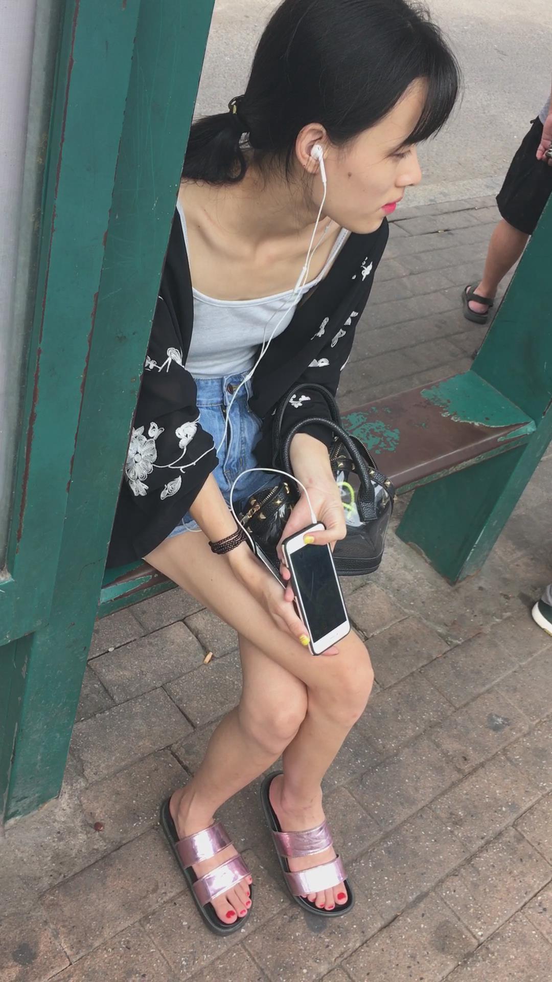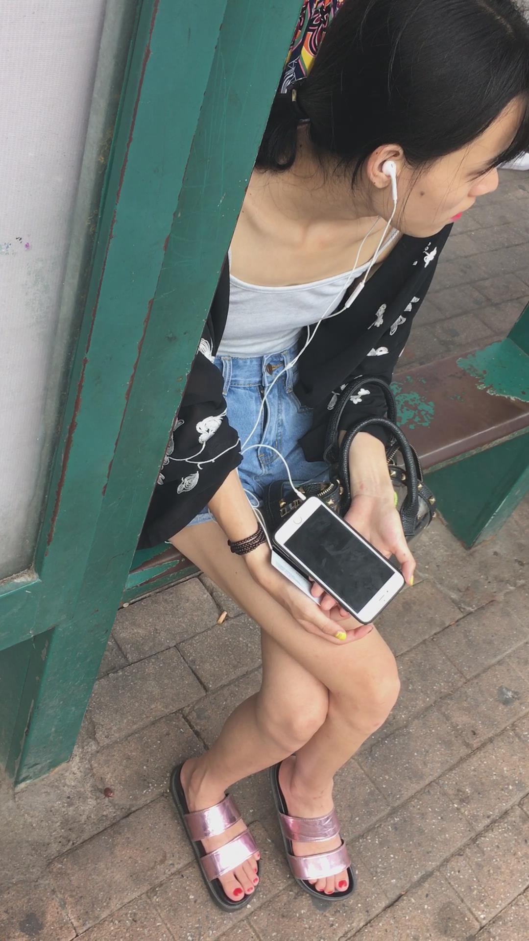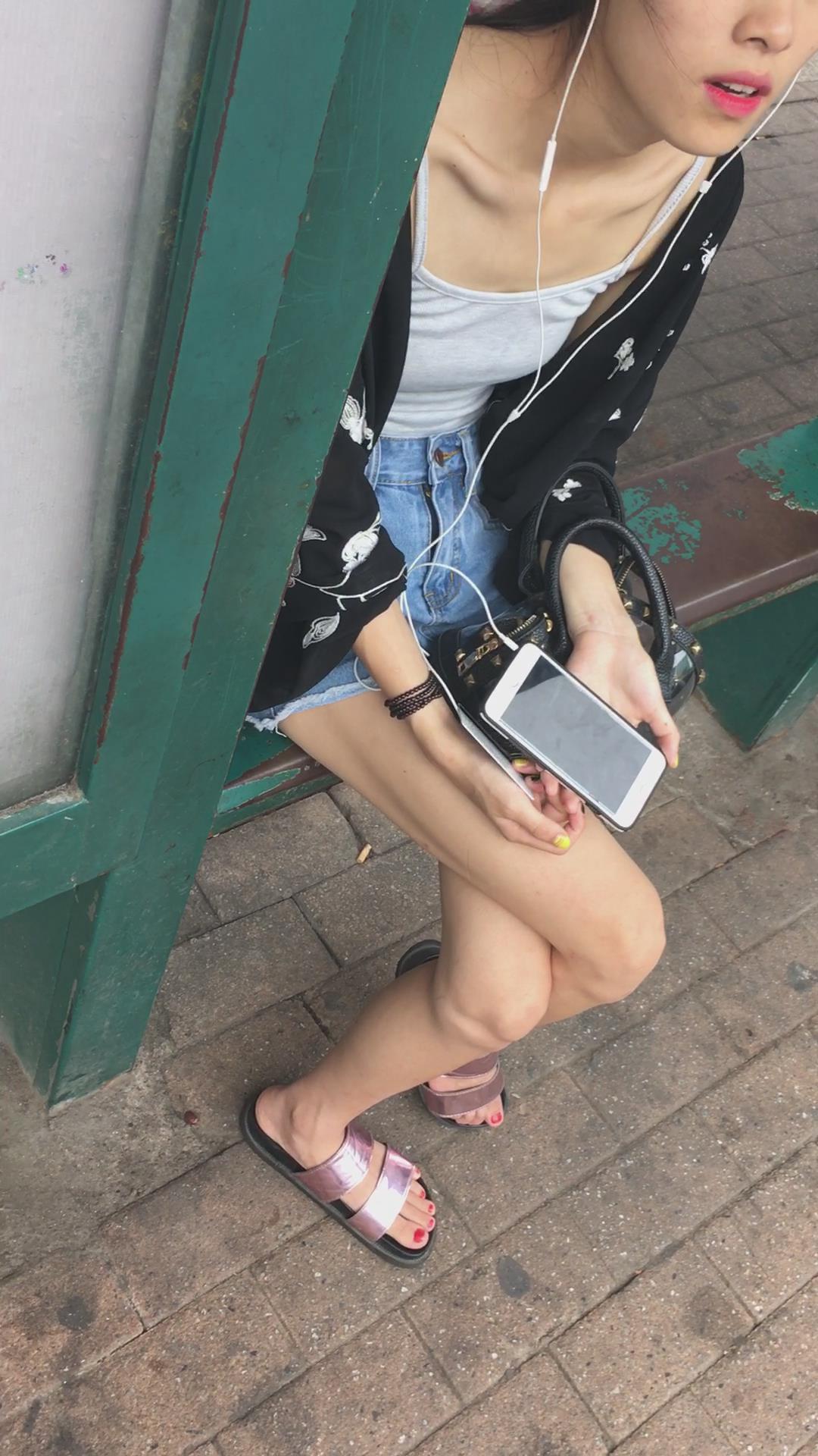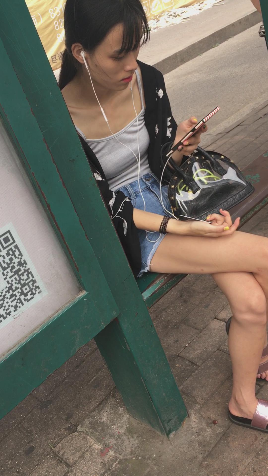 等公交车偶遇平胸飞机场牛仔热裤美女 编号4097