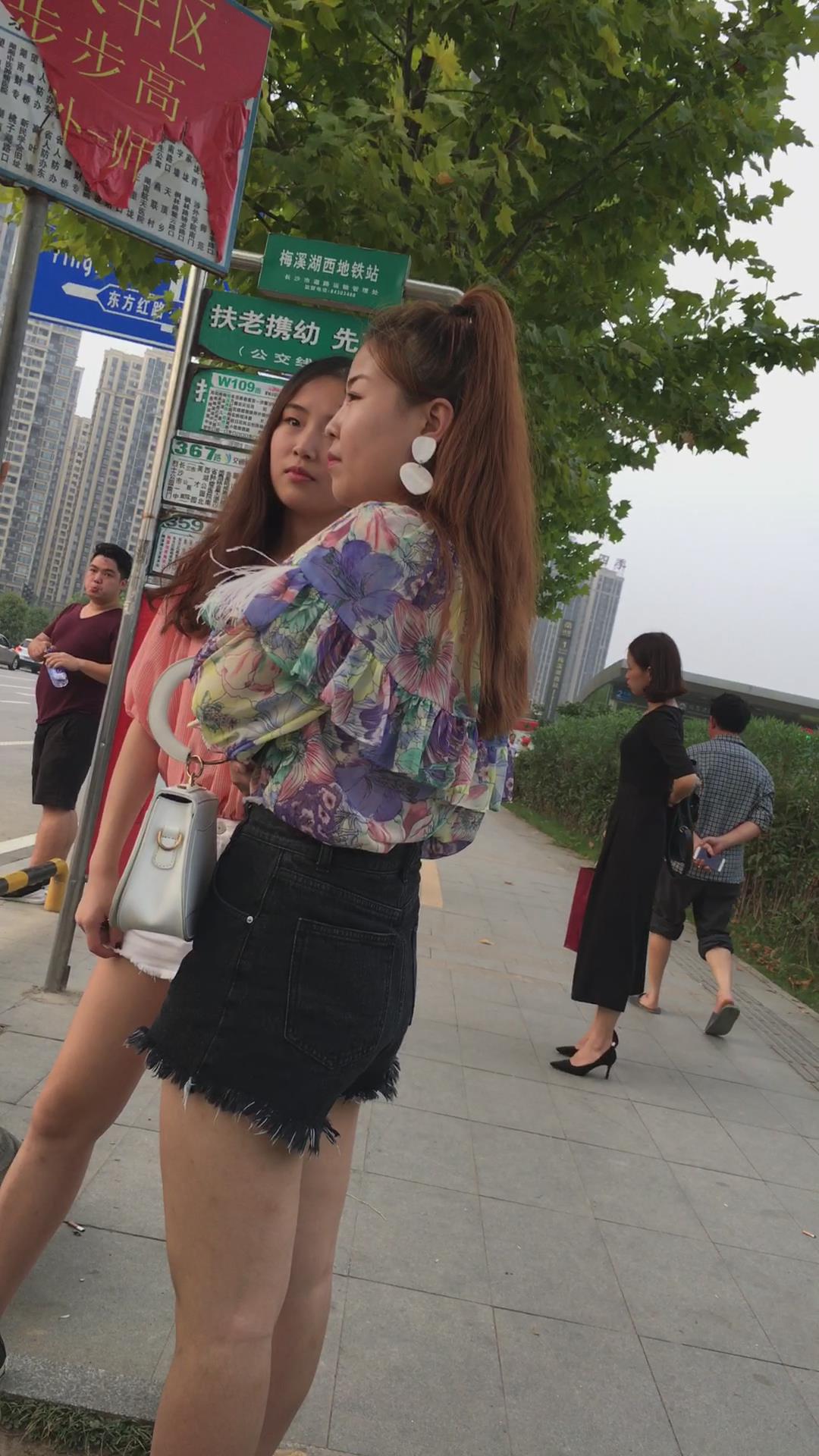 街拍粉衣热裤美颜漂亮小姐姐 编号4123