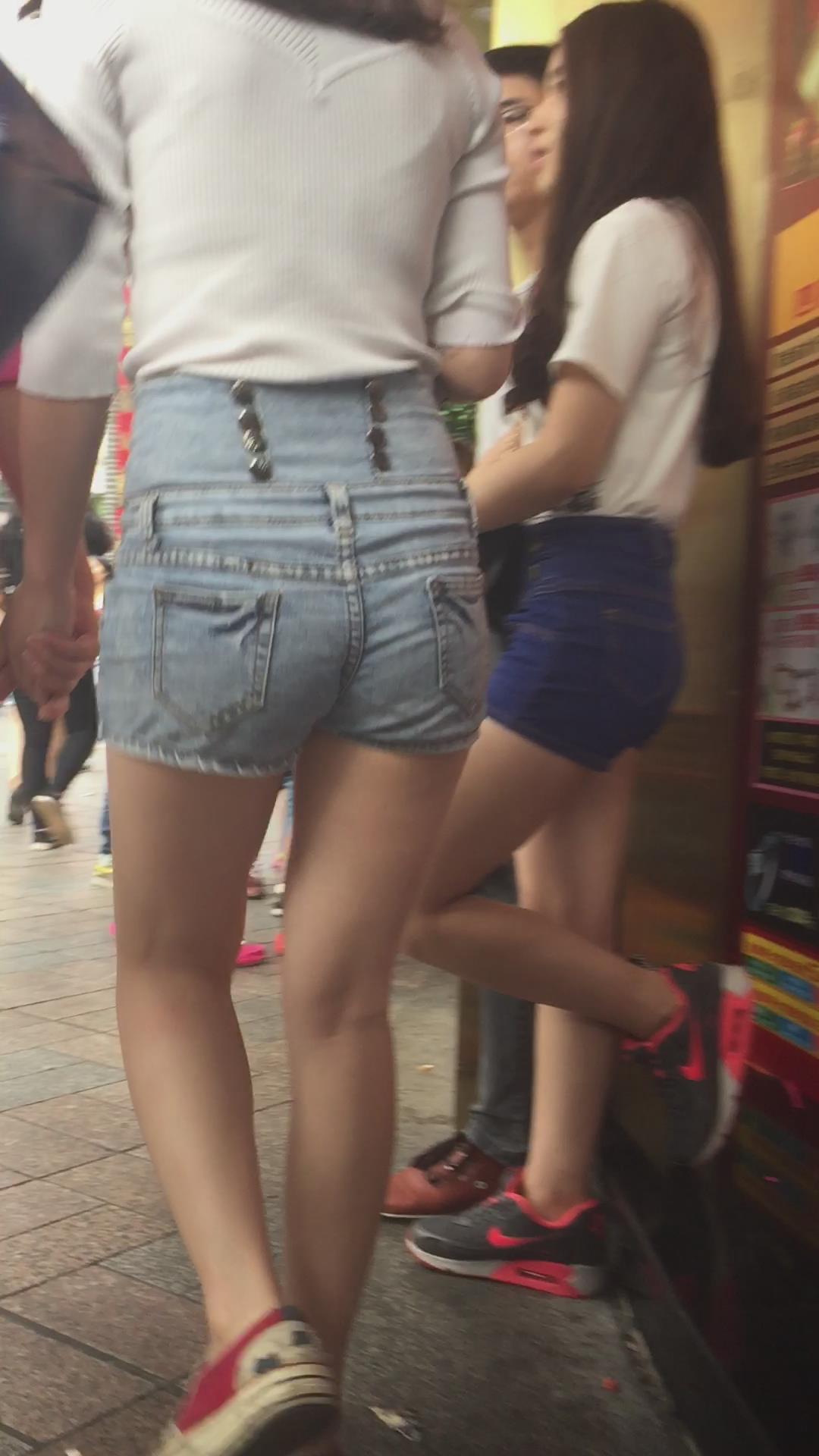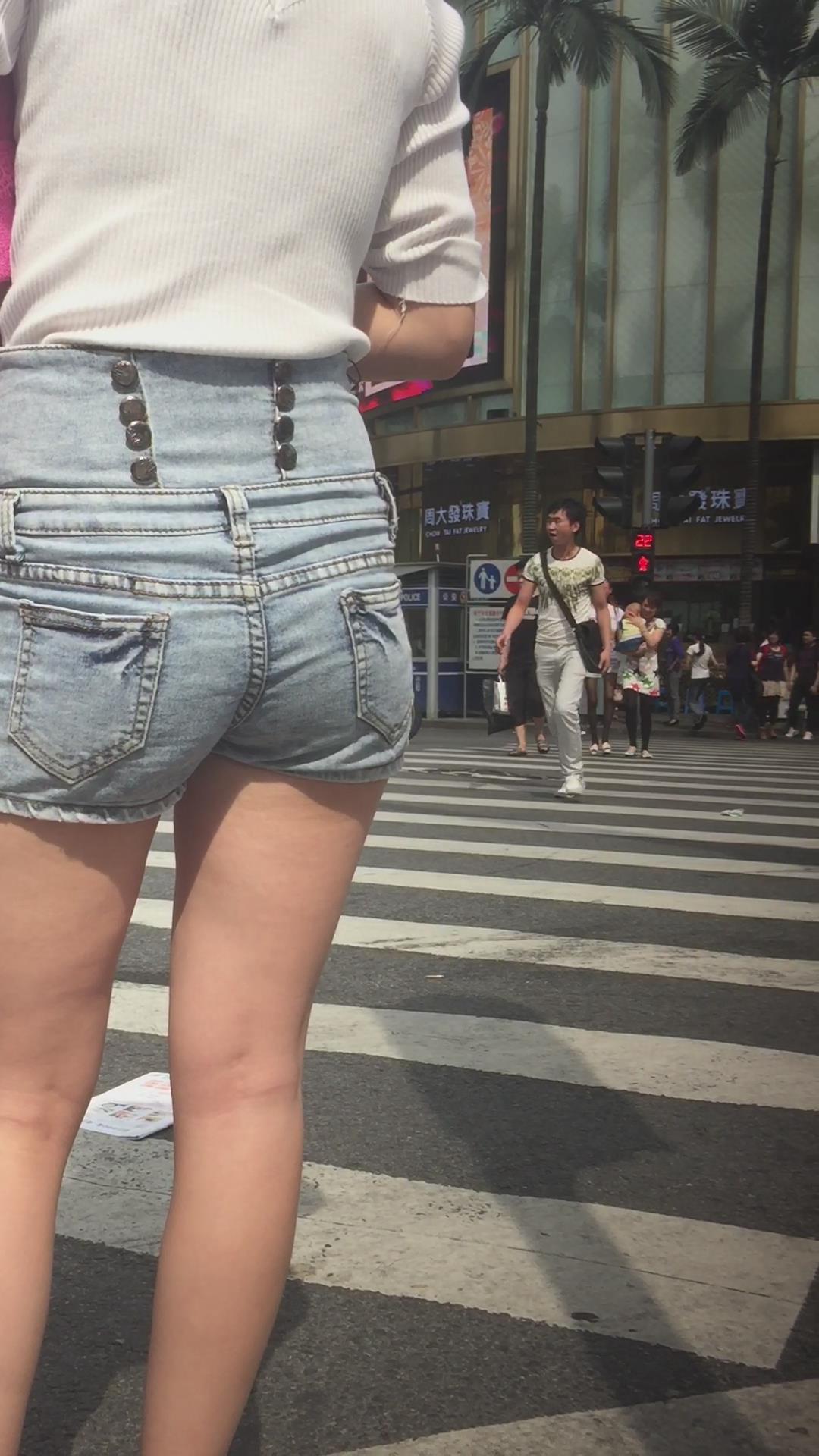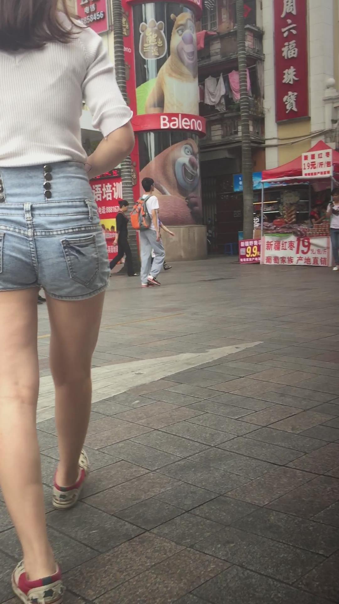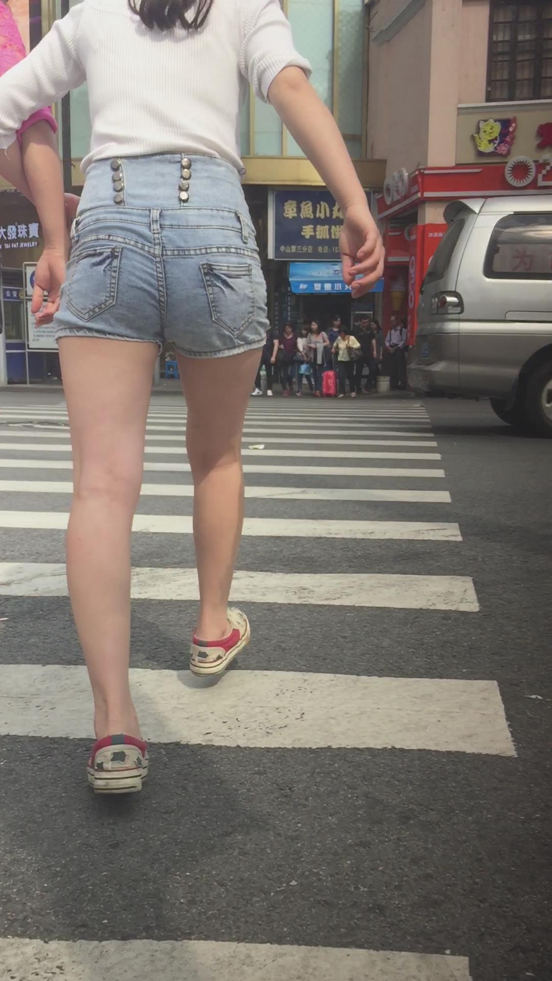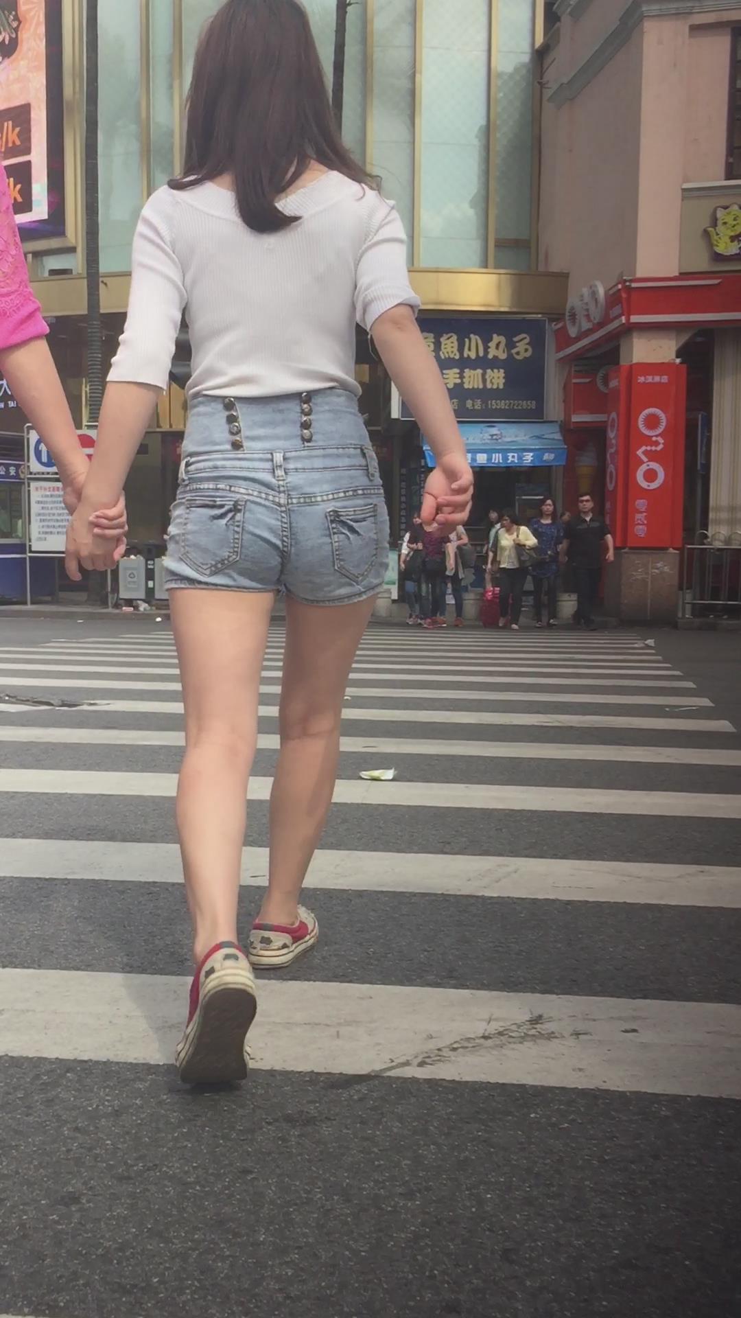 街拍高腰热裤白皙大腿青春美眉 编号4548