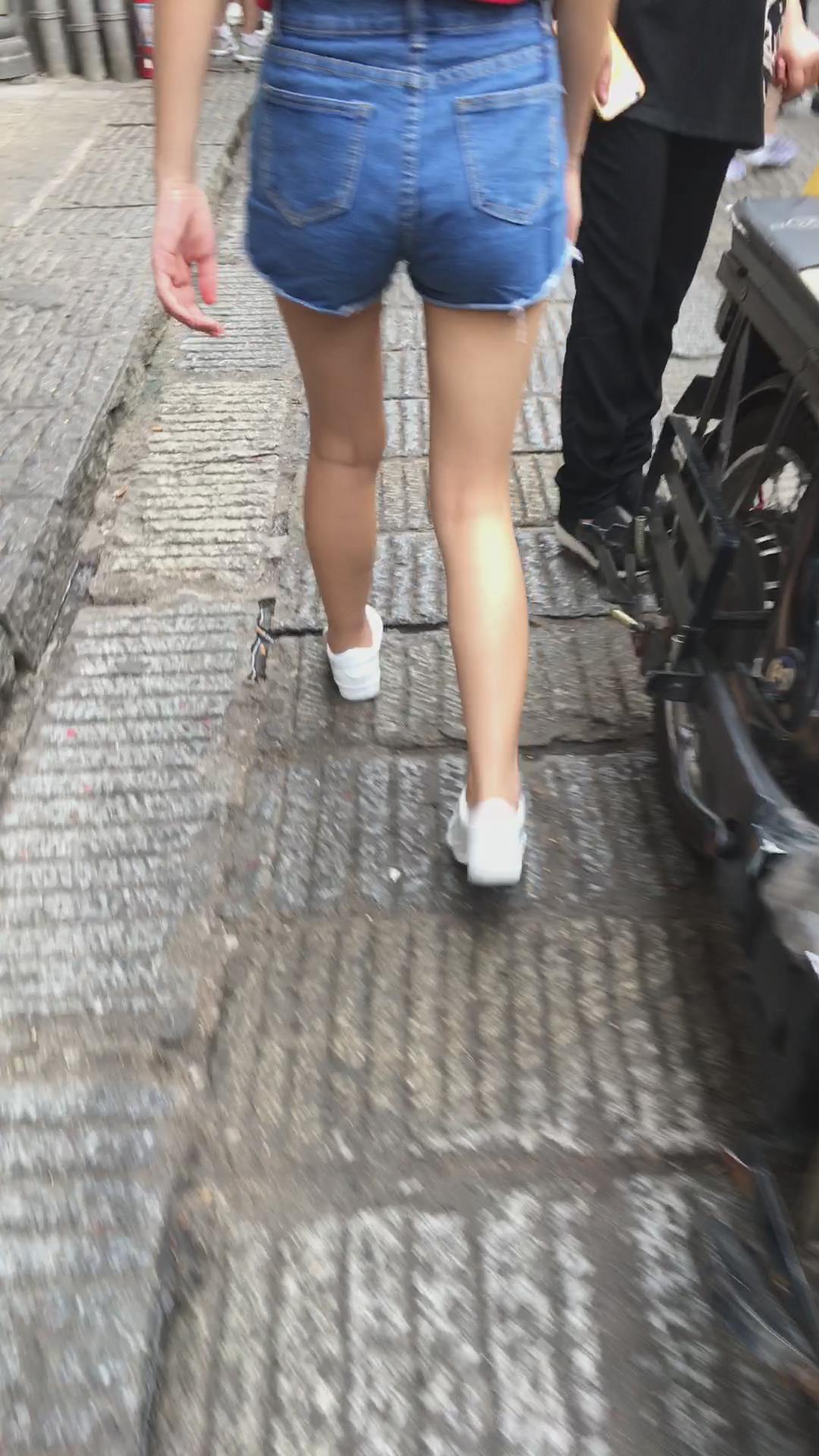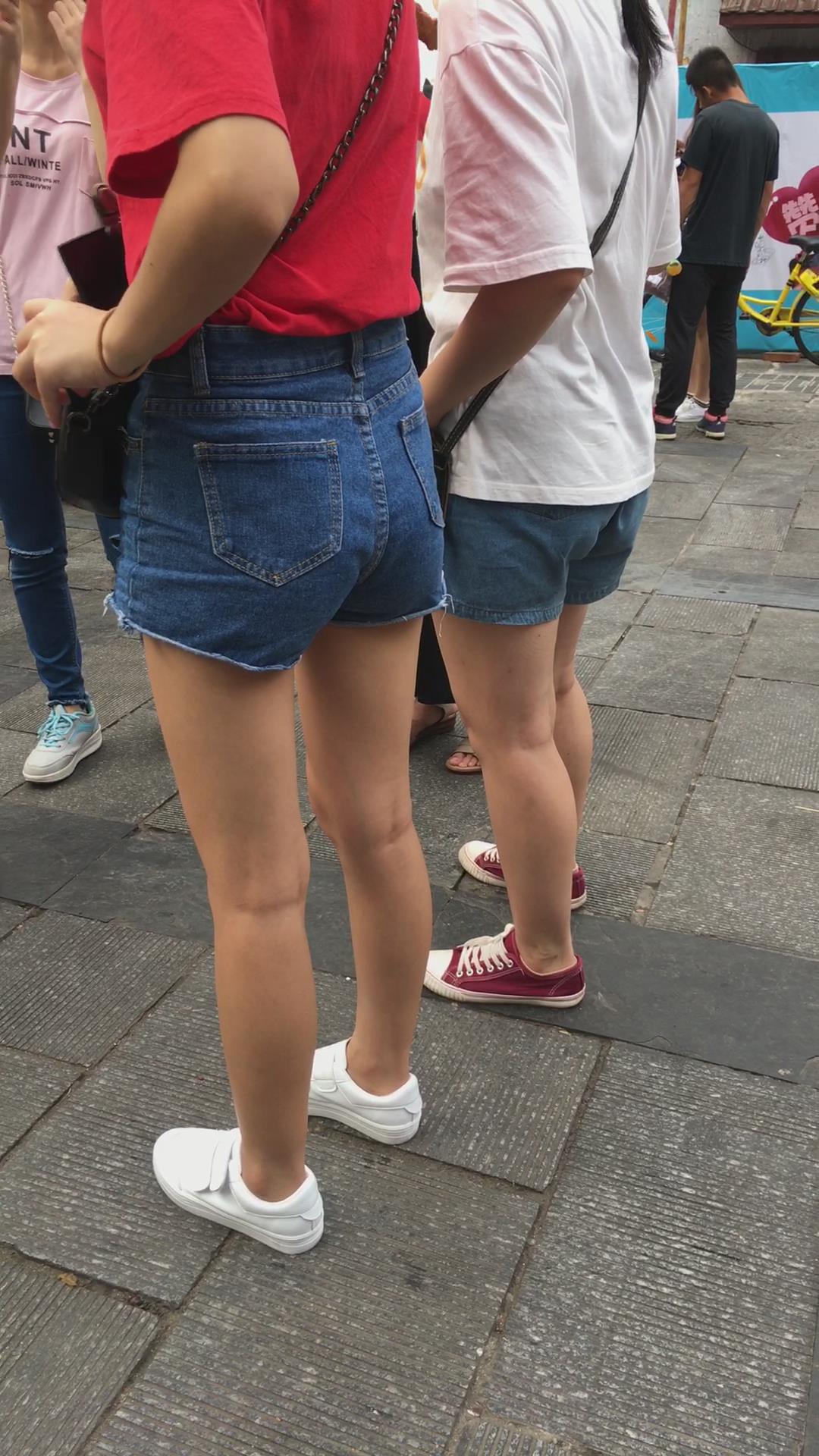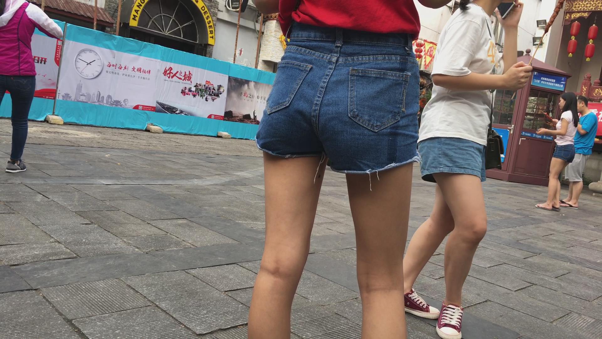 街拍红衣热裤小清纯美女 编号4131
