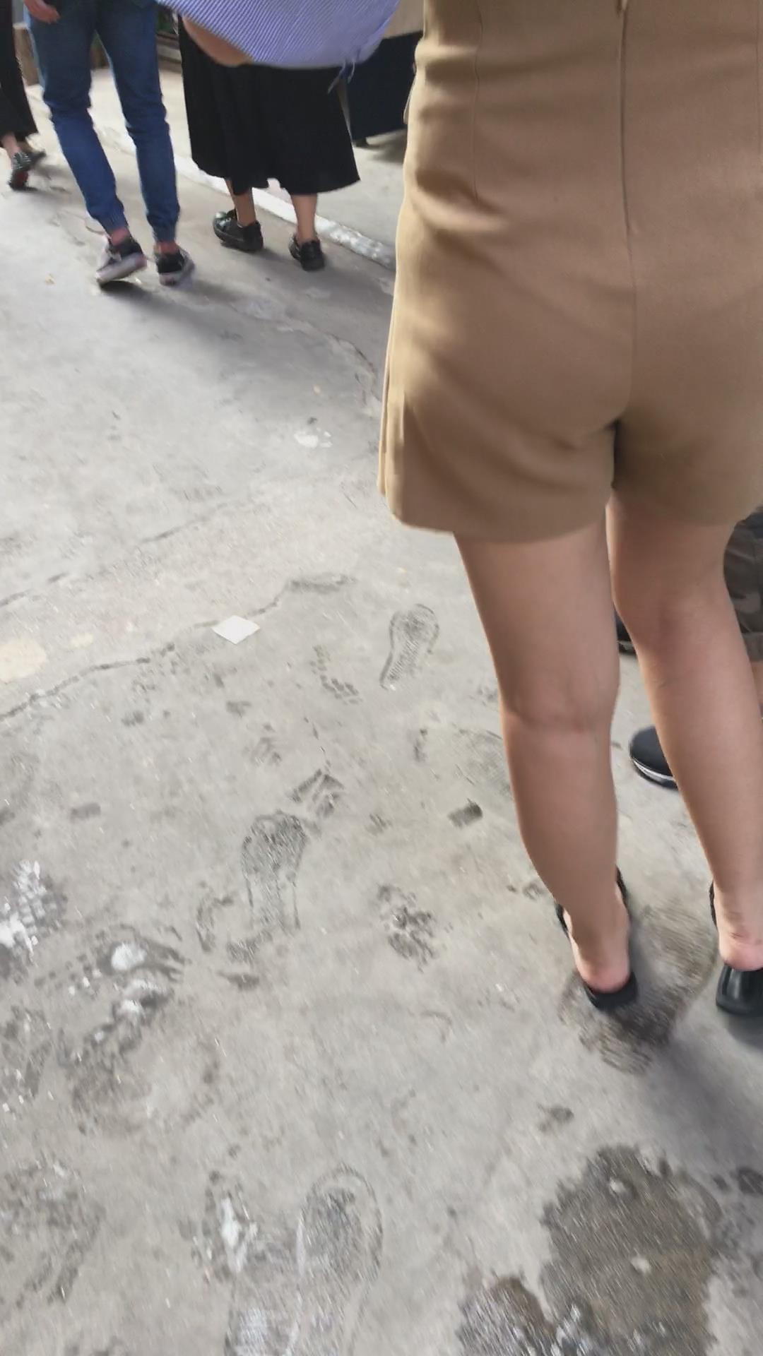 街拍极品美臀吊带裤马尾辫美女 编号4135