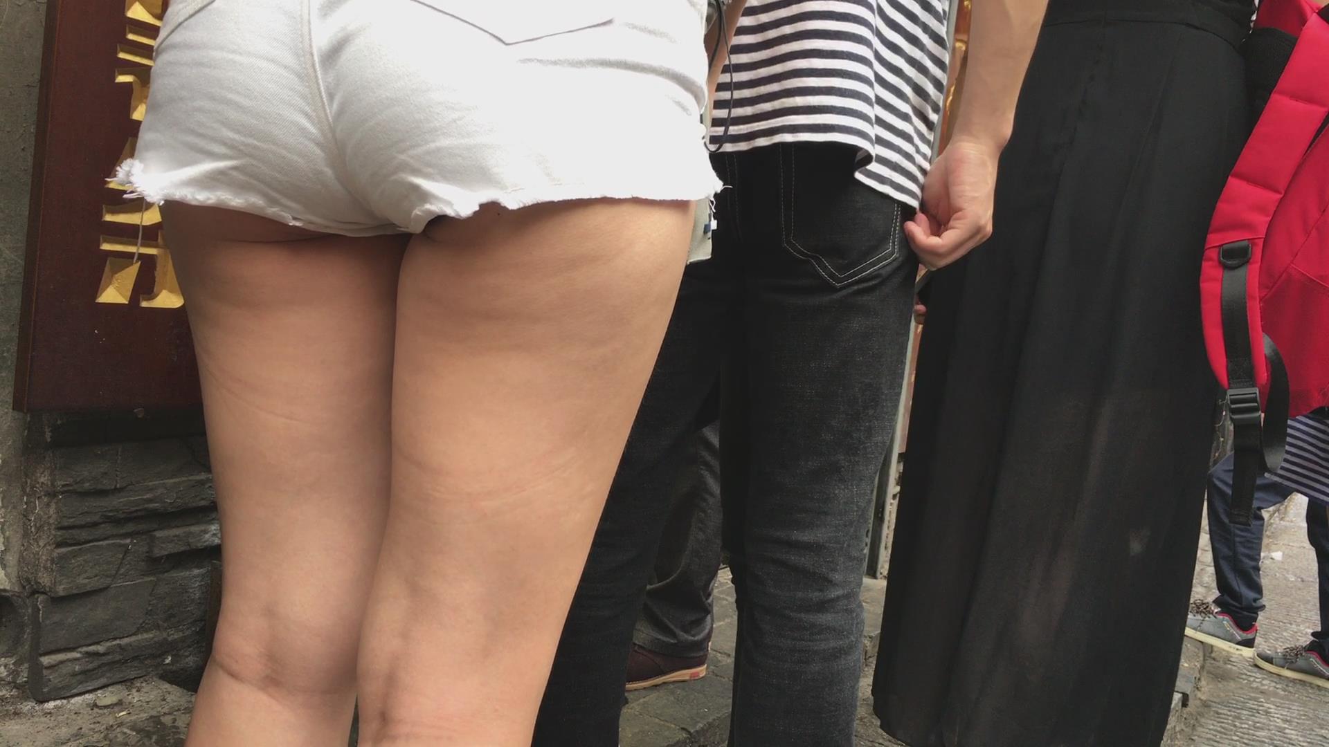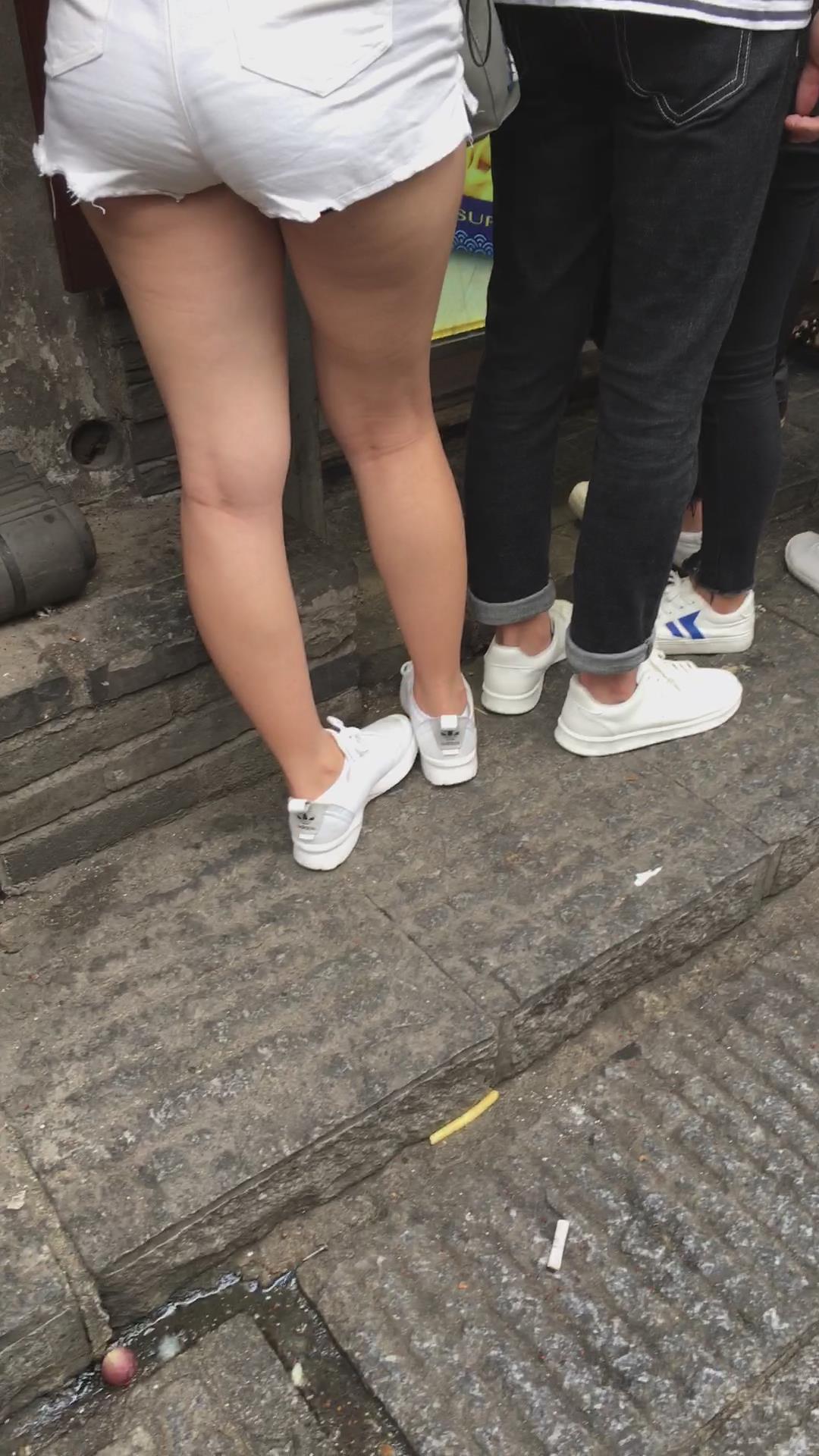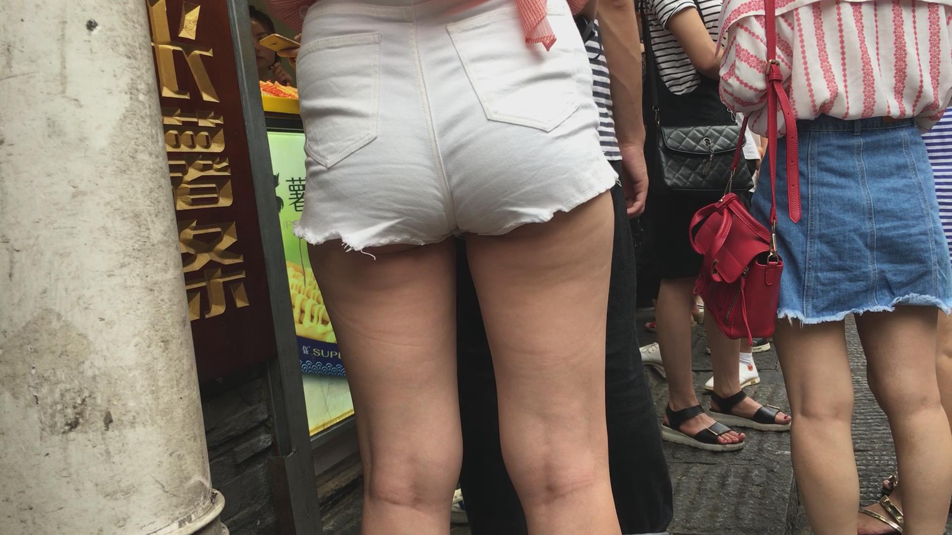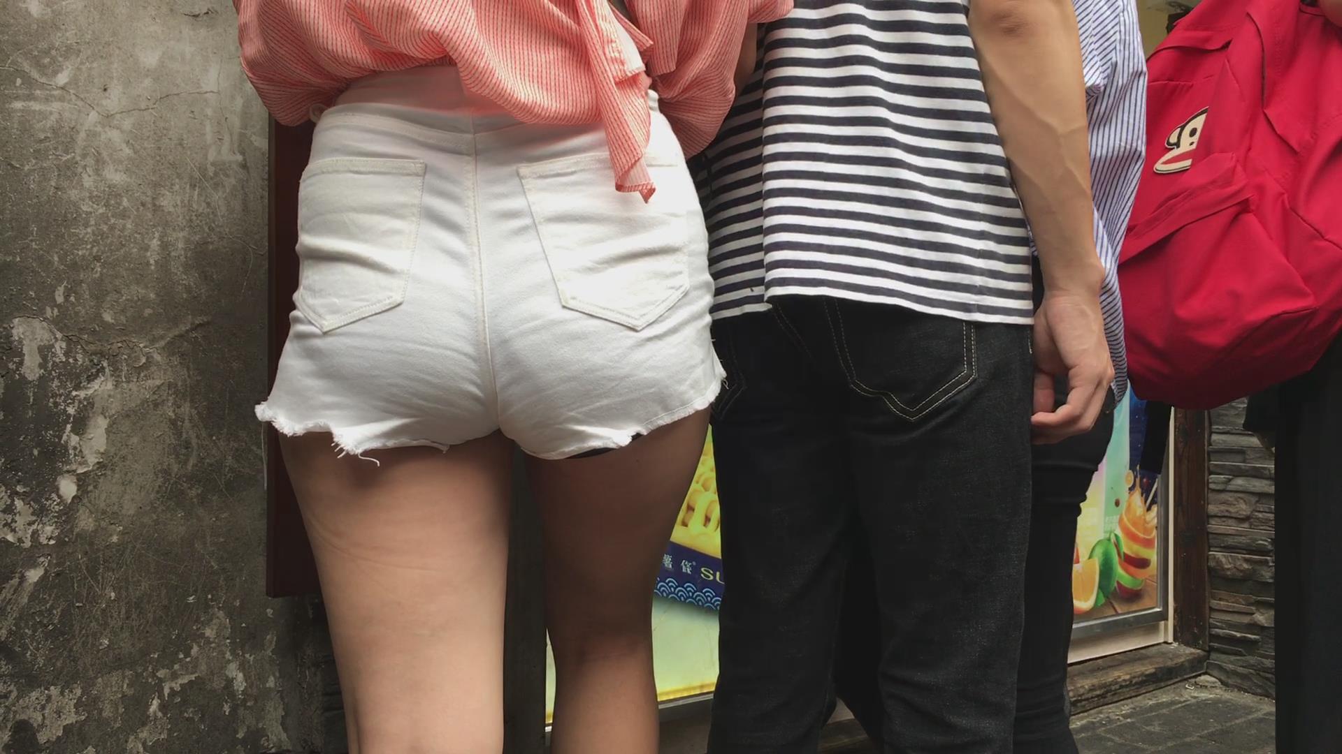街拍紧身热裤苹果臀美眉 编号4158