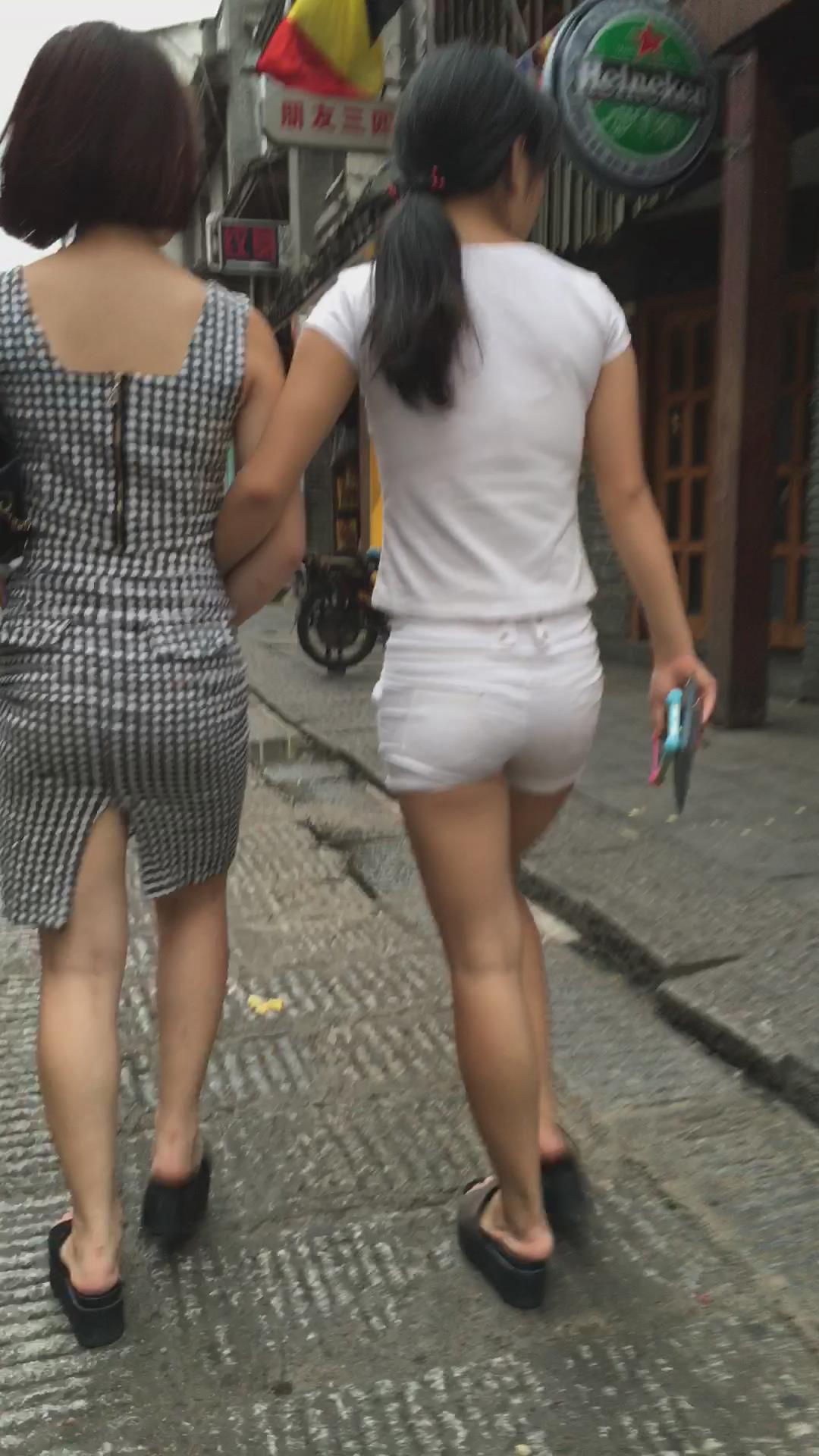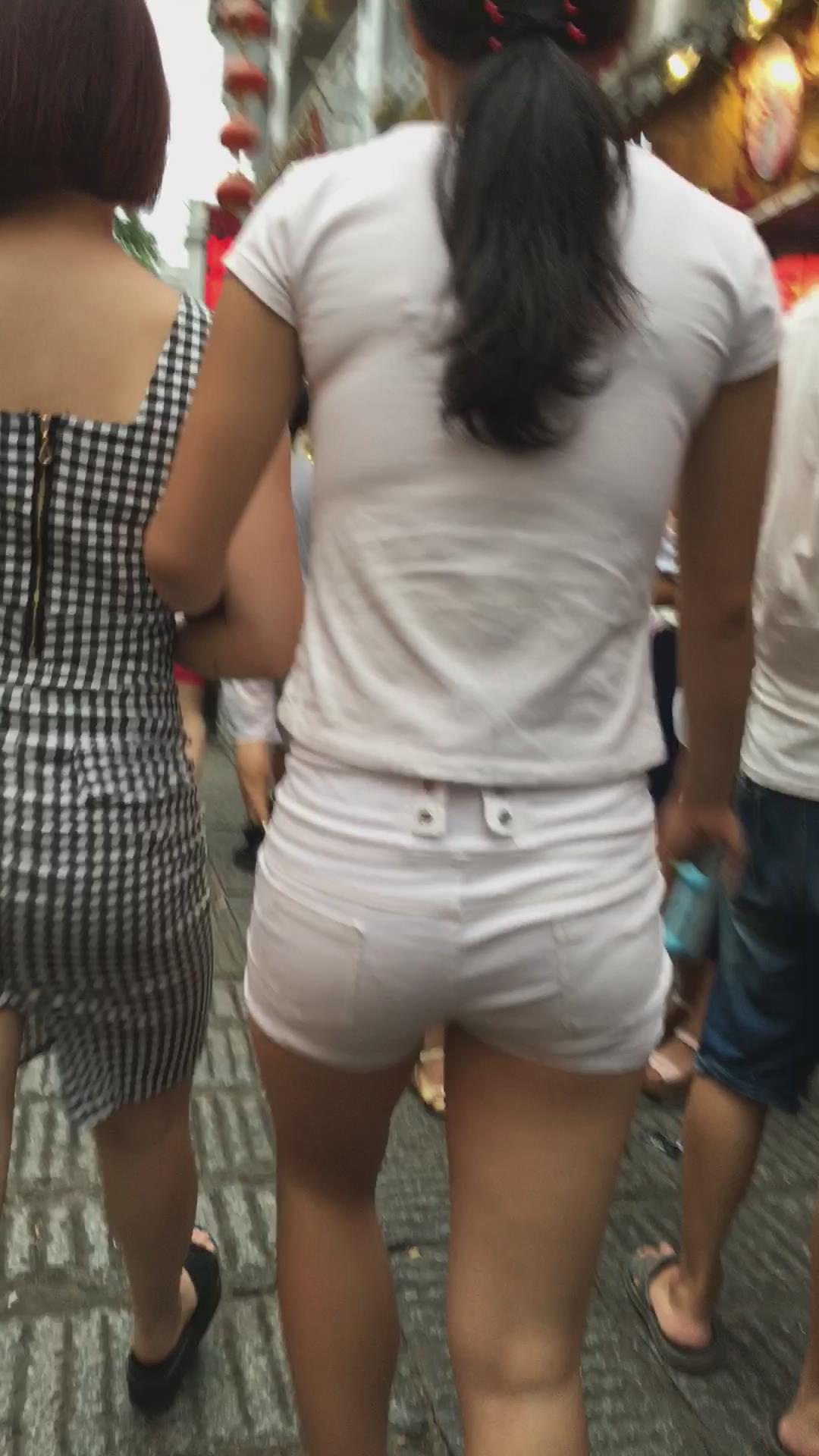 街拍白短热裤圆臀美眉 编号4170