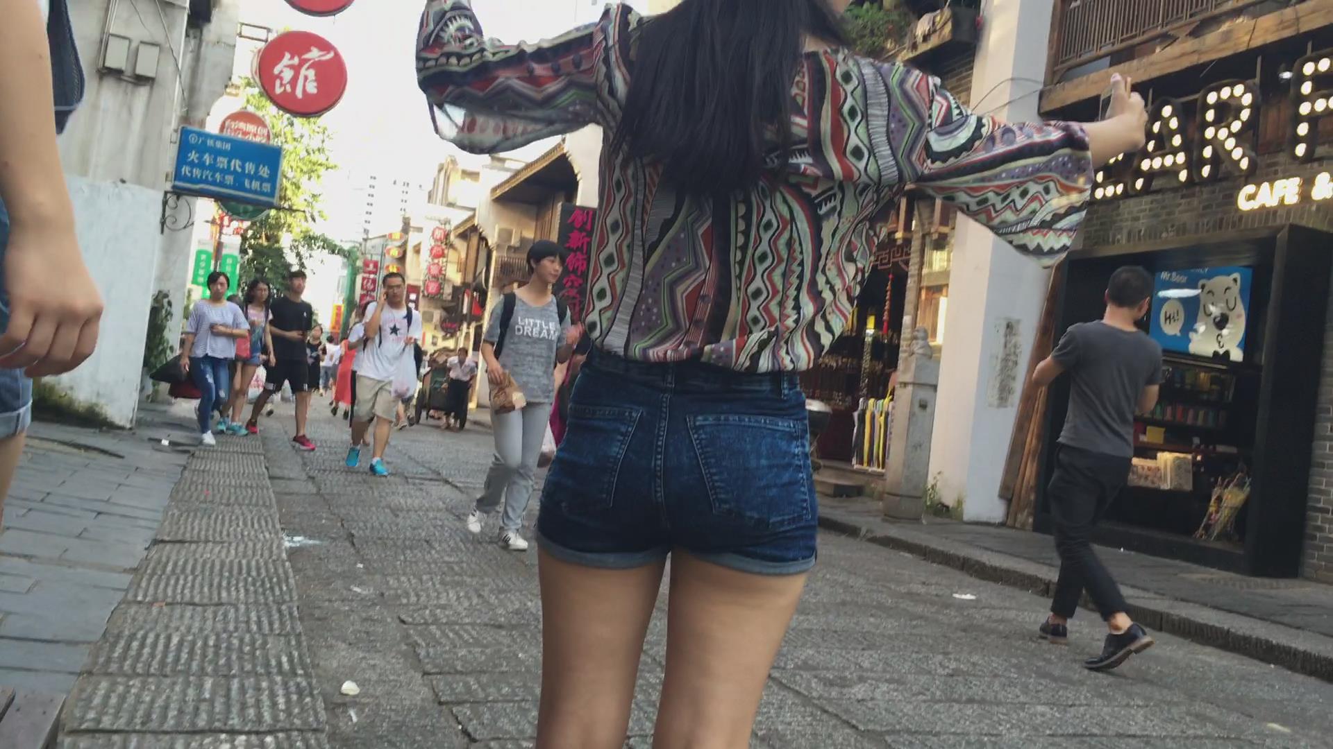 圆润饱满紧致的牛仔热裤复古衬衫美女 编号4191