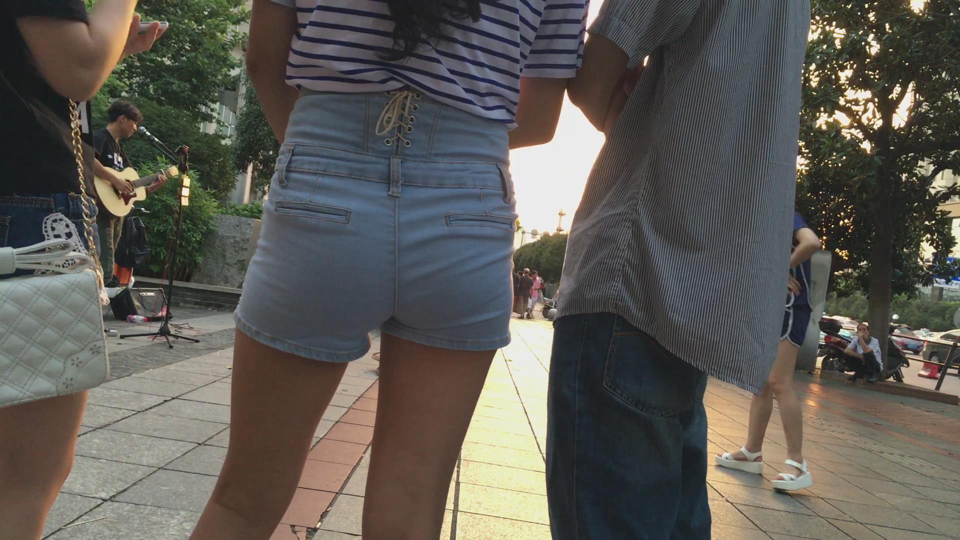 街拍路边等车的极品高腰热裤翘臀女孩! 编号4211