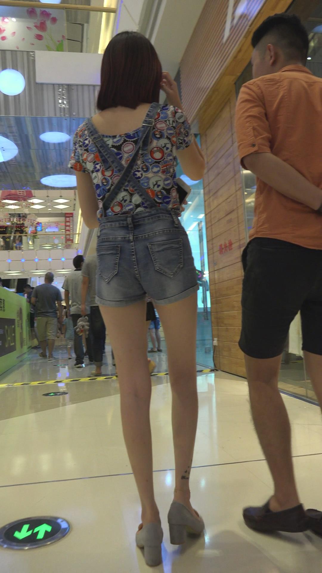 性感背带牛仔热裤好身材美女 编号4259