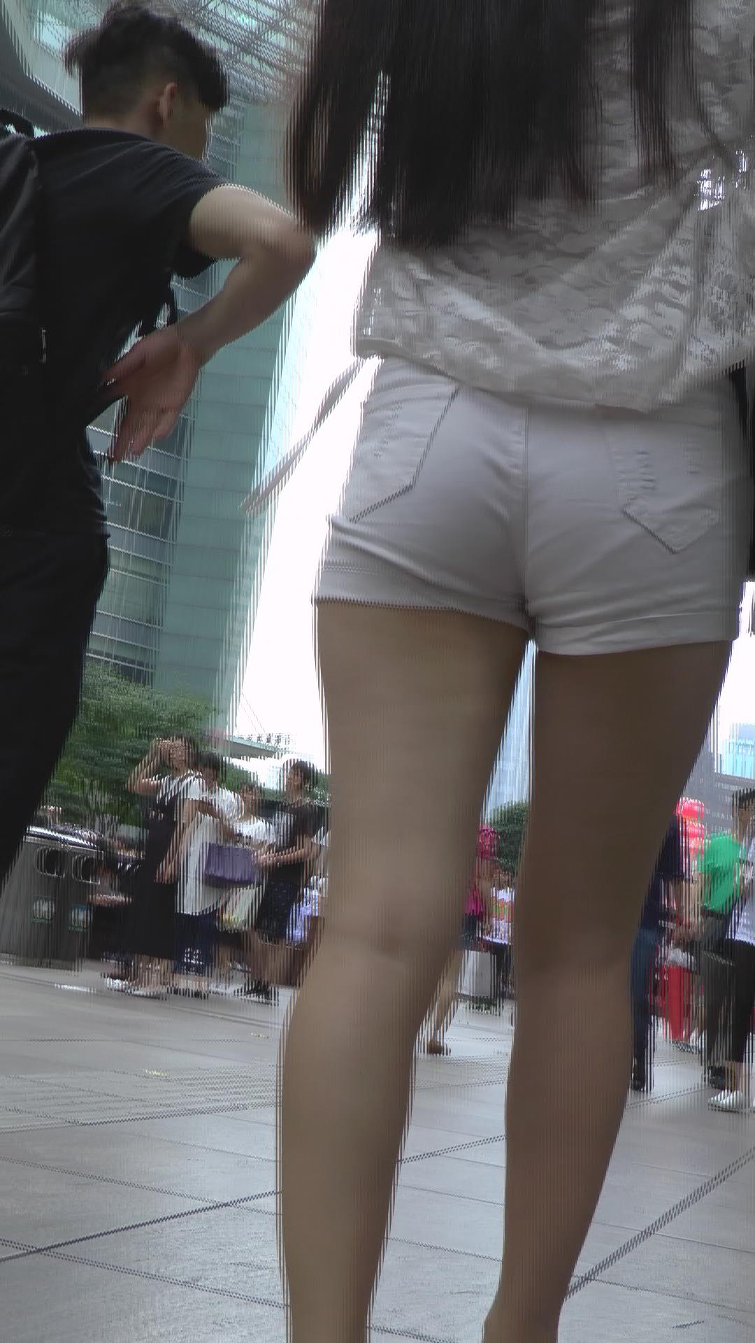 街拍清新白短热裤美女 编号4262