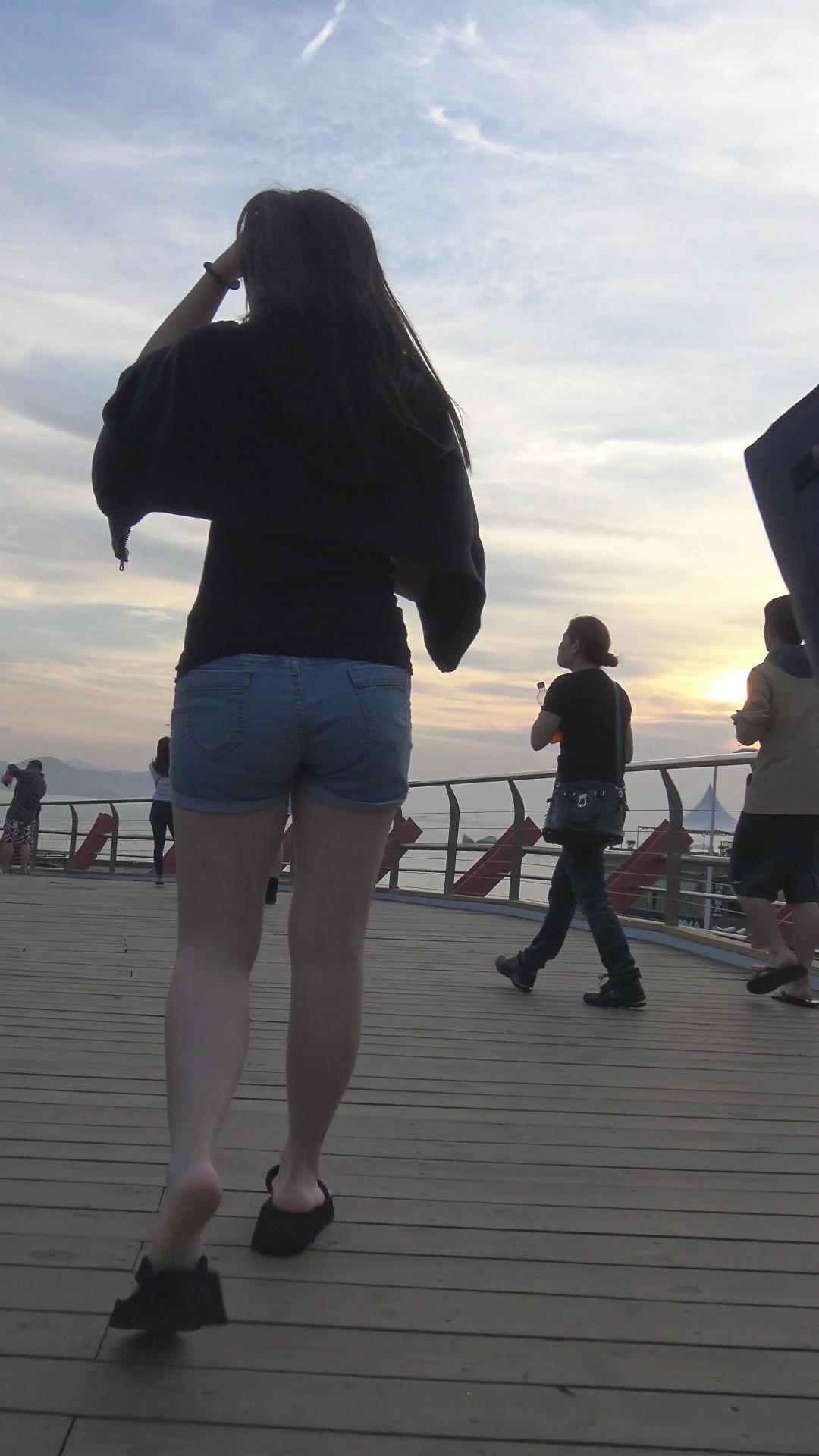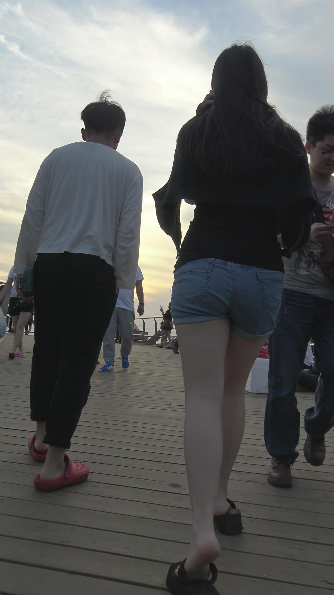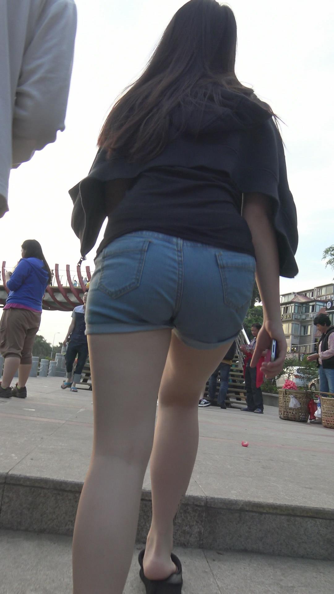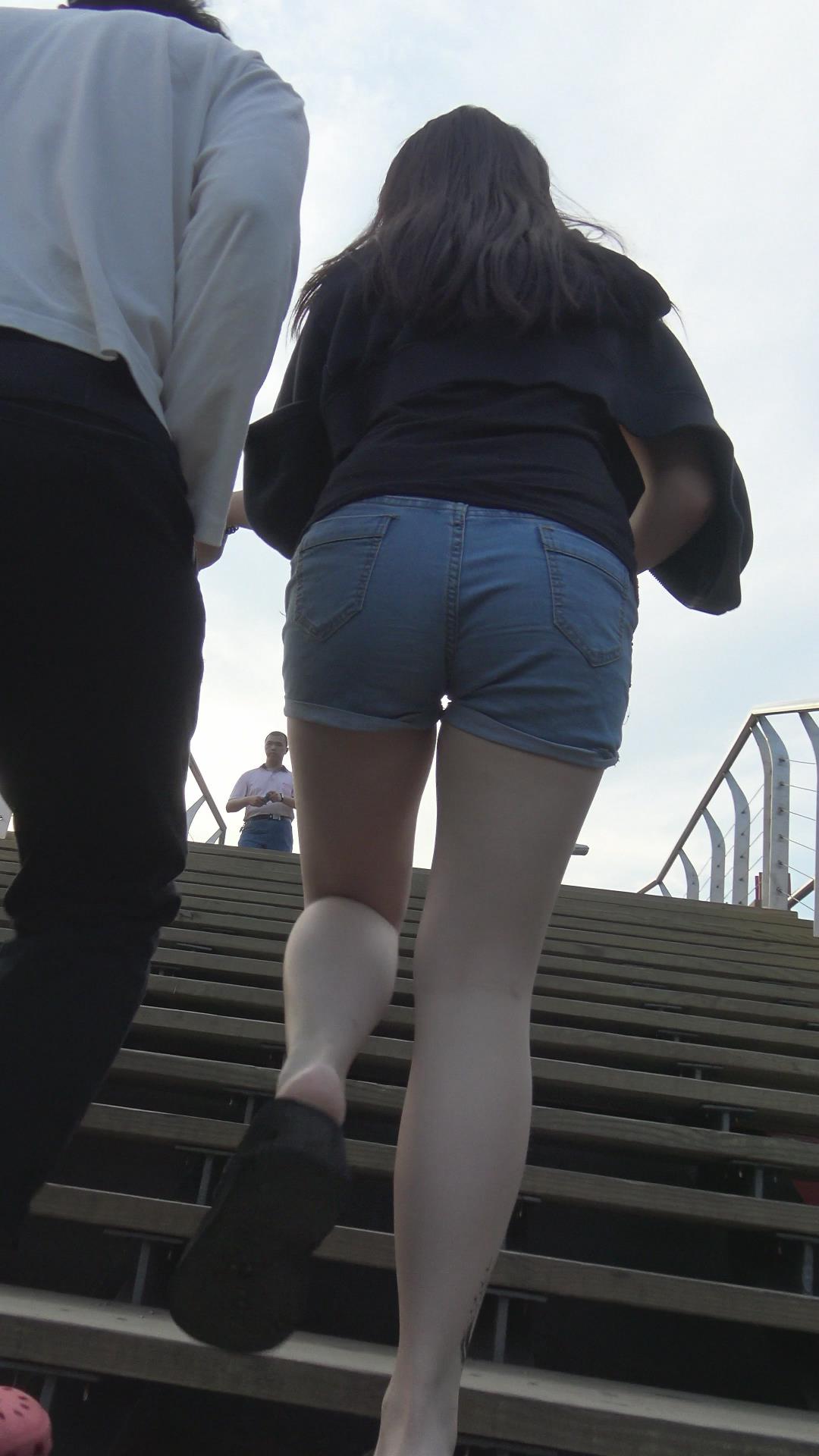 跟拍美臀牛仔热裤MM,过天桥撅起的PP简直无法忍受 编号4293