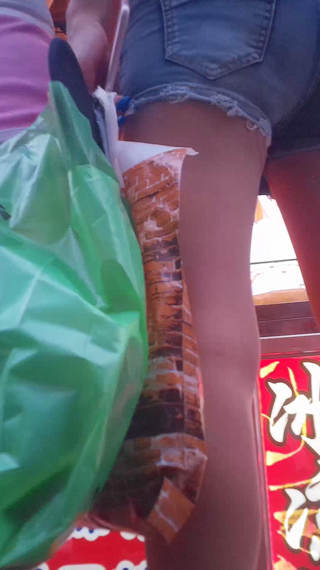 粉色超短热裤大屁股美女姐妹花买小吃,PP诱惑 编号4296