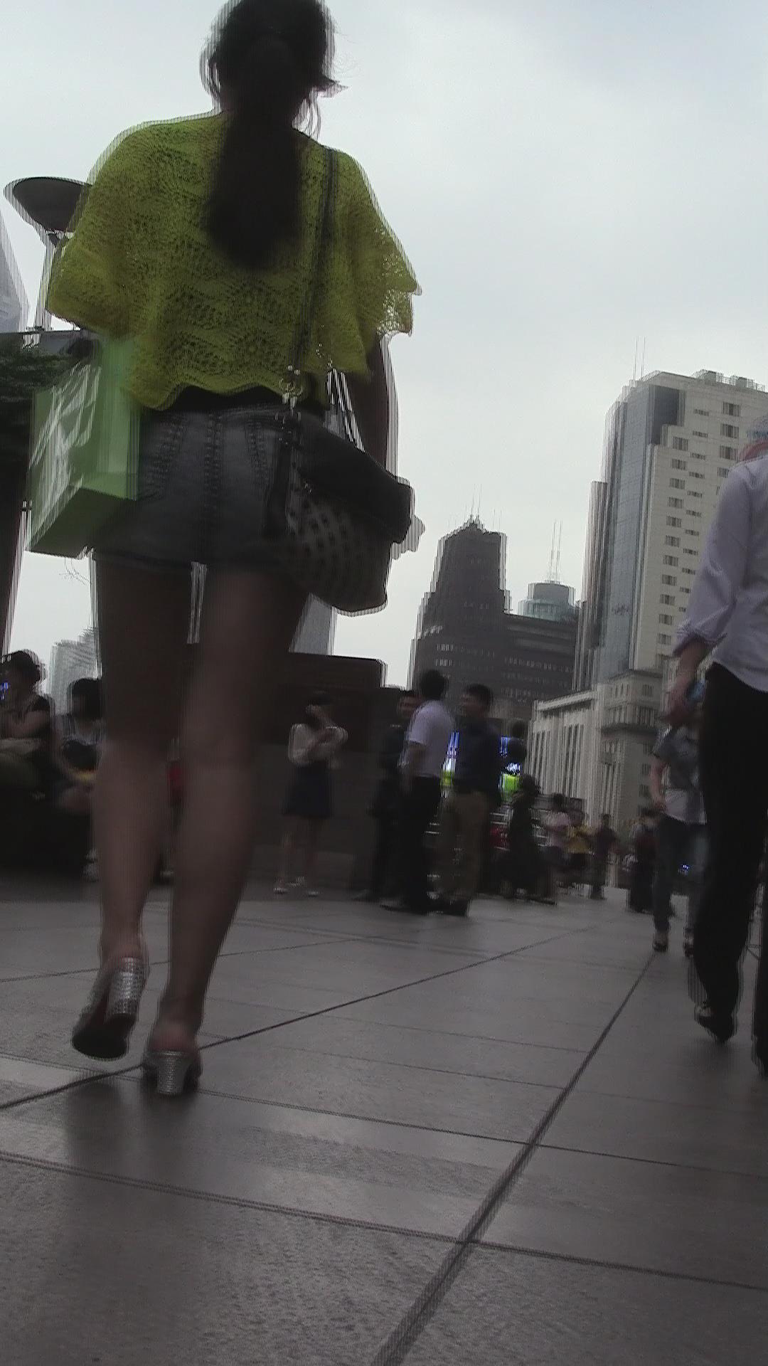 街拍性感牛仔热裤马尾辫美腿少妇 编号4324