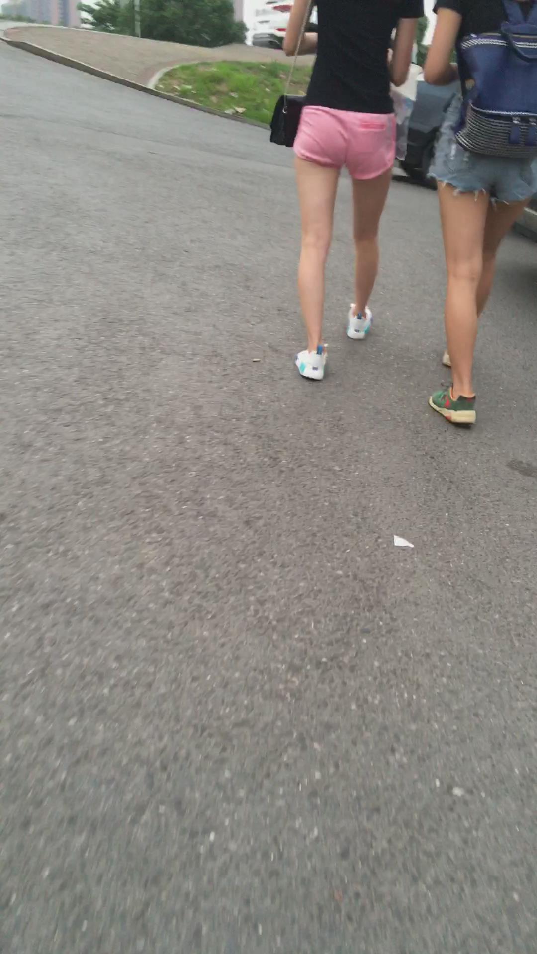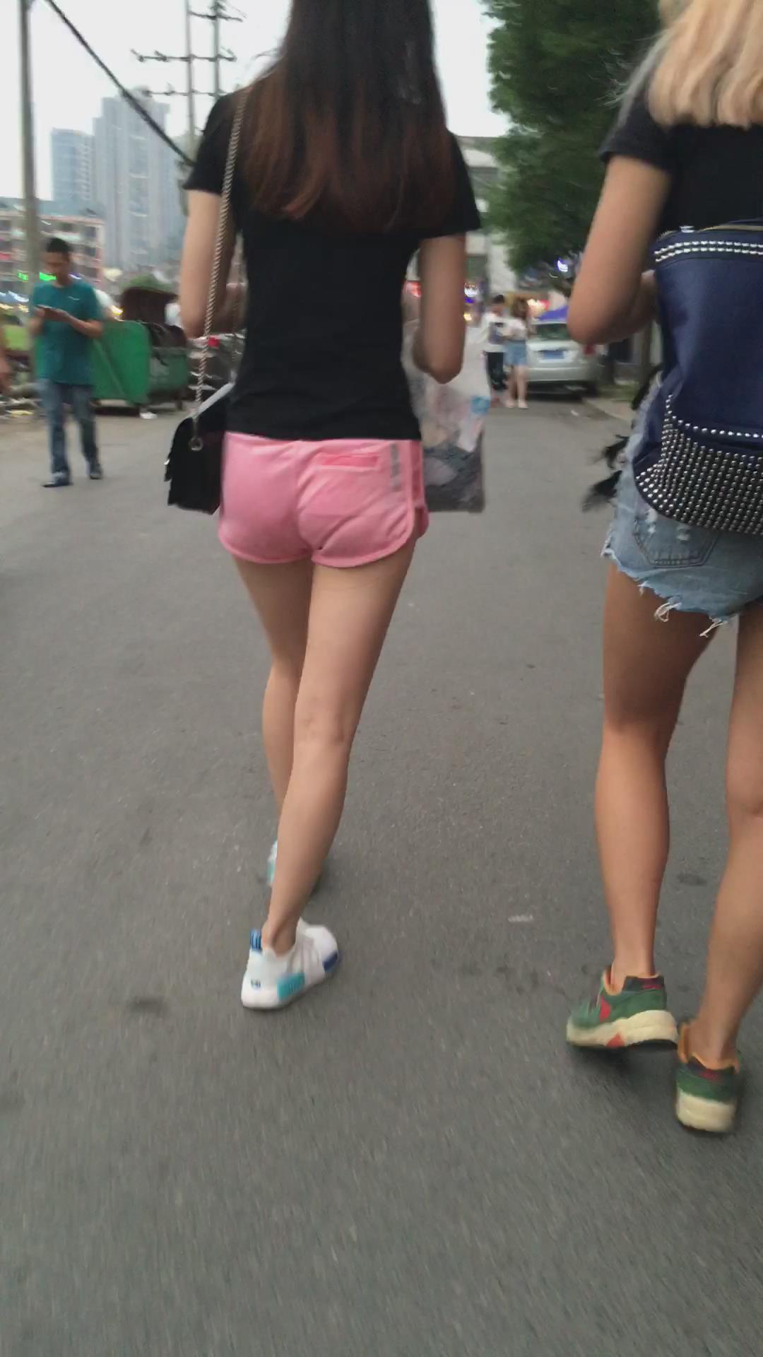 粉色热裤女孩跟闺蜜逛街 编号4364