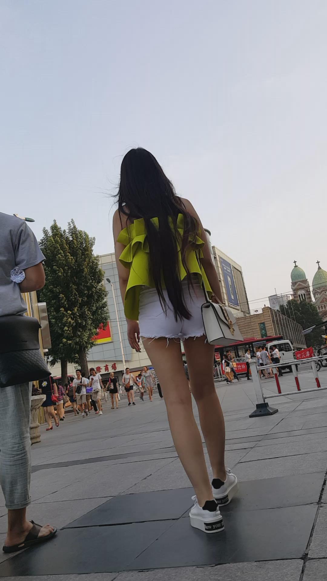 街拍白热裤裹胸美衣长腿MM 编号4373