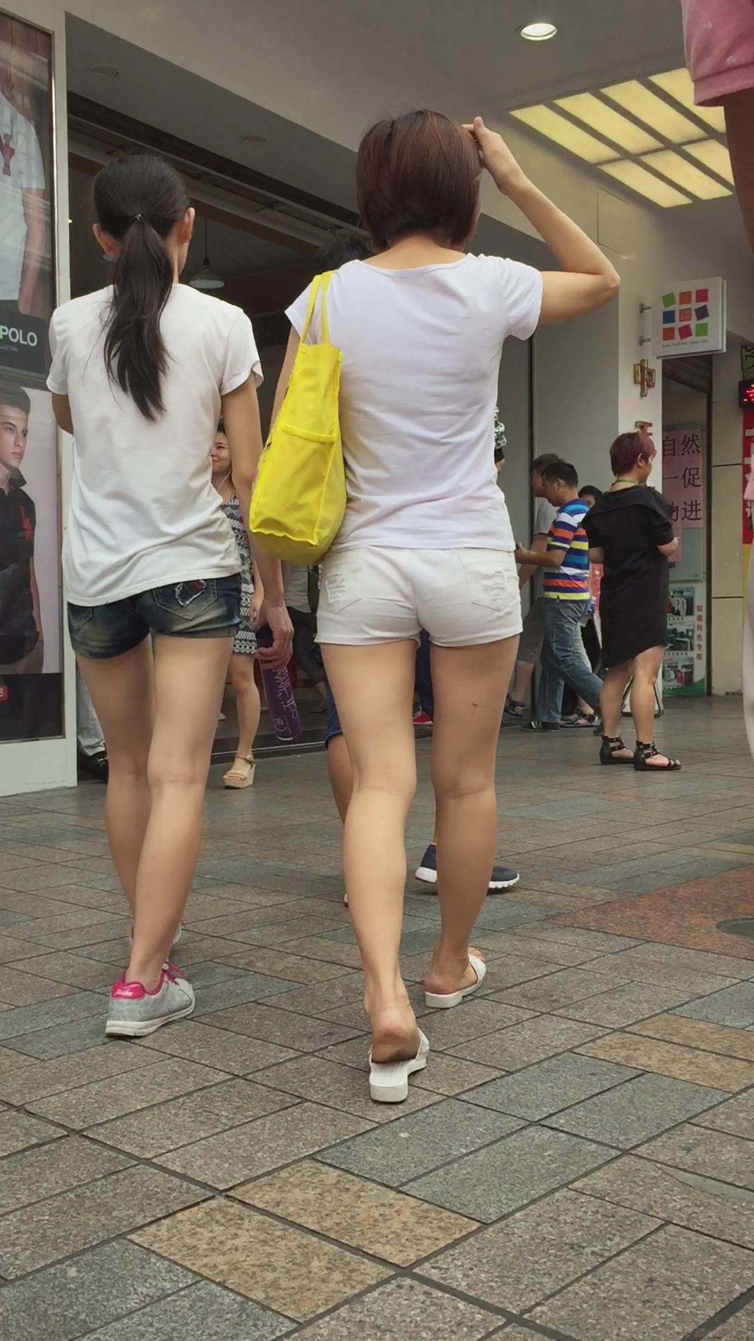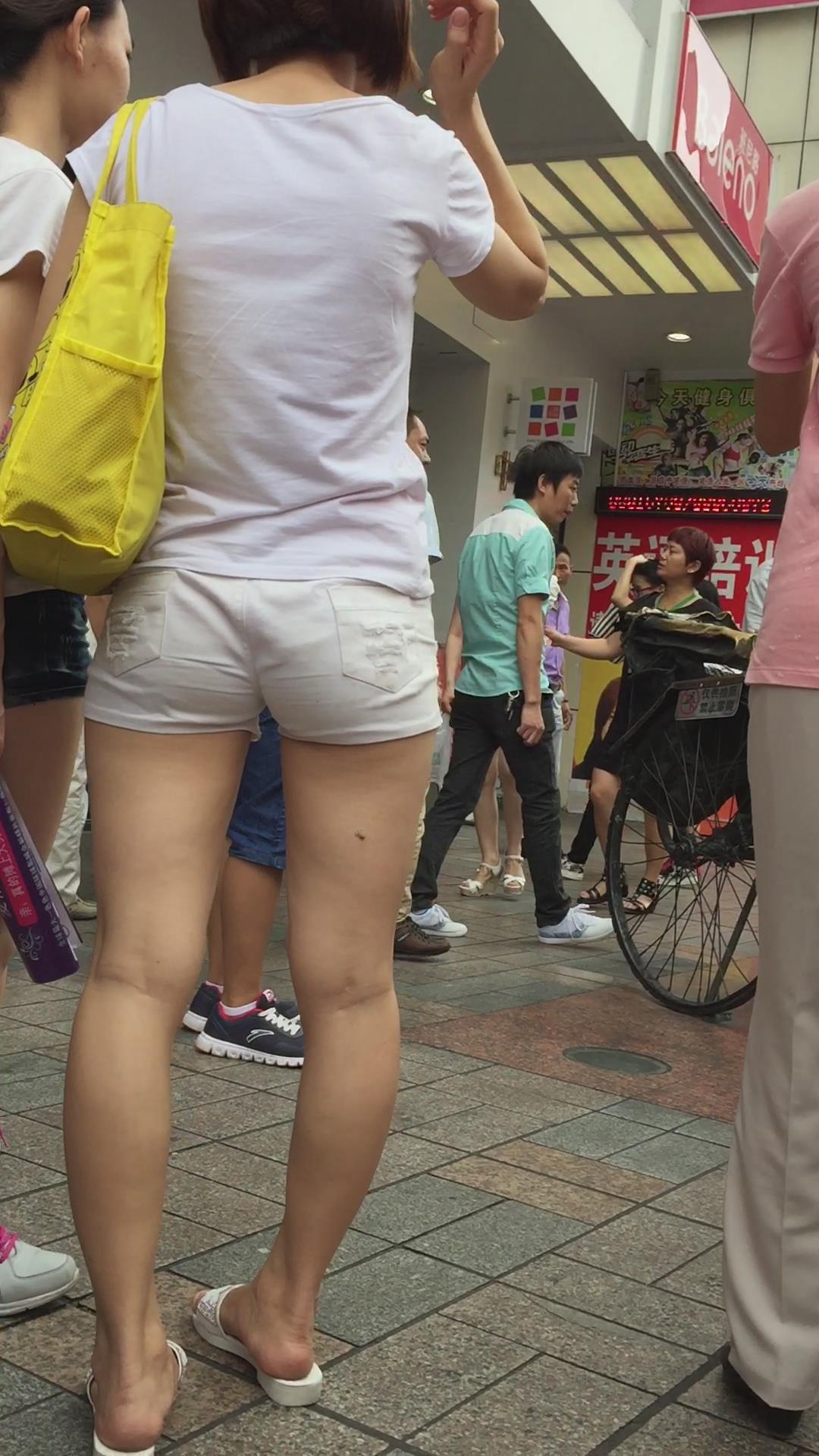 街拍美腿宽臀热裤短发美眉 编号4385