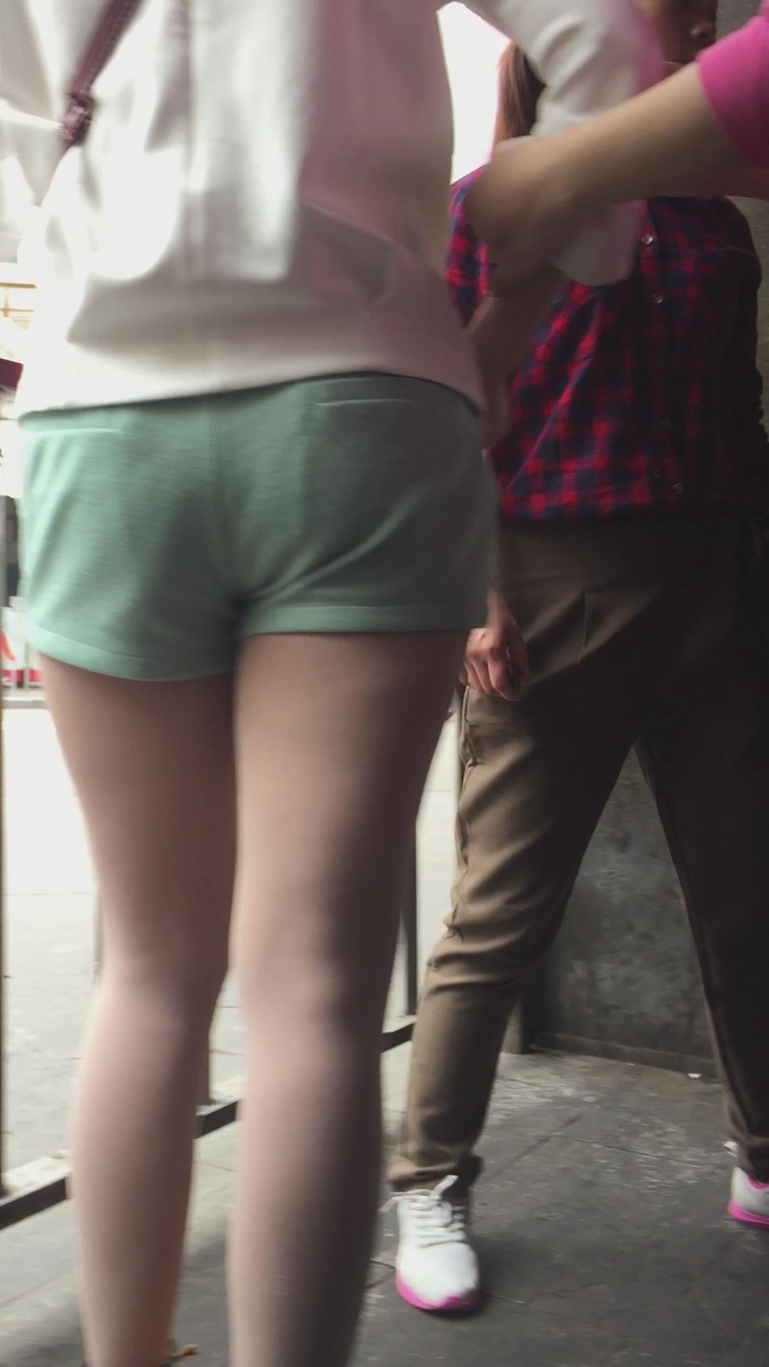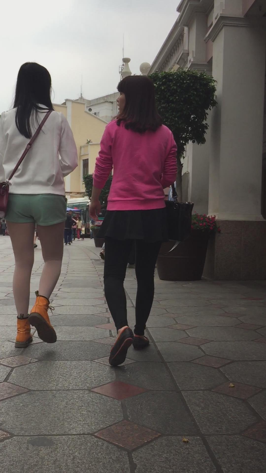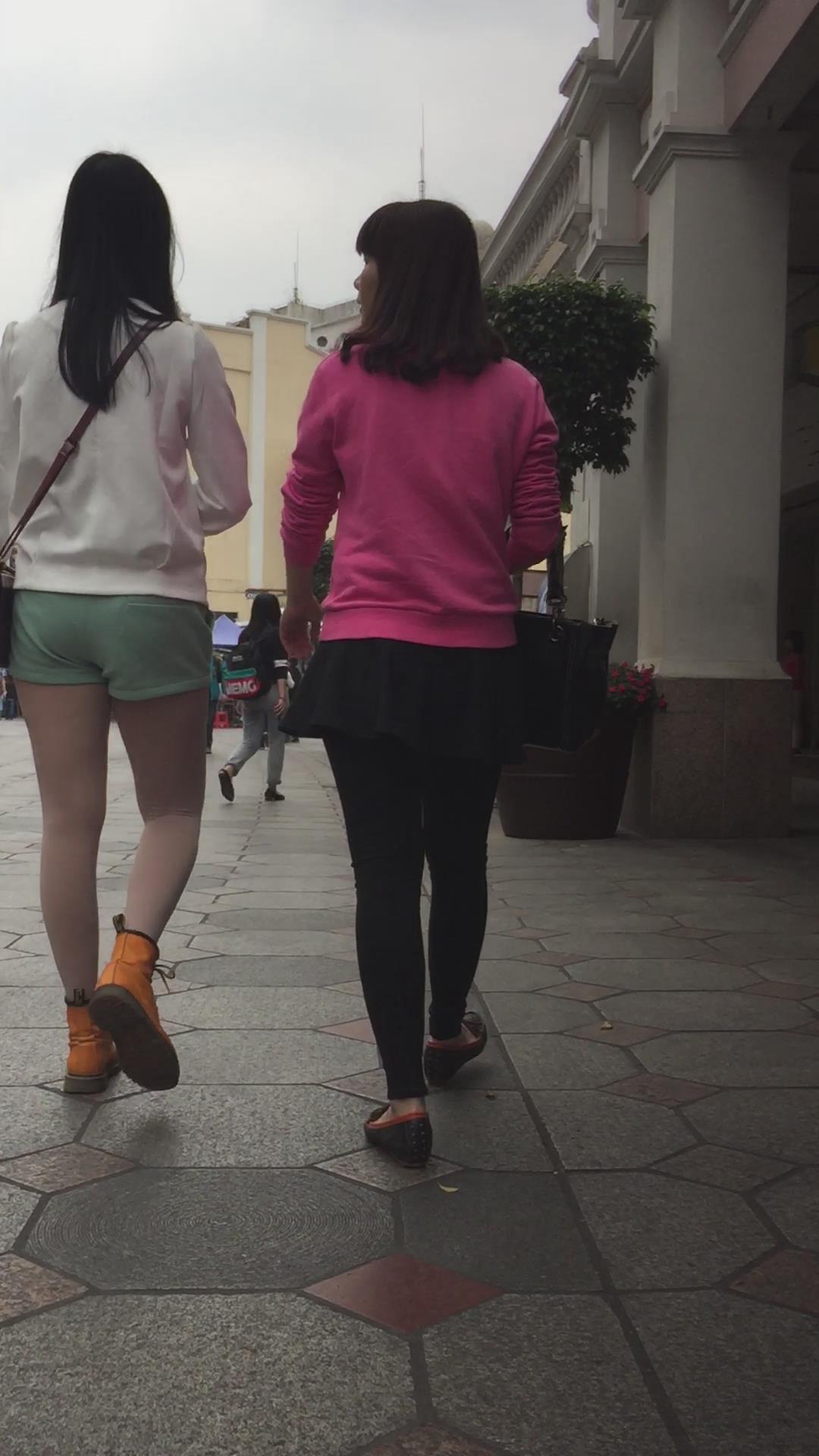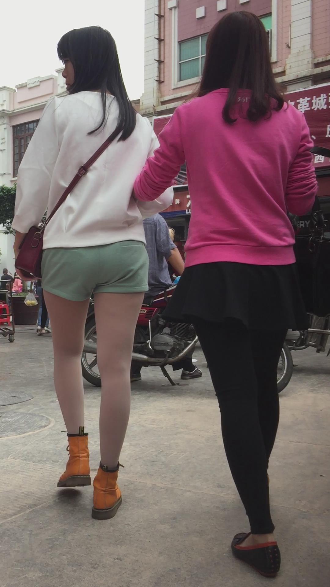 跟拍丝袜打底紧身热裤美腿姐妹花,夹得很紧 编号4575