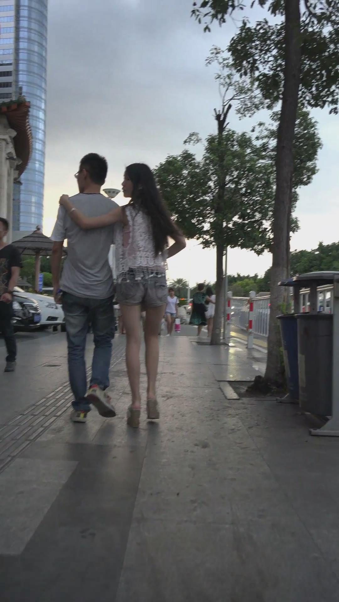 街拍极品长腿热裤美女,步子都迈得比别人大 编号4447