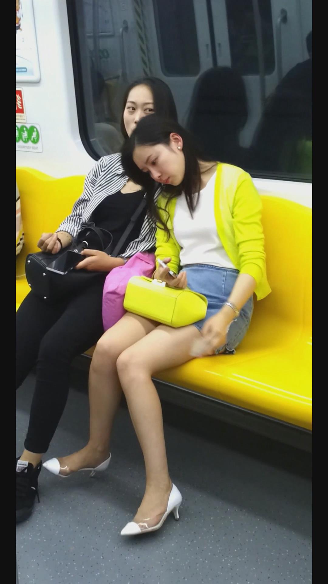 地铁拍摄两位高颜值美腿妹子 编号4454