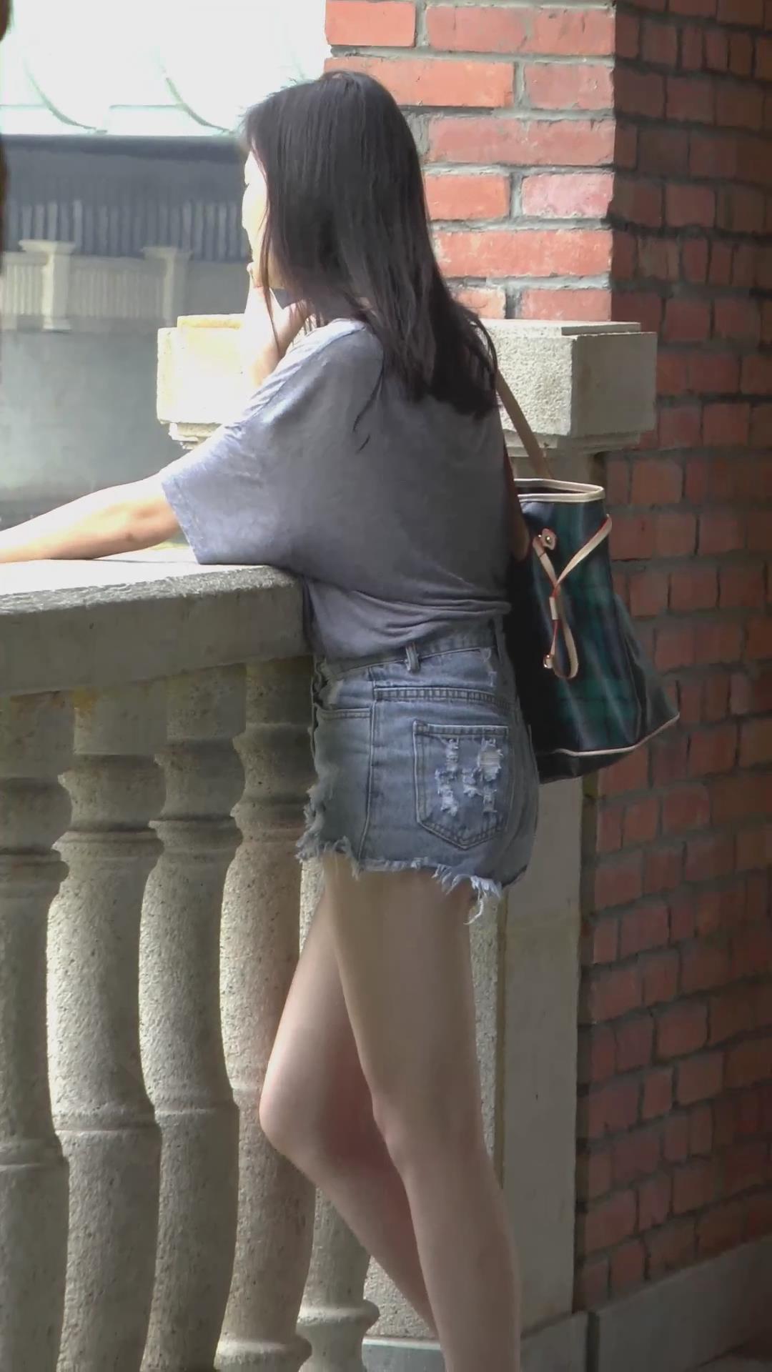街拍在打电话的牛仔热裤美女 编号4468