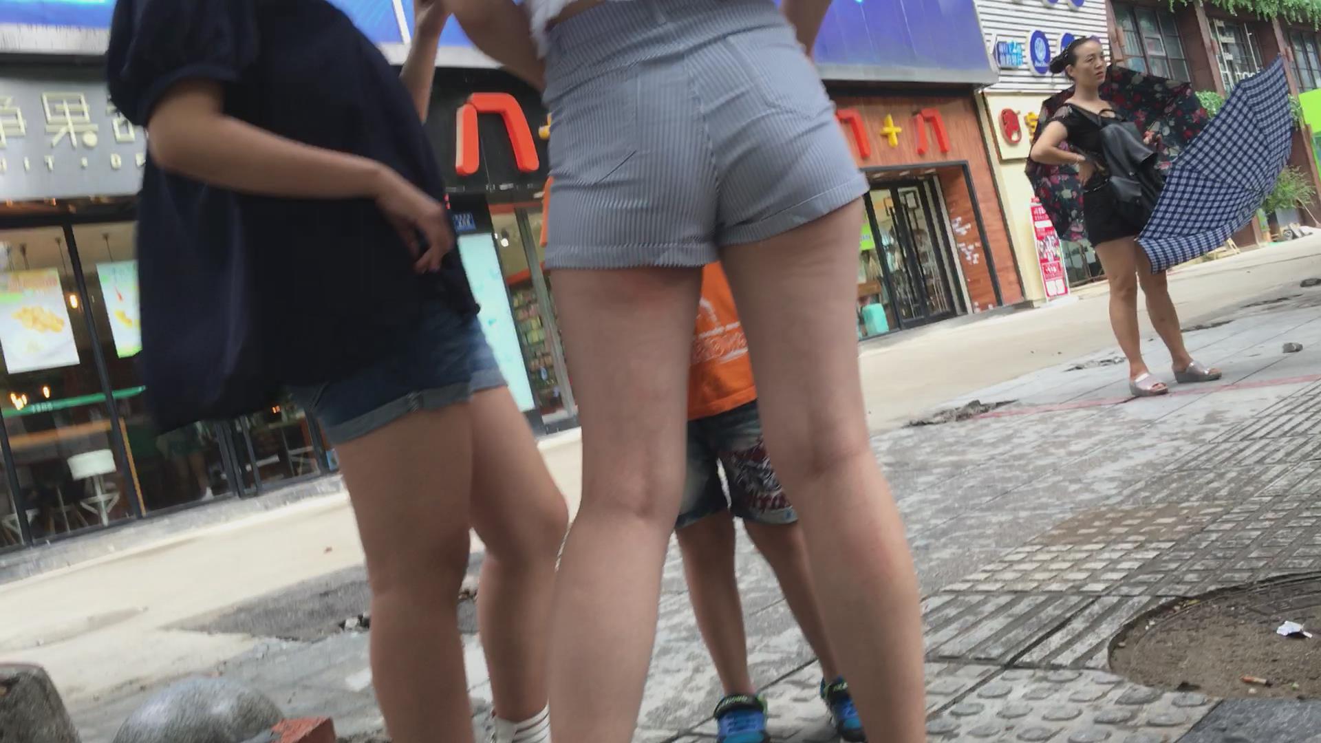 街拍白T恤高腰热裤美臀年轻美少妇。 编号4586