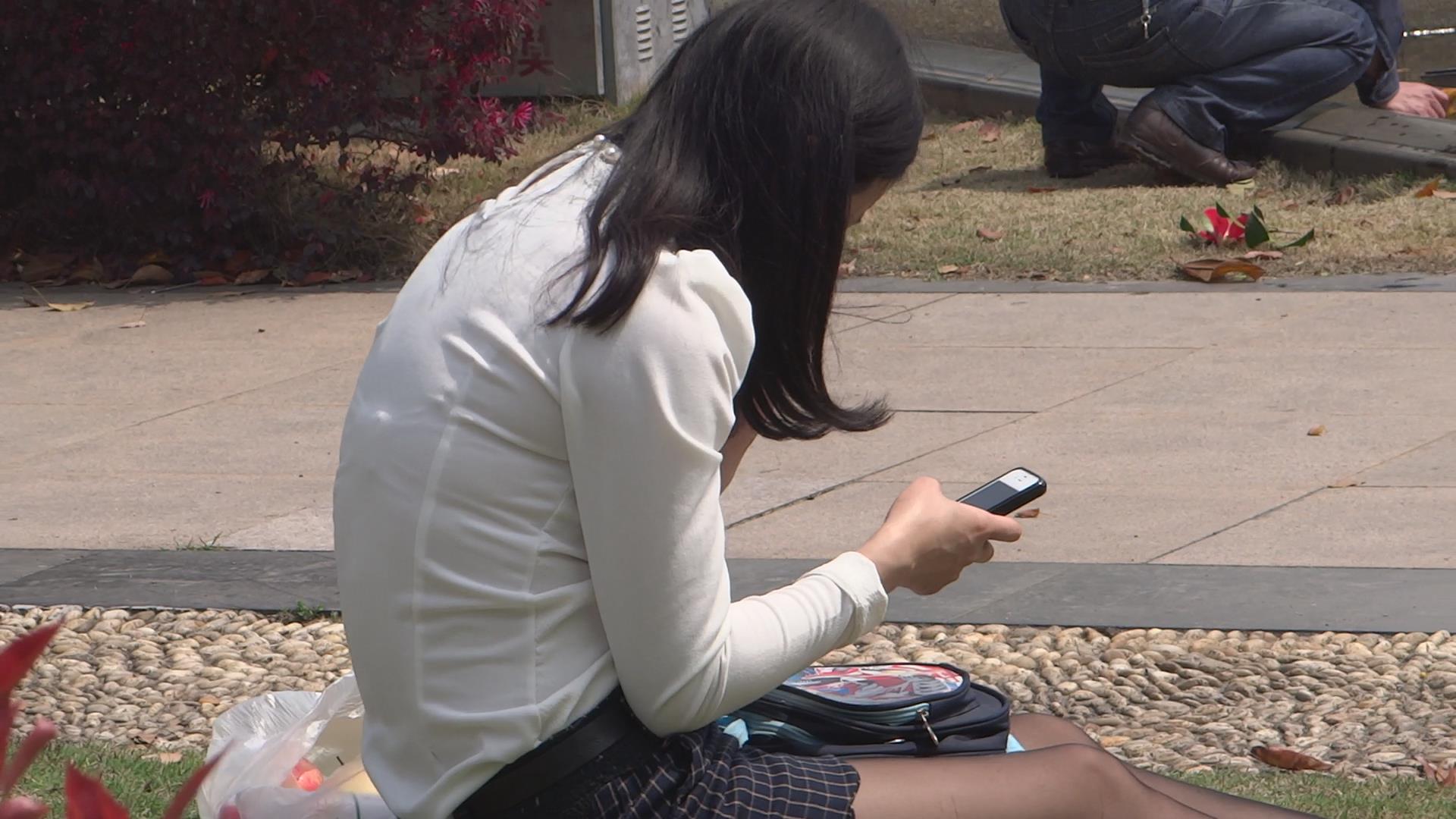 太阳底下晒美腿的黑丝美女 编号1746