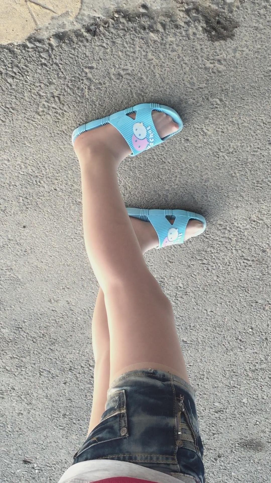 拖鞋丝袜美足牛仔热裤小美女 编号1773