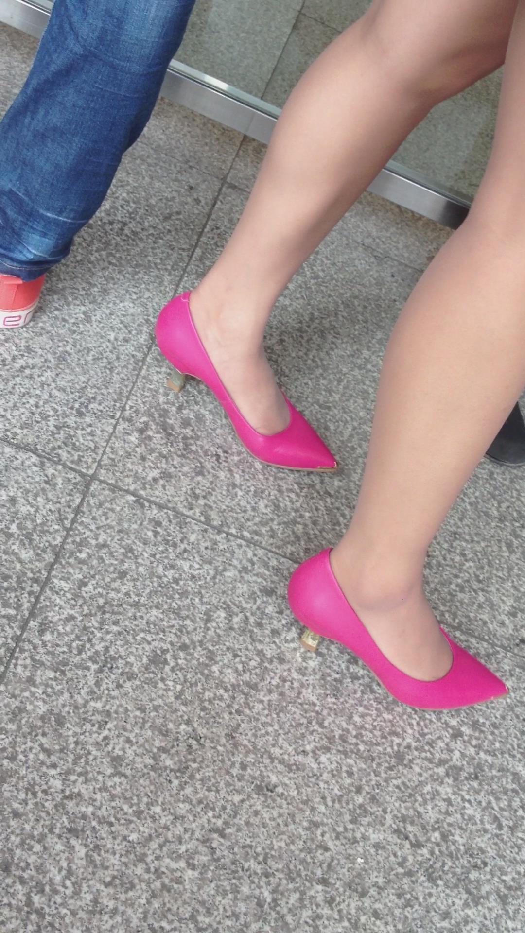 一双粉色小尖嘴高跟鞋肉丝美腿玉足太诱人。 编号1774