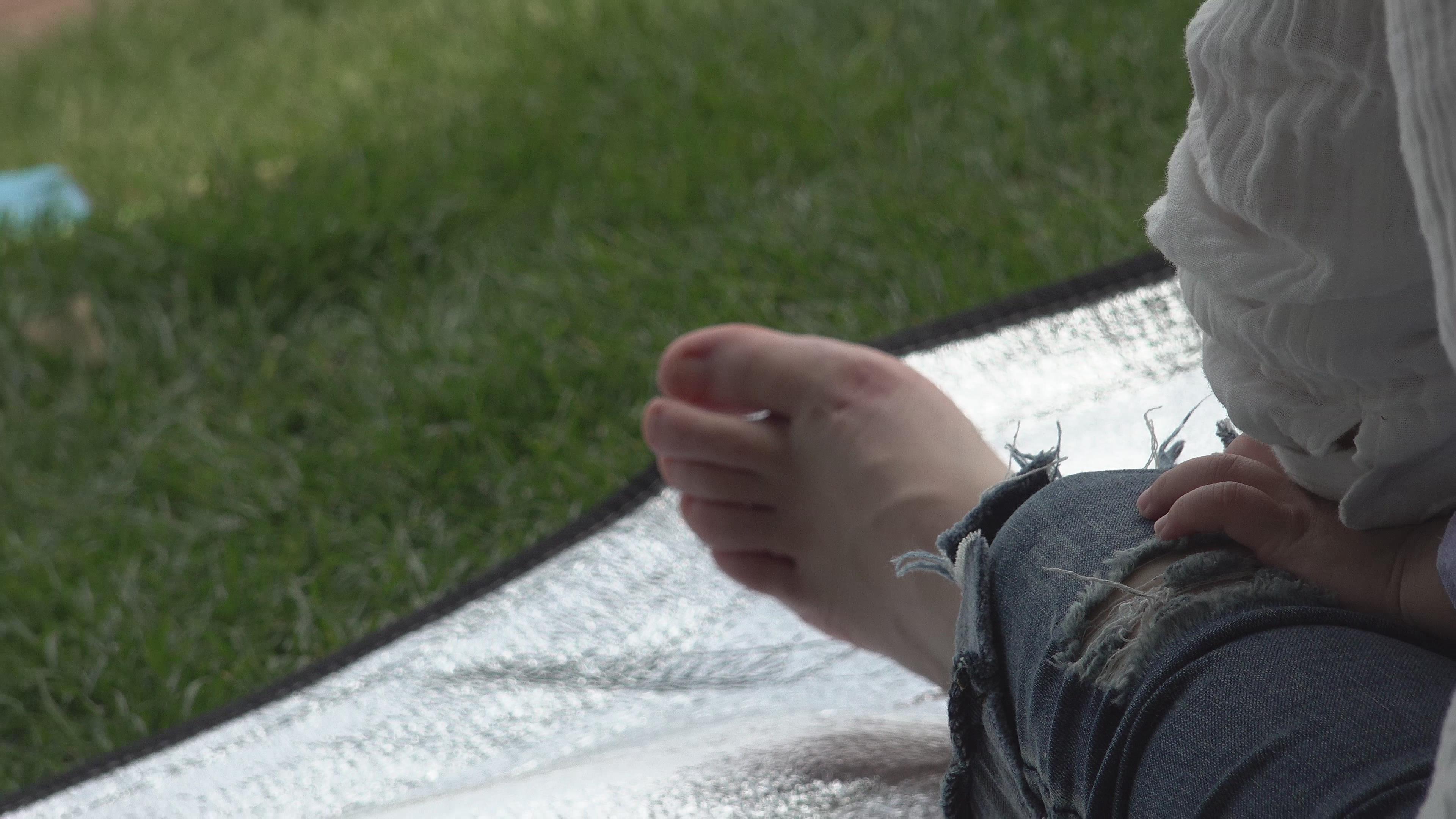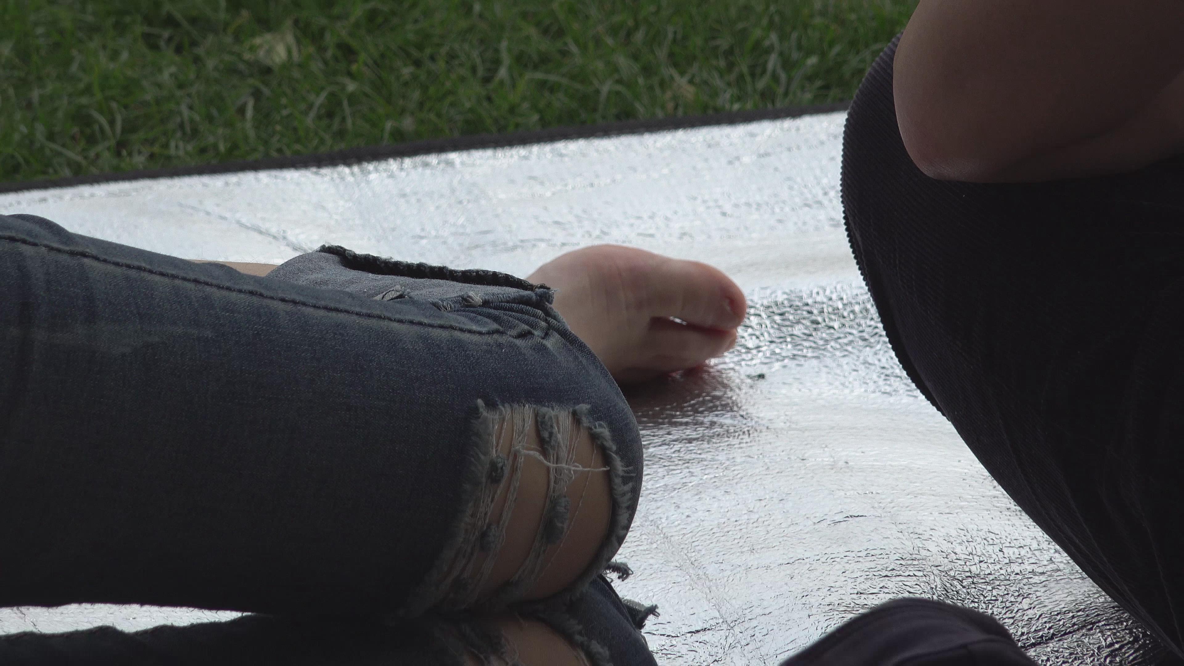 4K 公园草地上休闲的牛仔裤美足shaofu 编号6356