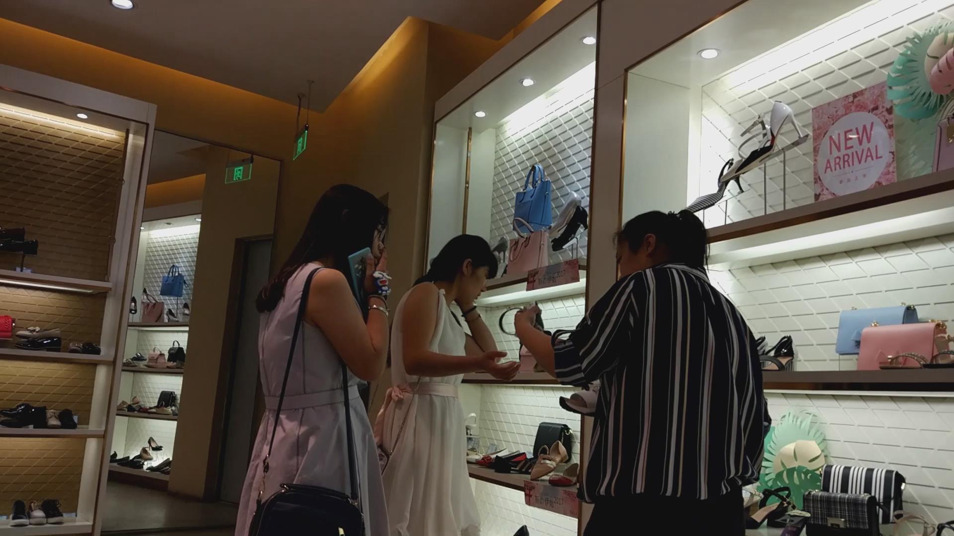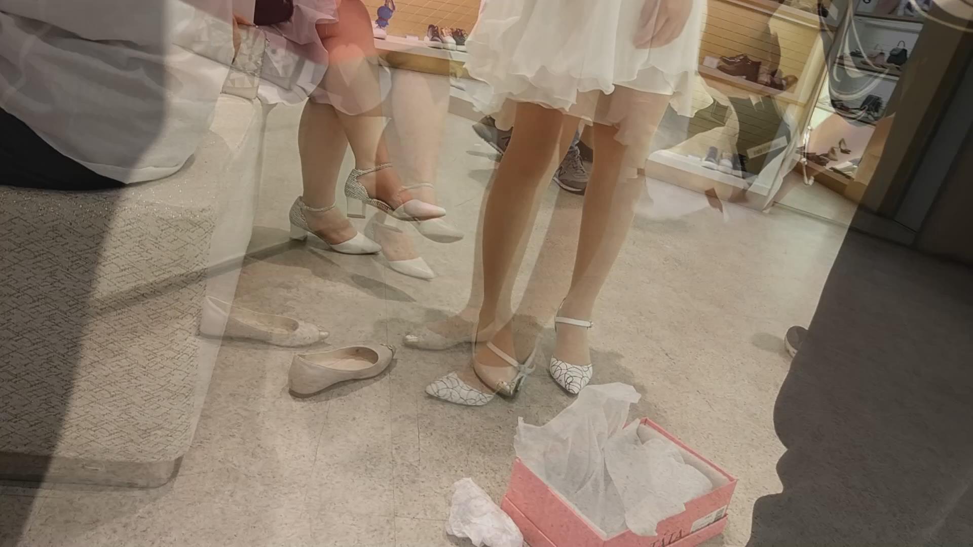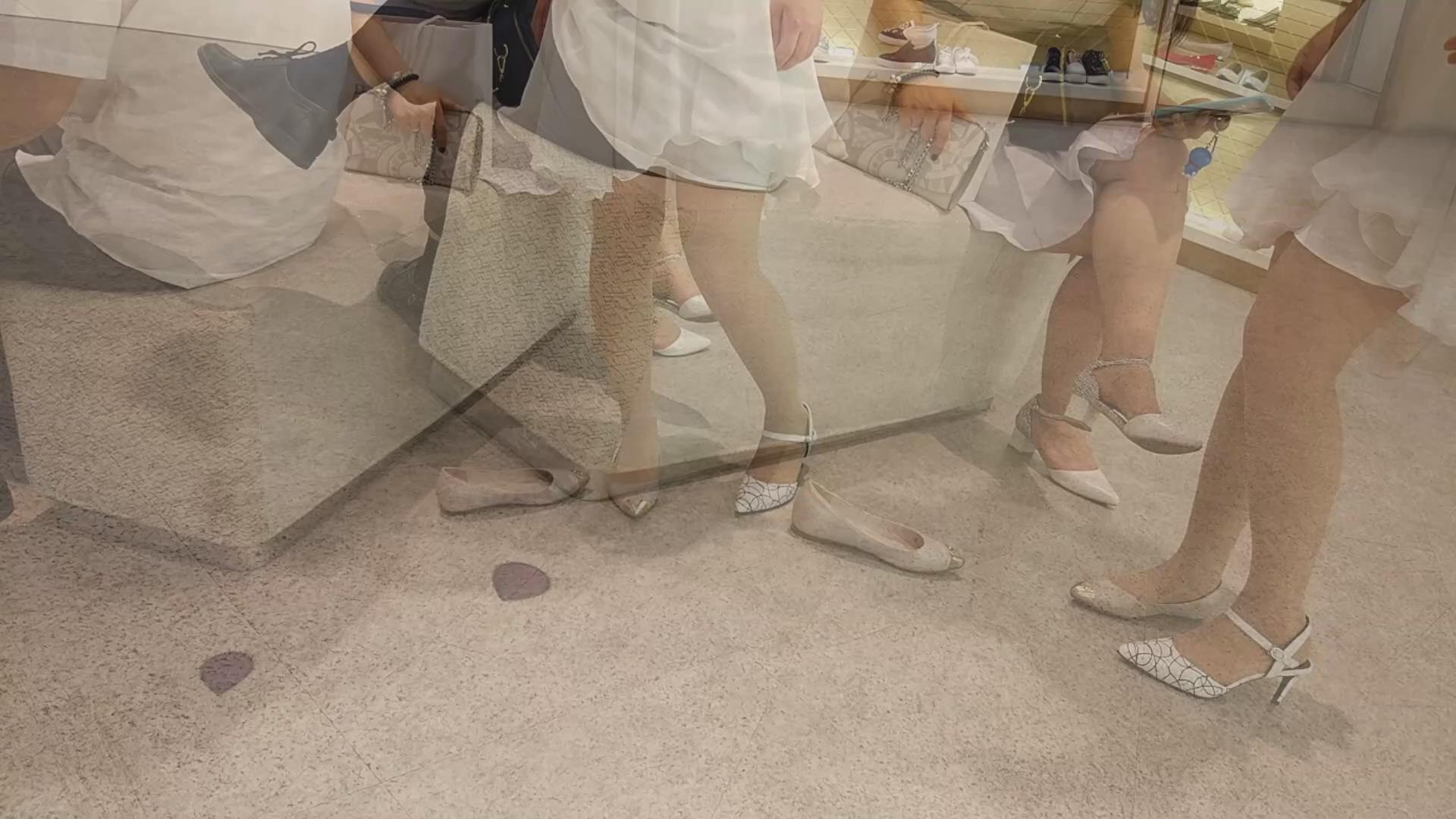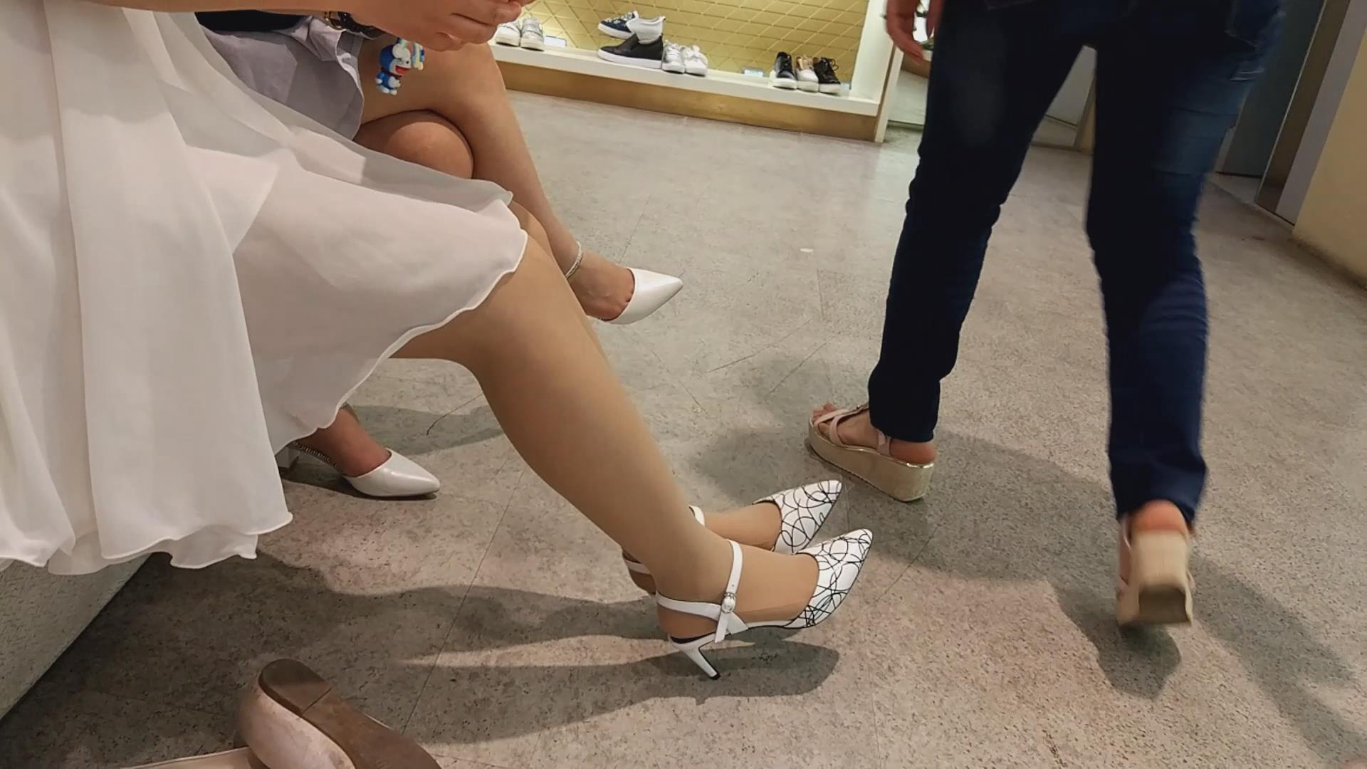 鞋店试鞋的白色连衣裙丝袜美足少妇美女 编号6430