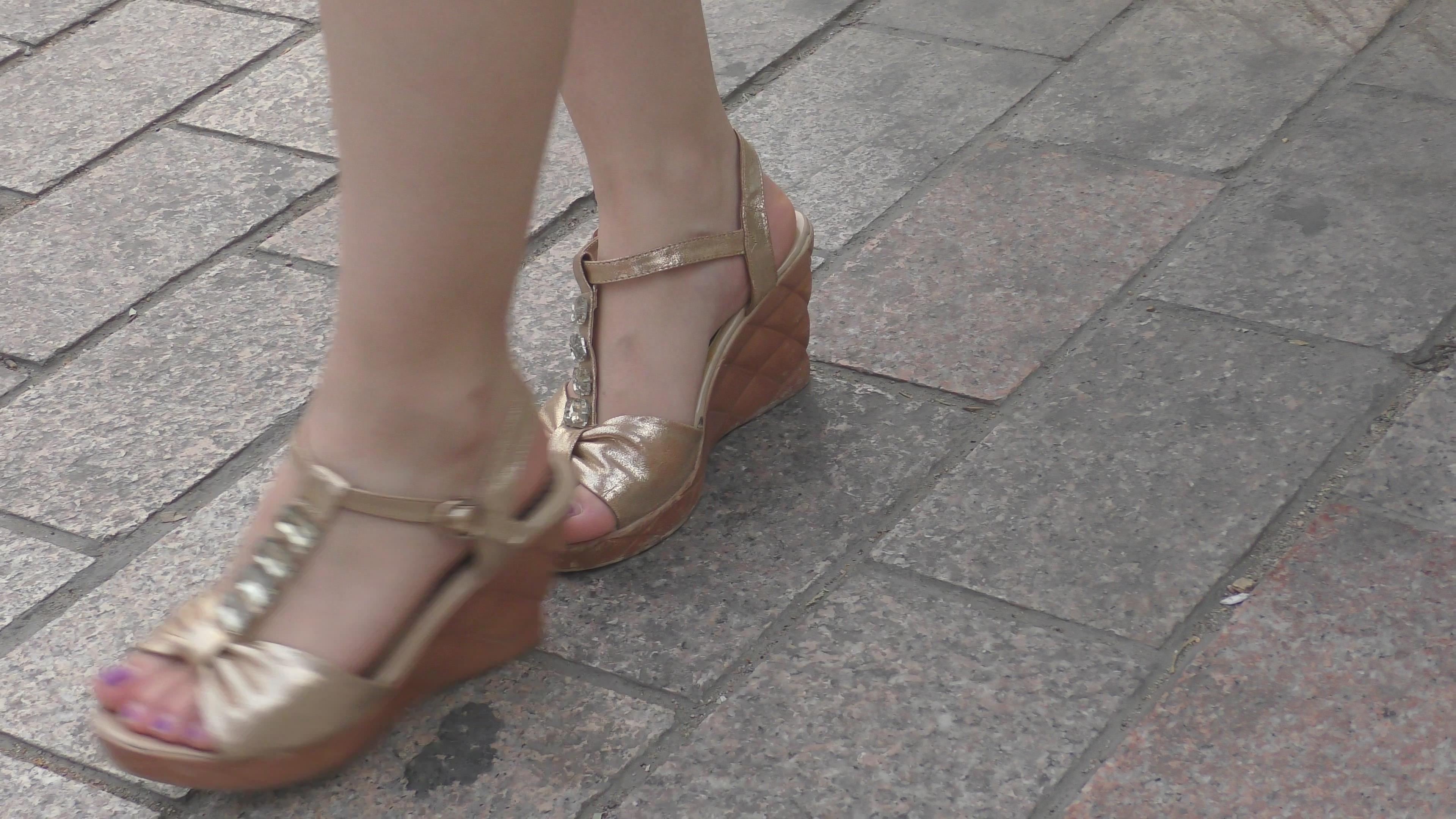 4k-公交站拍摄金色坡高跟美脚美女 编号6497