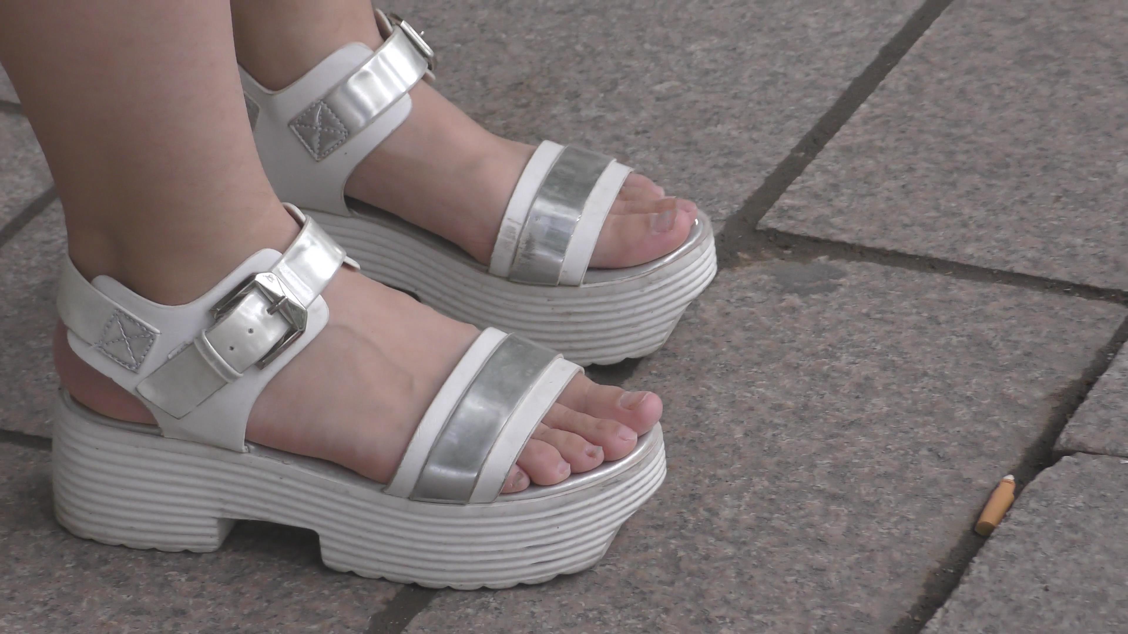4k-碎花公主裙眼镜妹公交站等公车 编号6531