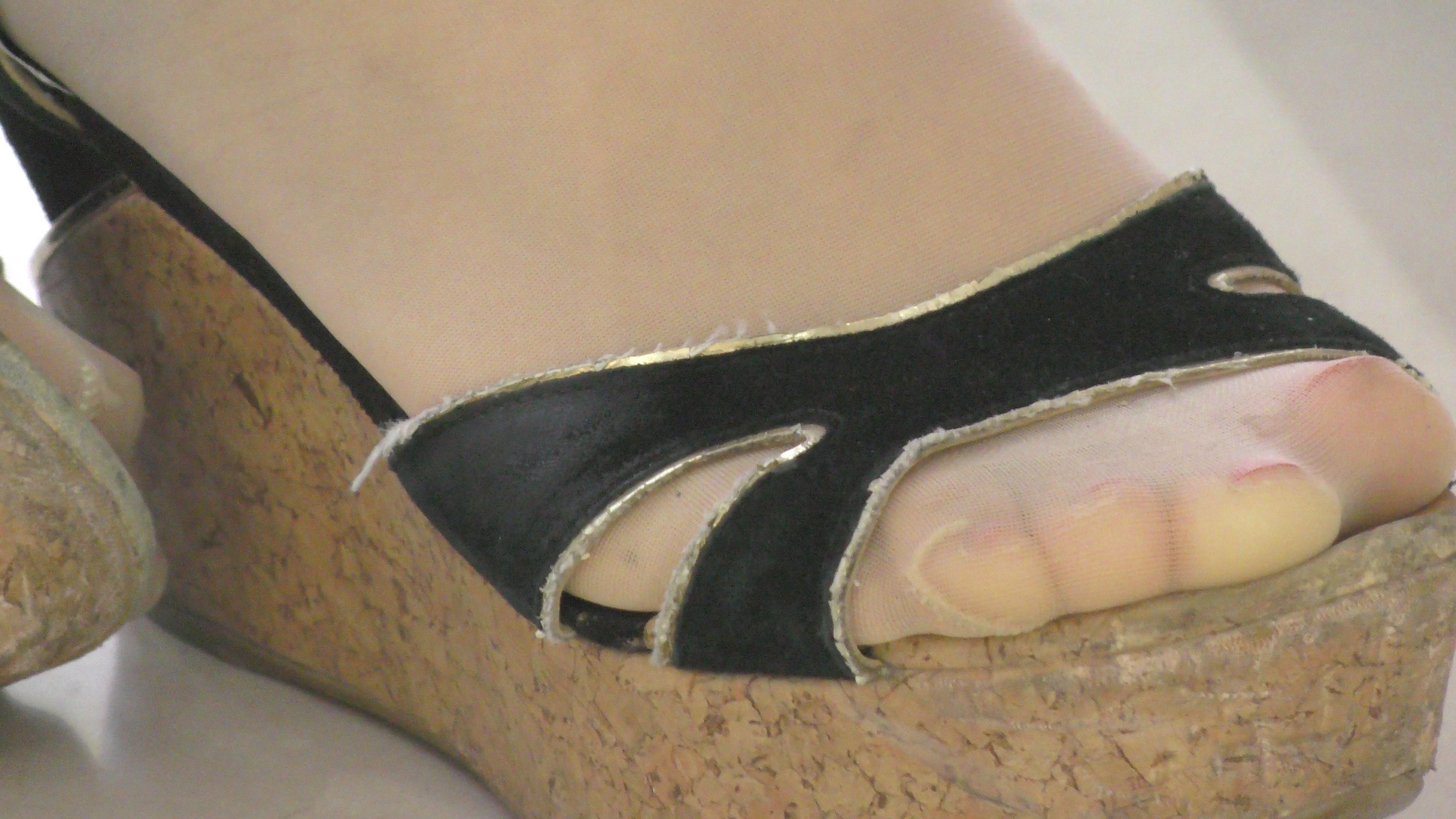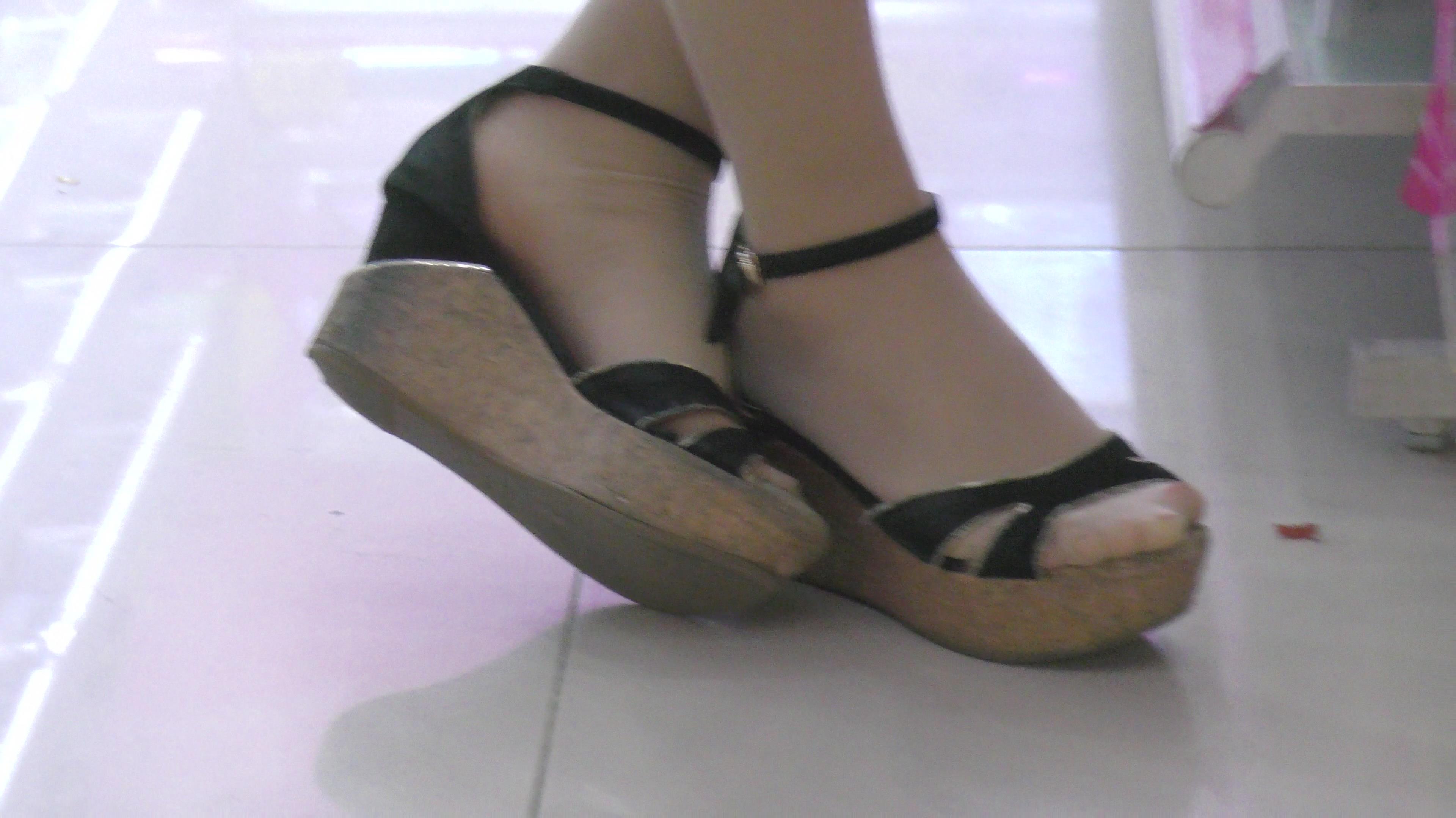 4k-化妆品促销员的美丽丝足,坡高跟凉鞋已经伤痕累累啦 编号6542
