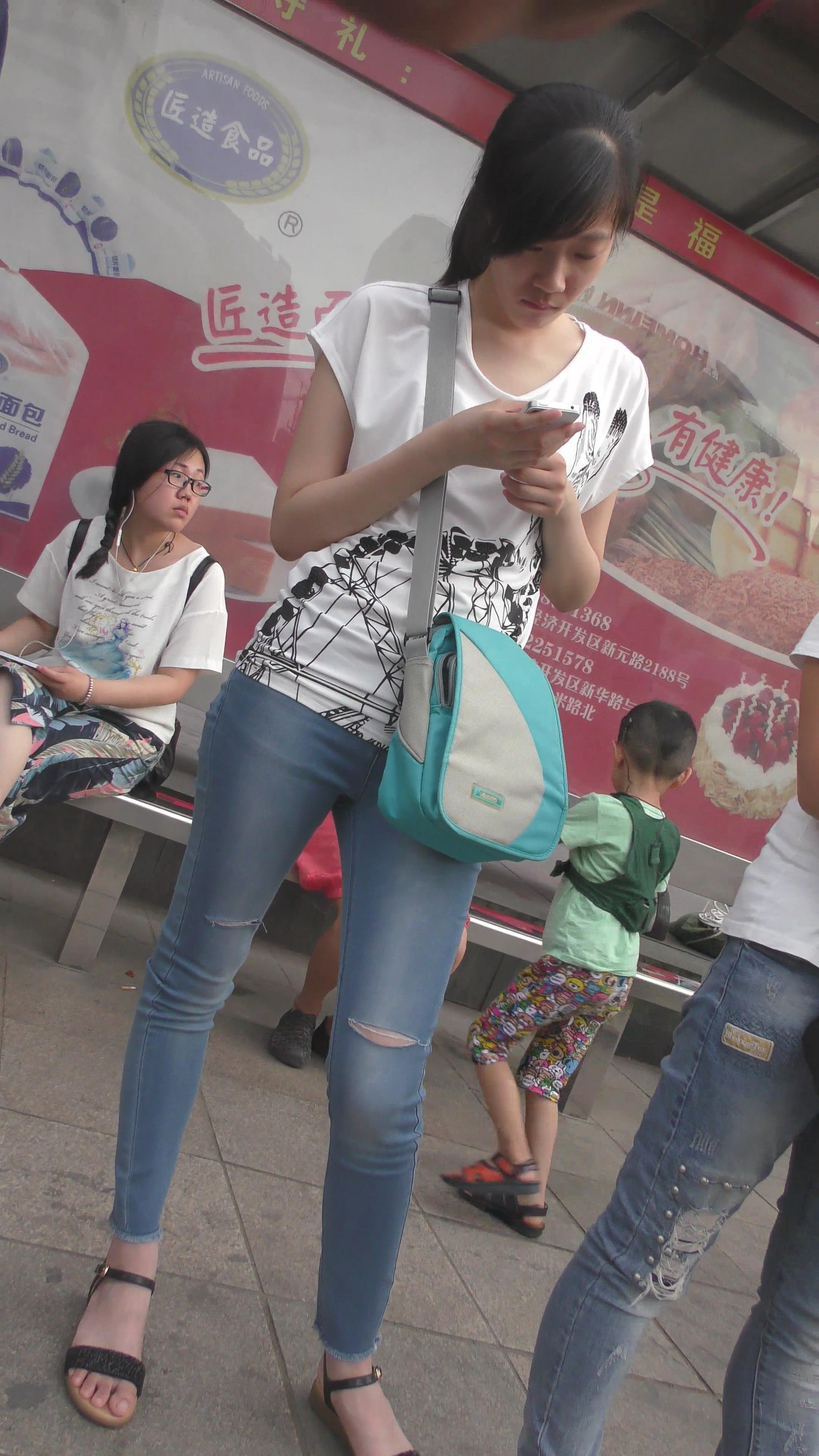 4k-干净素脚丫美足少女等公交,低头玩手机车来啦你都不知道 编号6559