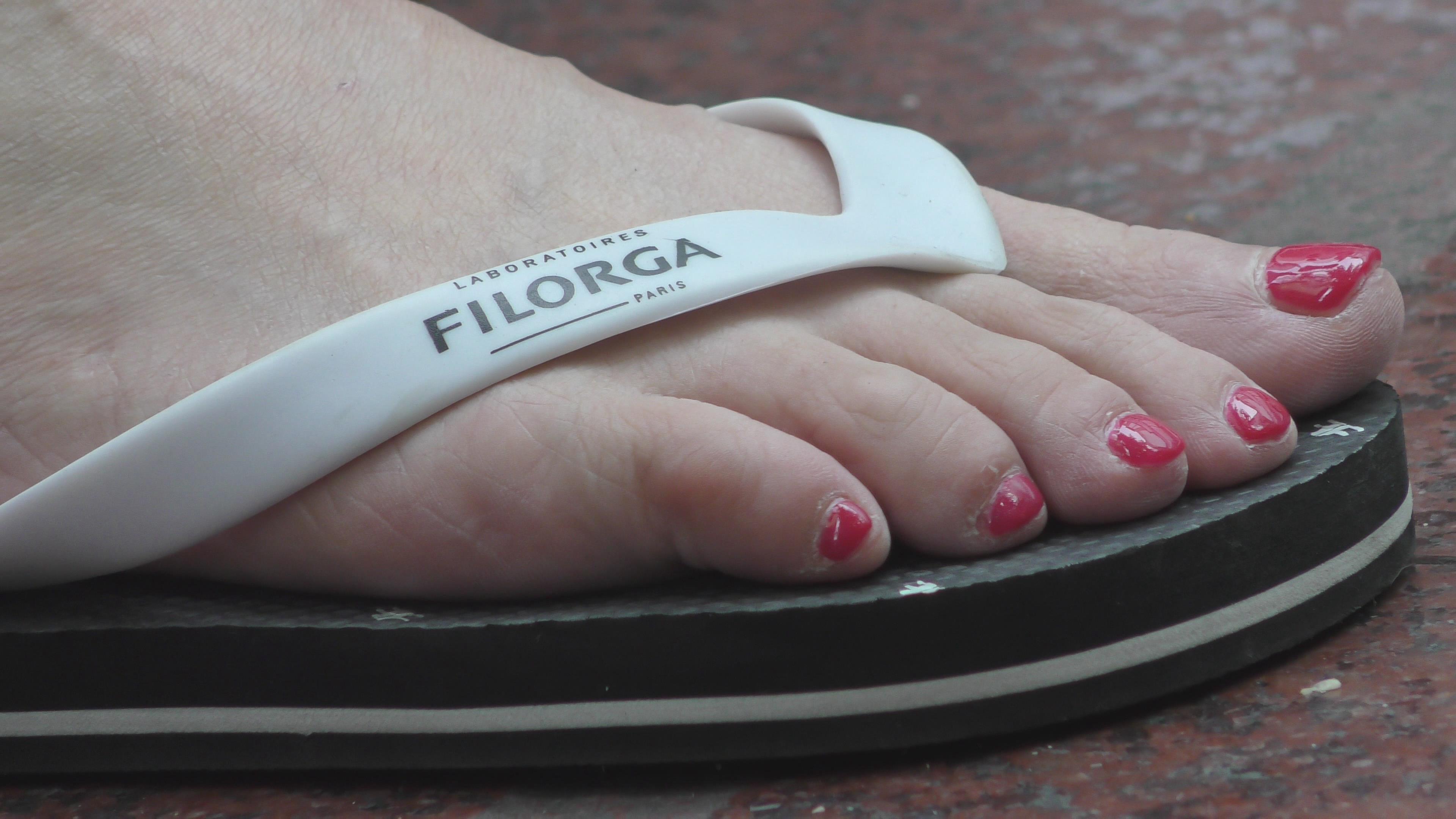 4k-广场边跟小男友休息的人字拖玉足少女 编号6579