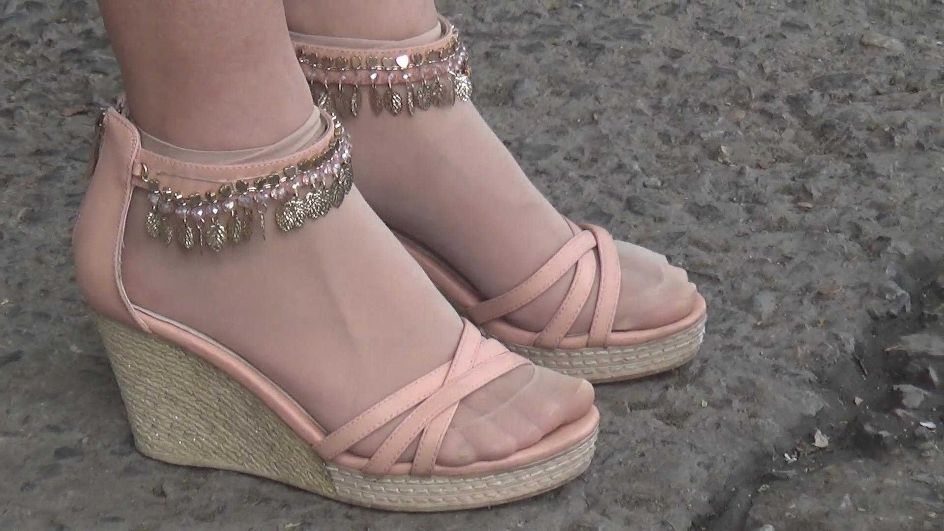 超漂亮的碎花裙女神,一双坡高跟凉鞋肉丝美足更是抢眼 编号6589